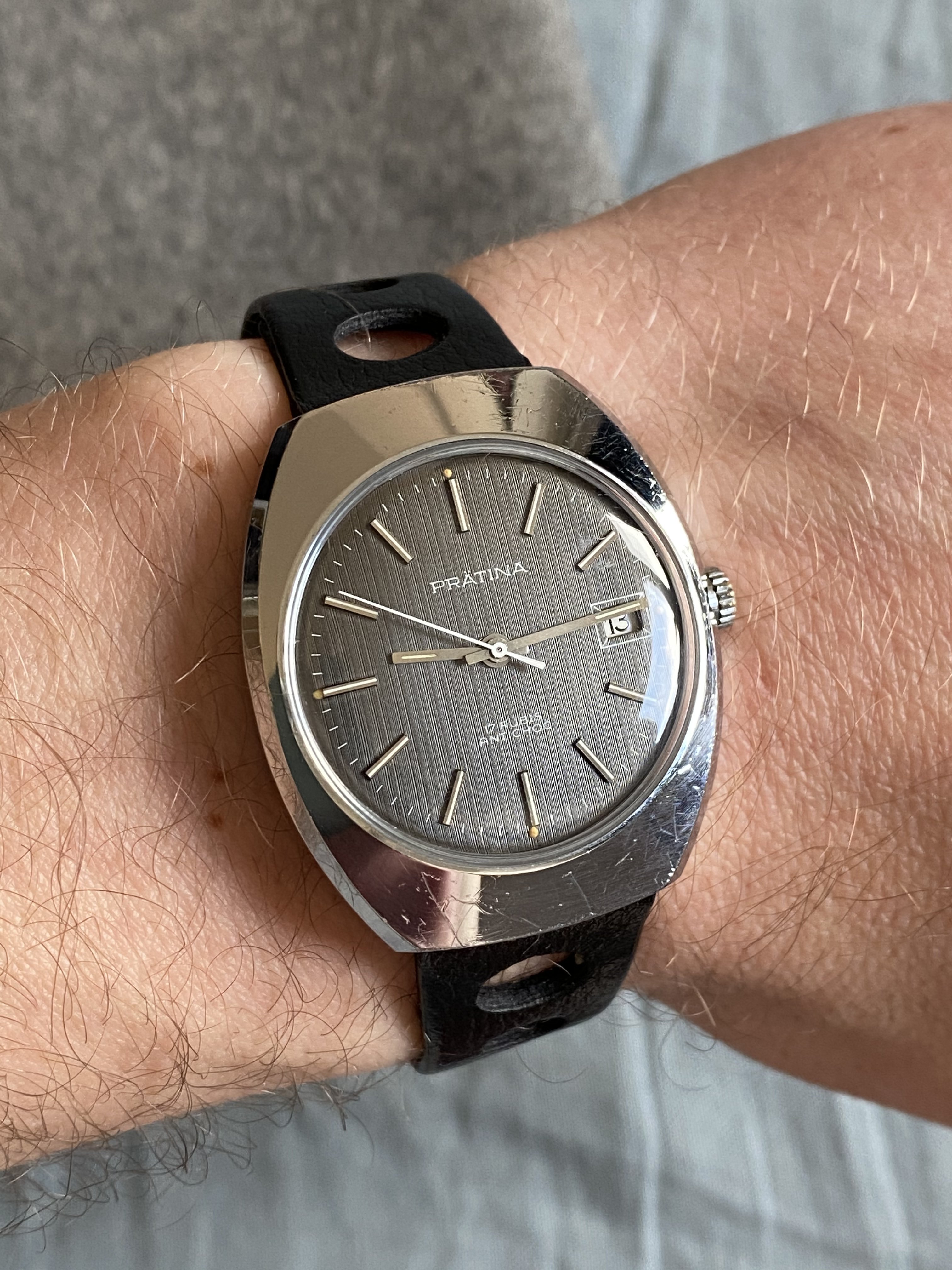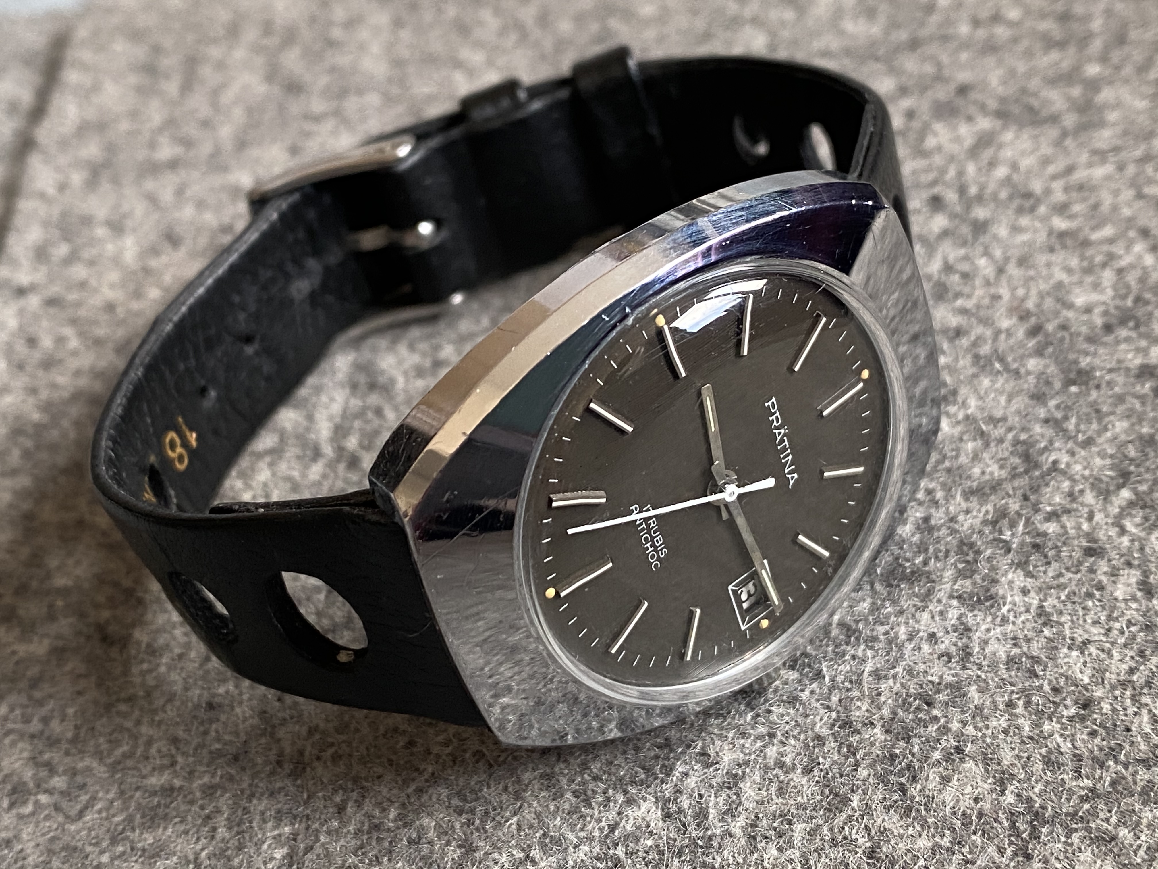 Mid-20ths century, it was part of the Dugena watch company, which, as far as I know, ended up being Alpina. The watches were produced in Germany and Prätina were the budget line, so to say. I don’t know the exact production era of this watch, but judging from the design I’d assume early 70s.