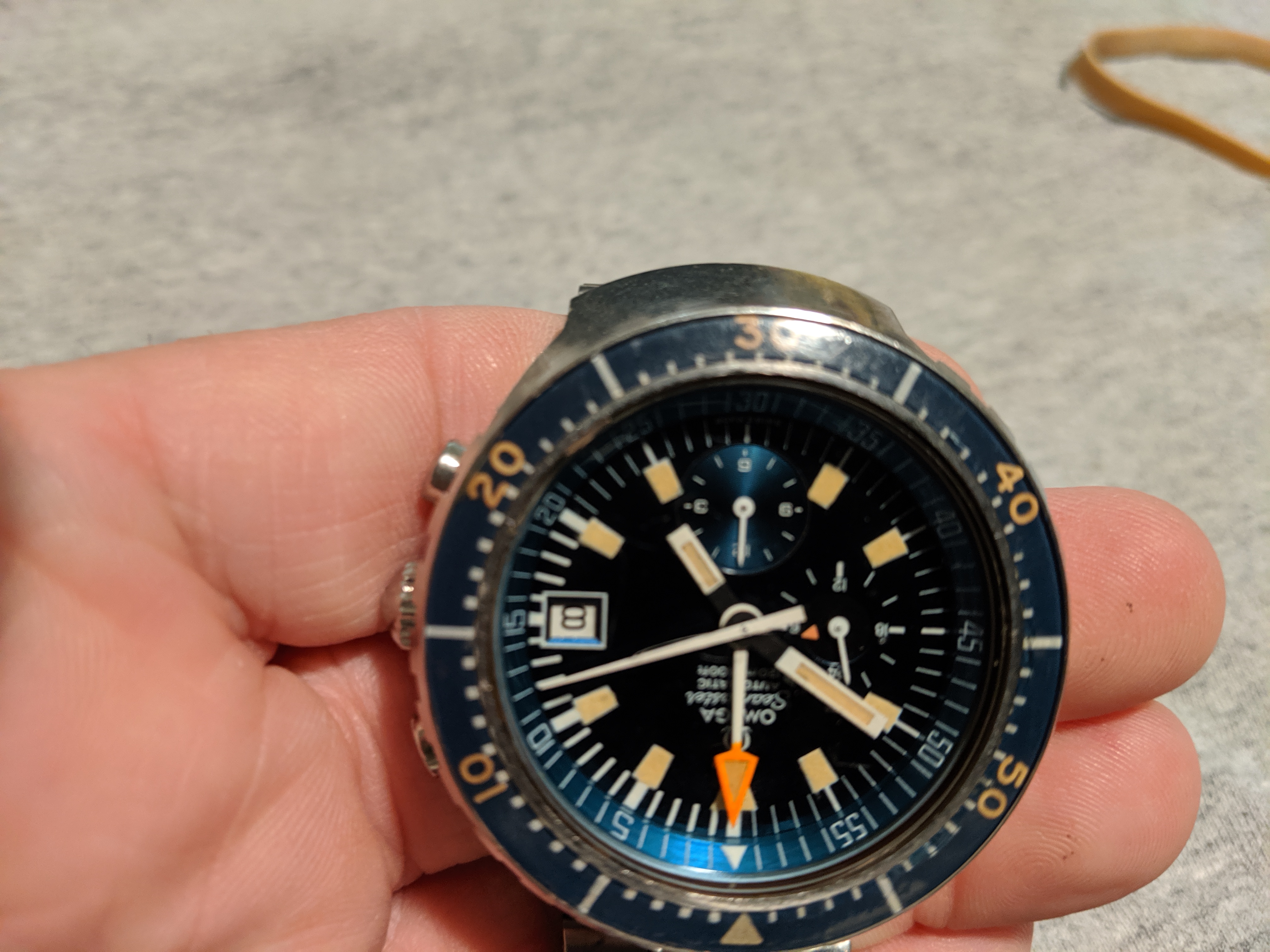 2) Send it to Omega. They will restore the watches to as near "new" condition as feasible and may also be able to refinish the case to the original look. This will probably cost $$$. Be aware that Omega will replace any parts they consider do not meet their standards with service replacements (but I believe will return to you the items replaced so if you decide to reverse these changes in future you can).