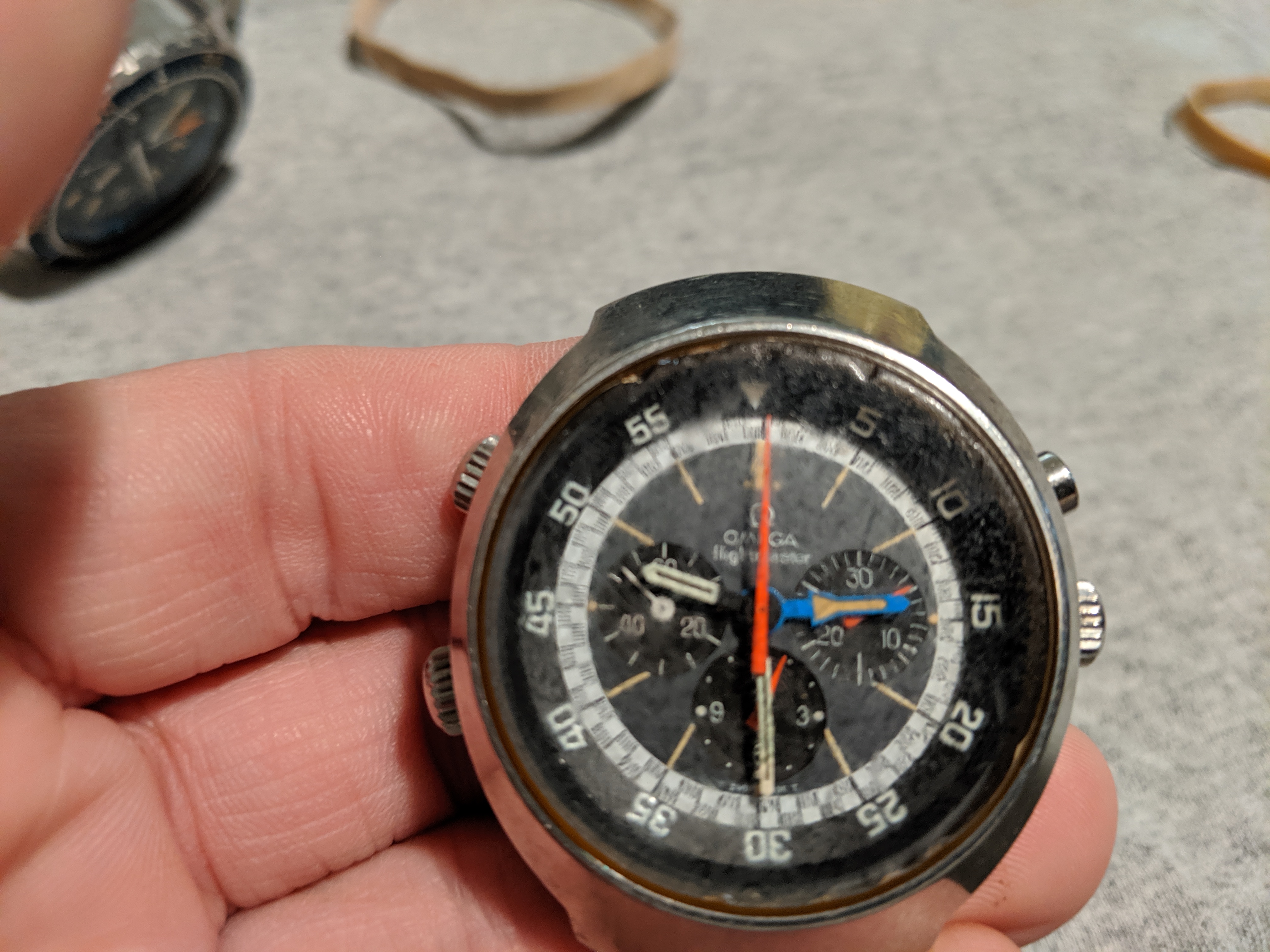 I got both of these watches in the 70s from a friend of mine. The condition you see is how I received from him. The Flight Master does not have a bracelet but both watches still work except the Flight Master return button on the bottom right is missing the cap as shown in the photo. I would like to send these back to Omega. With all the scratches in the case around each watch would it be advisable to let Omega try to polish and finish these out when they have the watches? Also where would I get a replacement bracelet for the flightmaster?