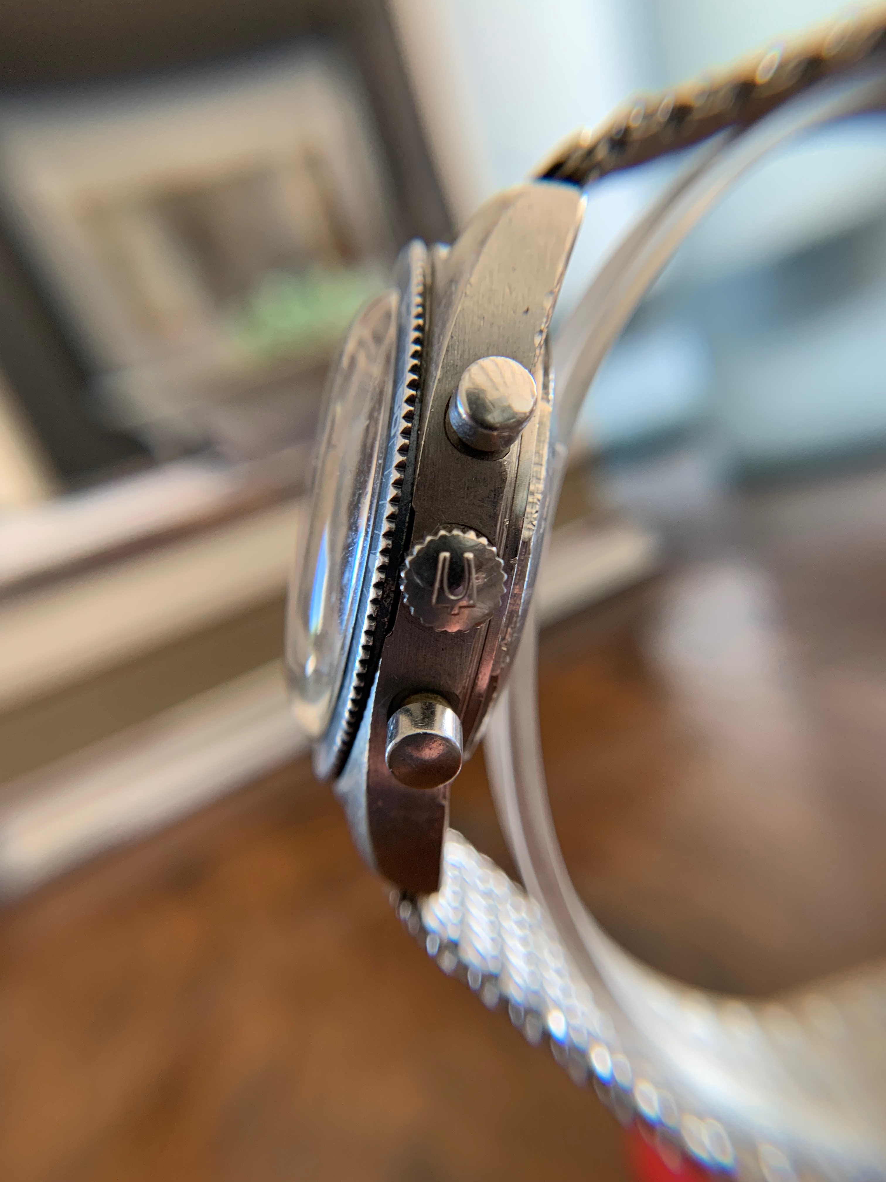 ·This vintage 'Devil Diver' chrono is in very good original condition, with the manual-wind Valjoux 7733 movement having a full service in late 2020 which included a new mainspring. The chrono functions (stop, start, reset) all work as they should.