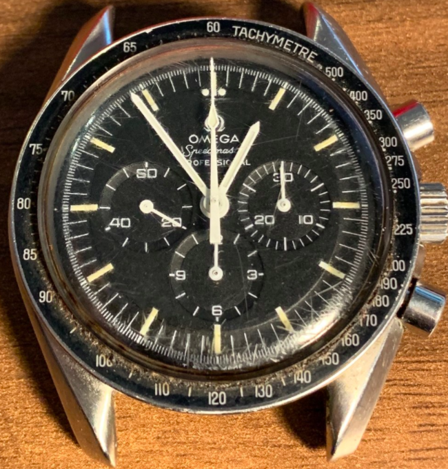 ·1973 Speedmaster sold today with what looks like service replacement hands - £4300 hammer price + 22% buyers fees so £5,250. With box and papers and bracelet.