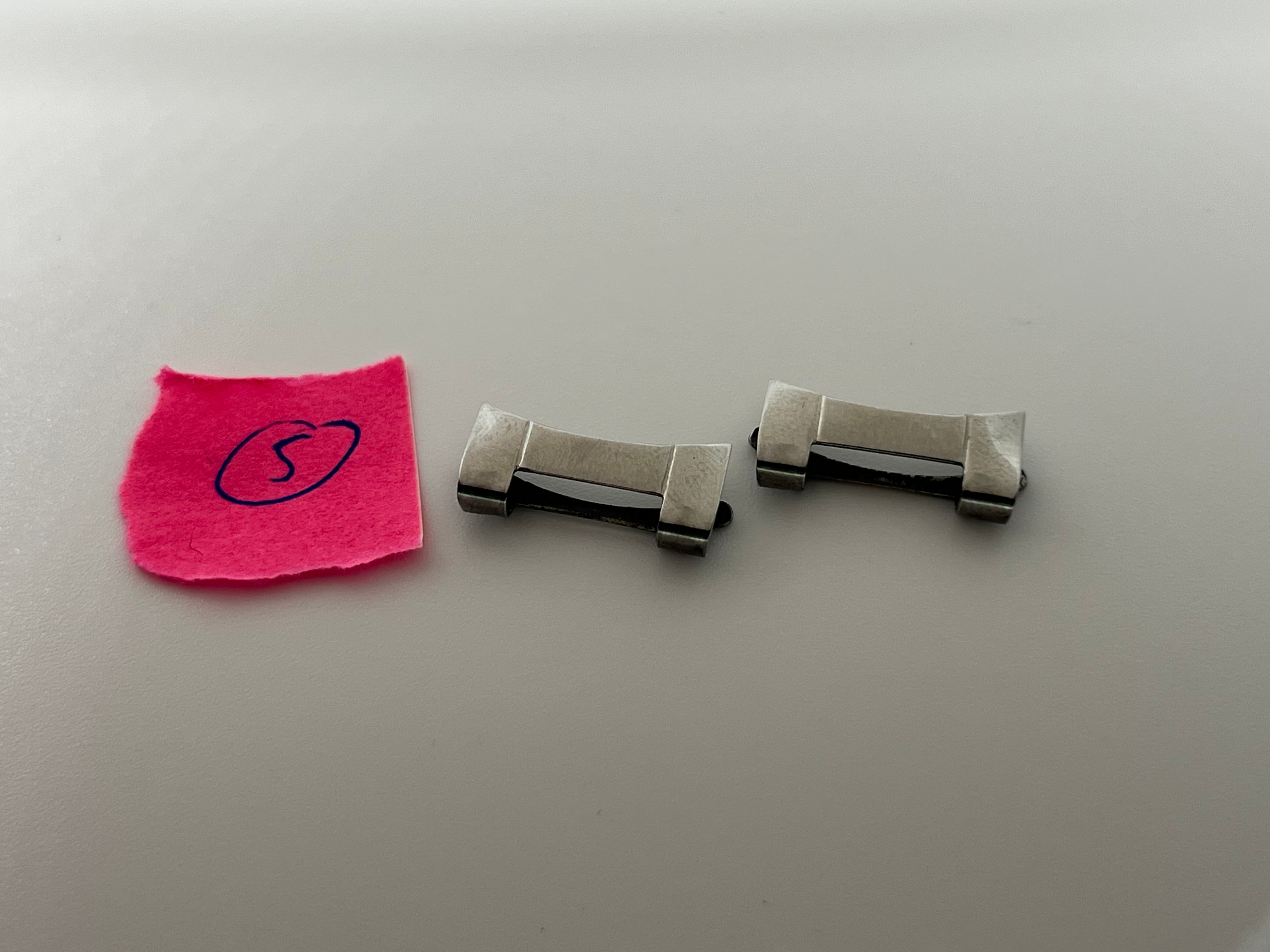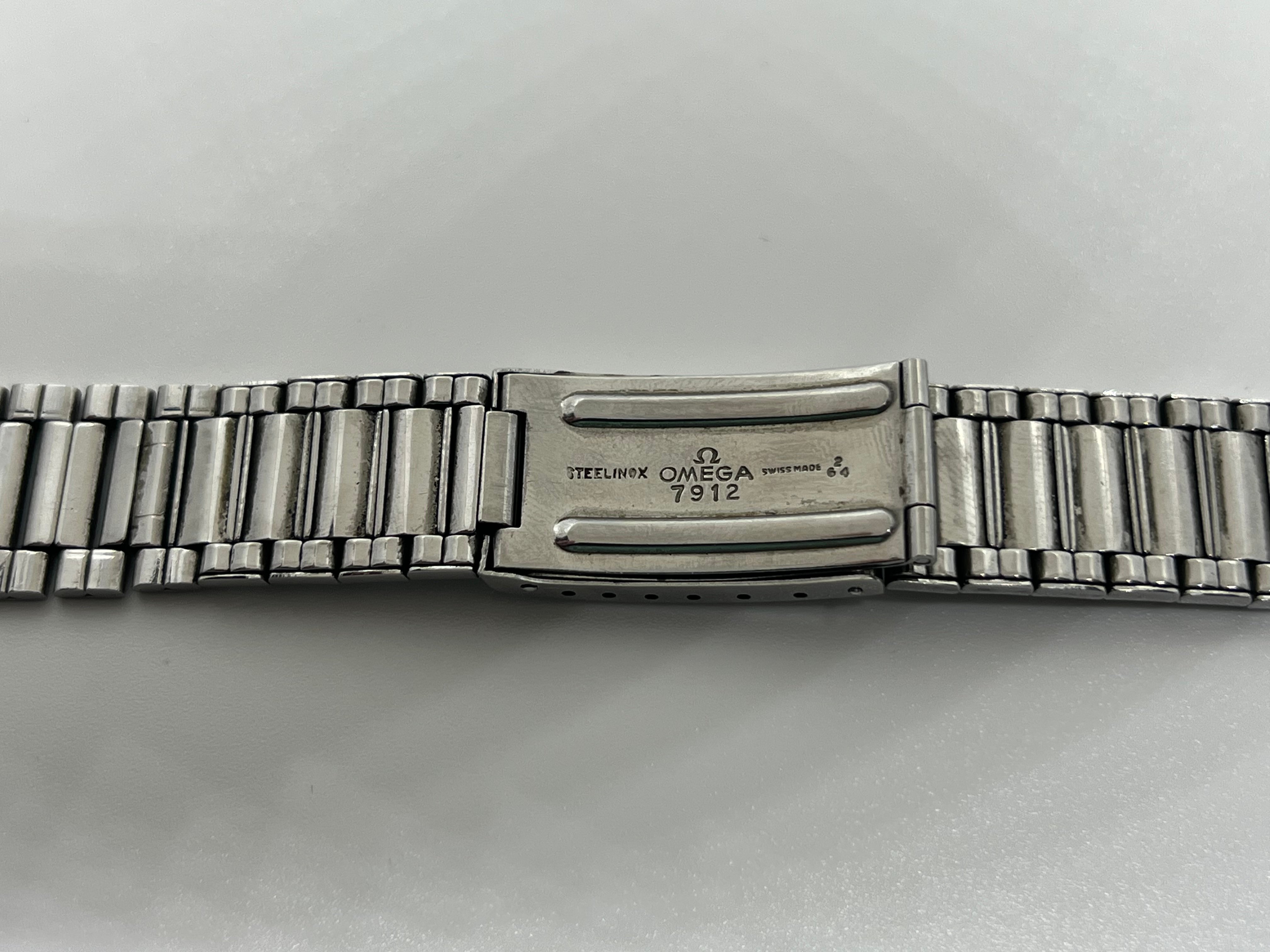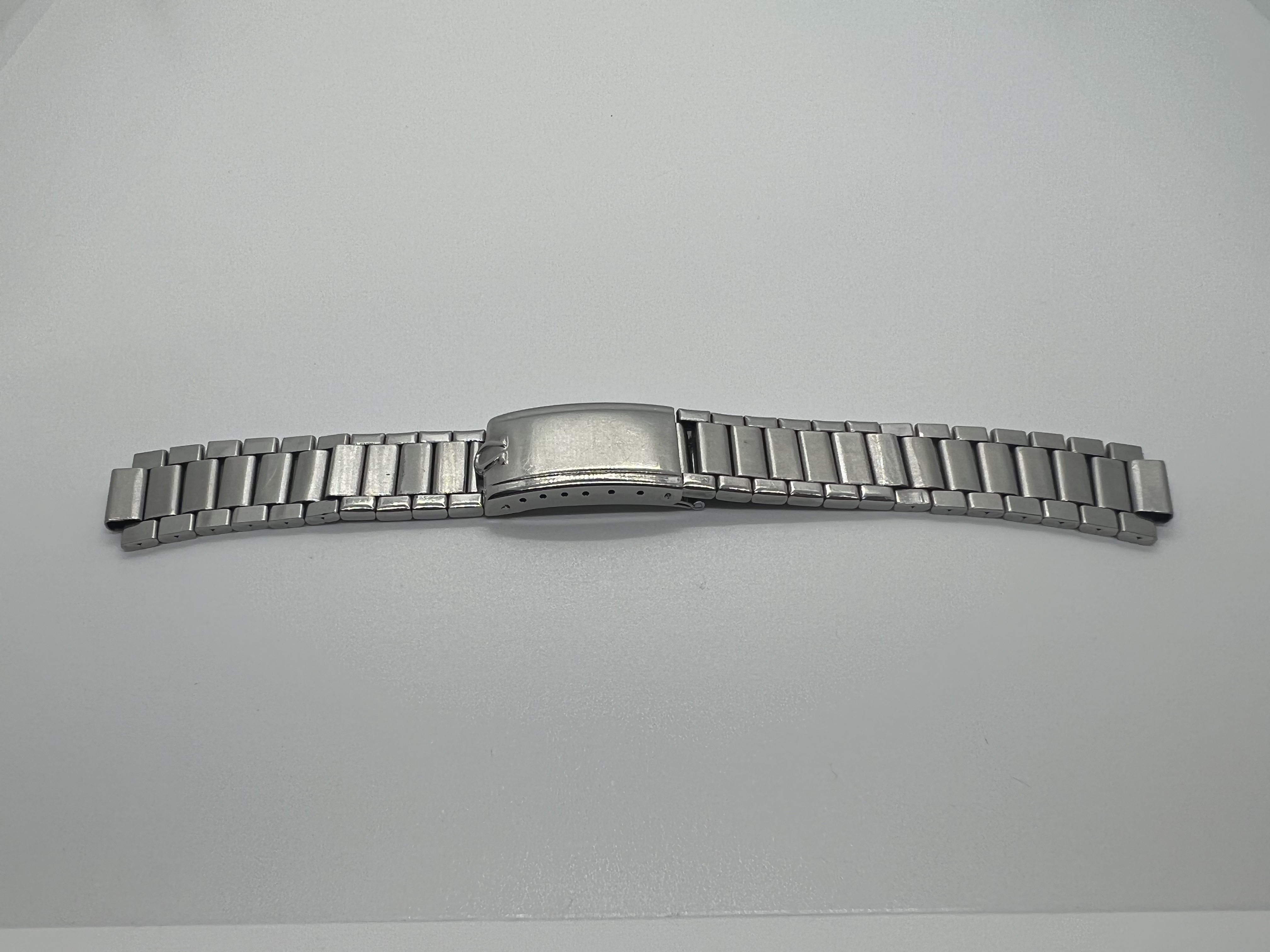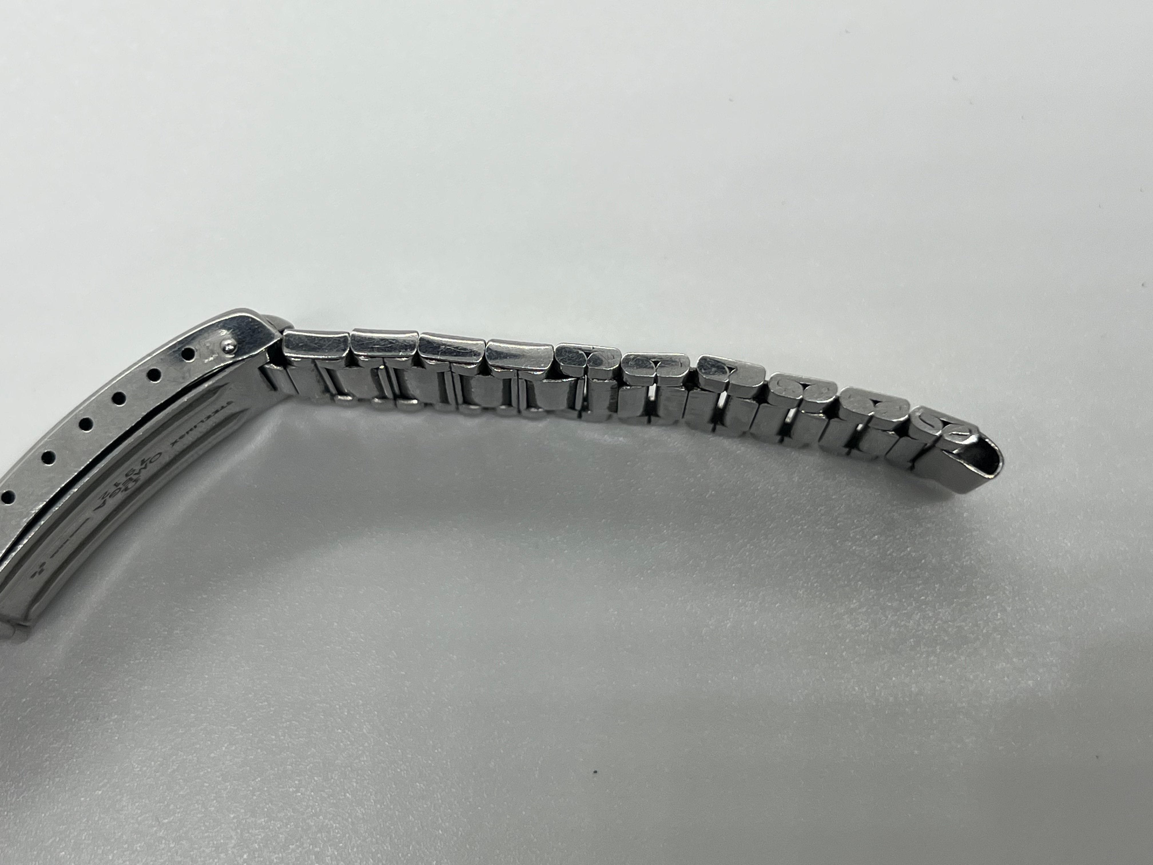 Produced in the 2nd quarter of 64, very nice condition. Clasp closes firmly, length of ~15.5cm. The original amount of 6+4 spring links. 2nd pictures shows maximum “bend” (=stretch). All flexi links work as they should, also shown in a picture. Brushing of the center links as a contrast to the outter ones intact, the expected scratches from >50 years, but nothing major.
