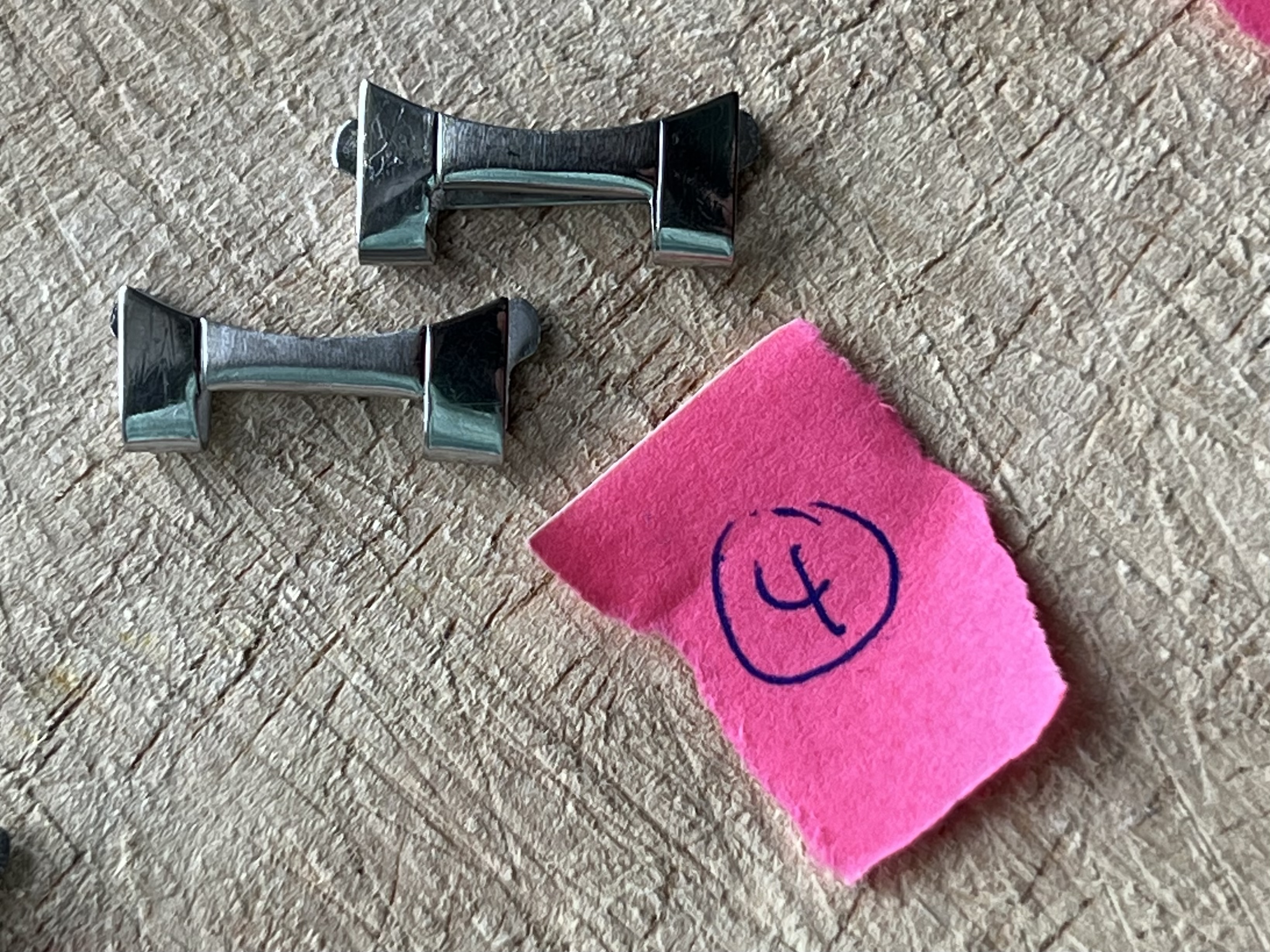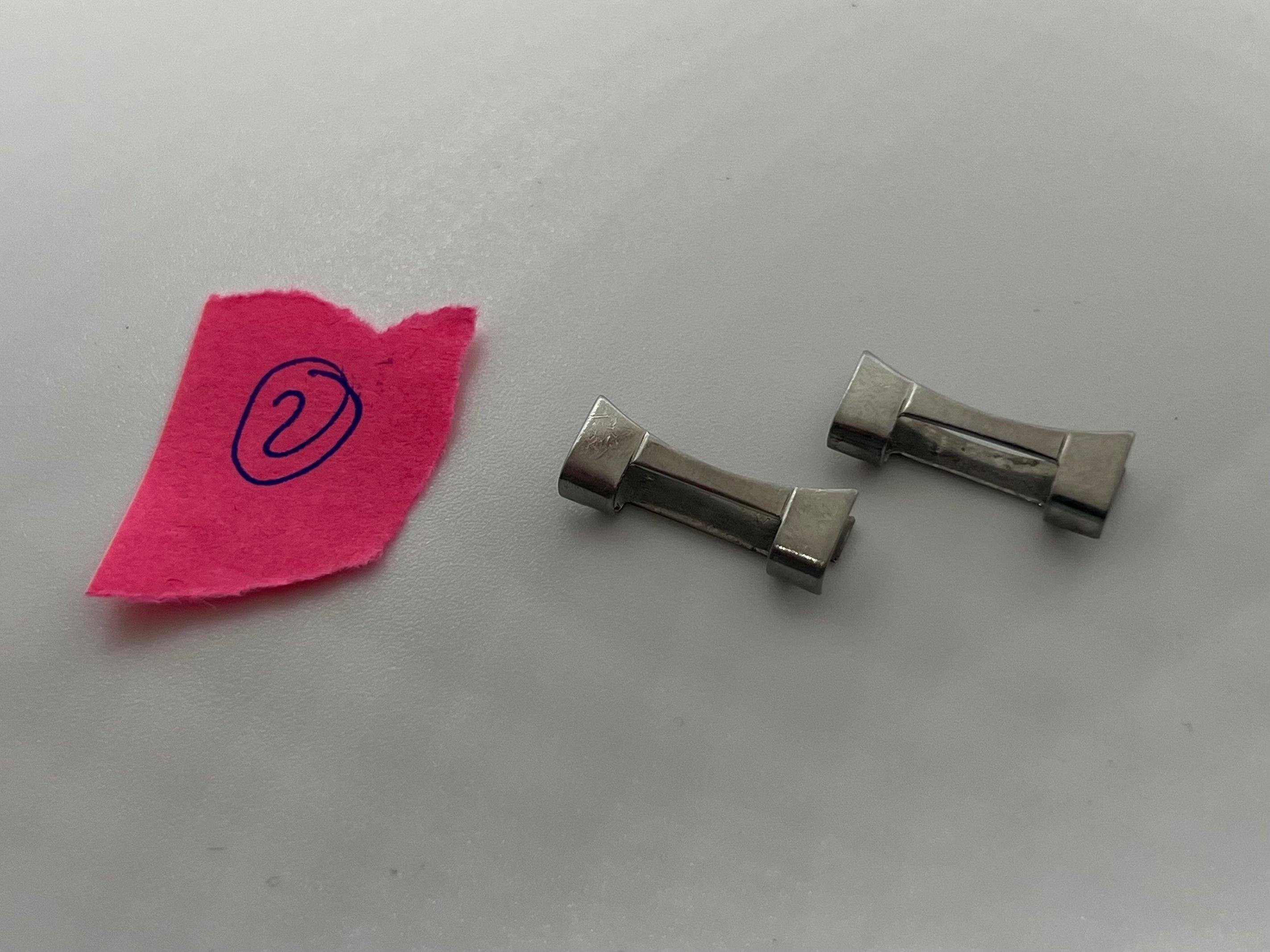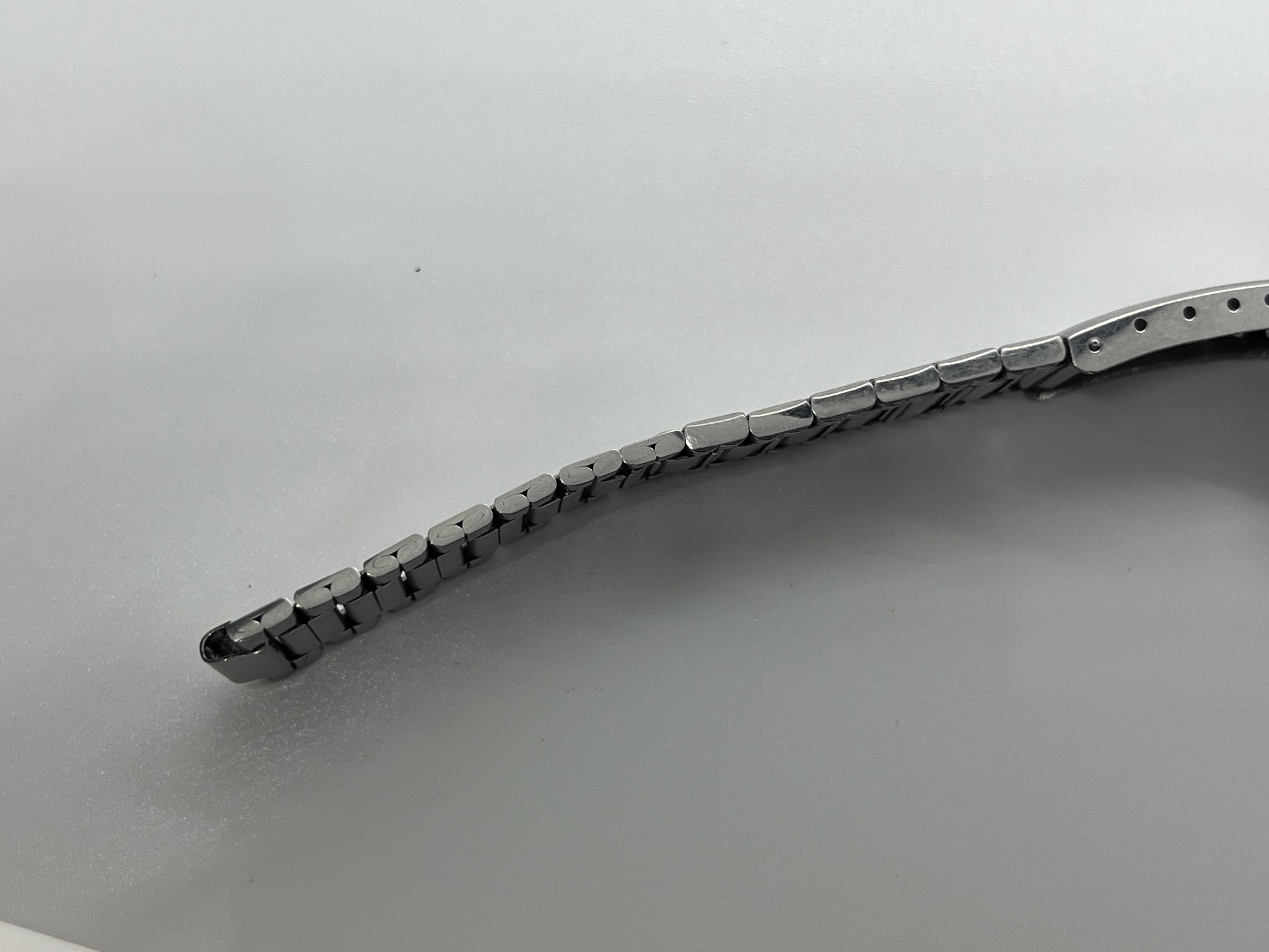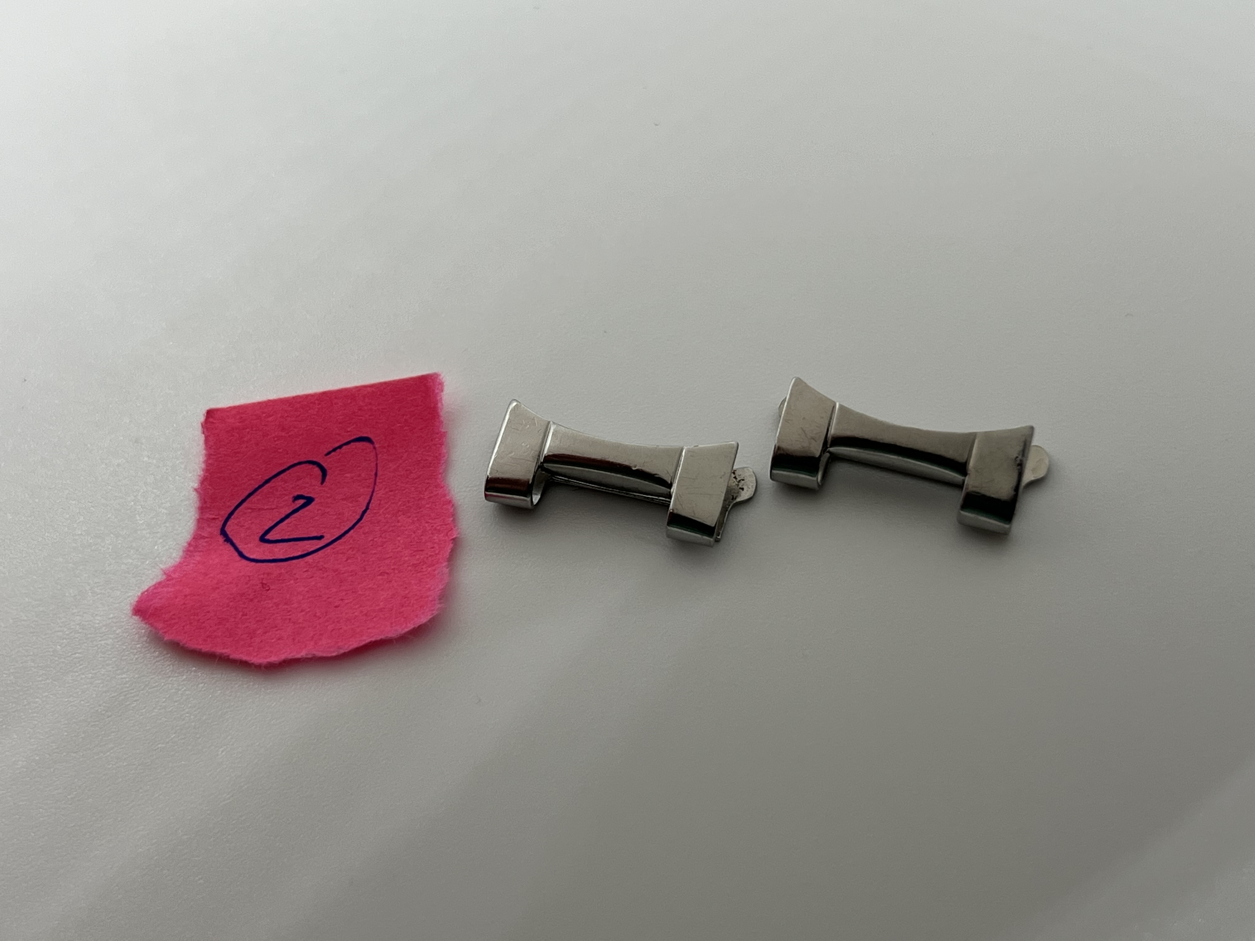 Produced in the 2nd quarter of 64, very nice condition. Clasp closes firmly, length of ~15.5cm. The original amount of 6+4 spring links. 2nd pictures shows maximum “bend” (=stretch). All flexi links work as they should, also shown in a picture. Brushing of the center links as a contrast to the outter ones intact, the expected scratches from >50 years, but nothing major.