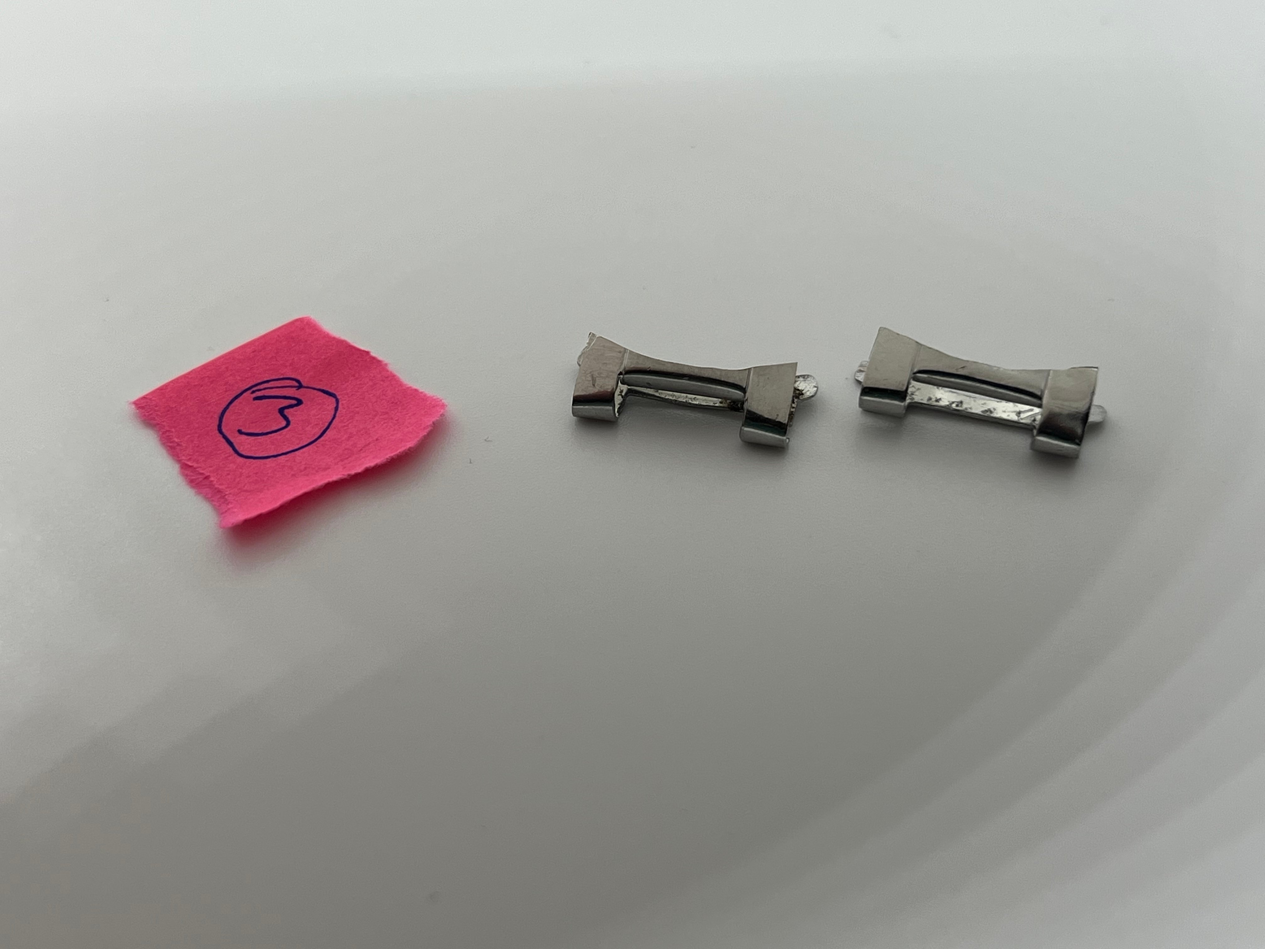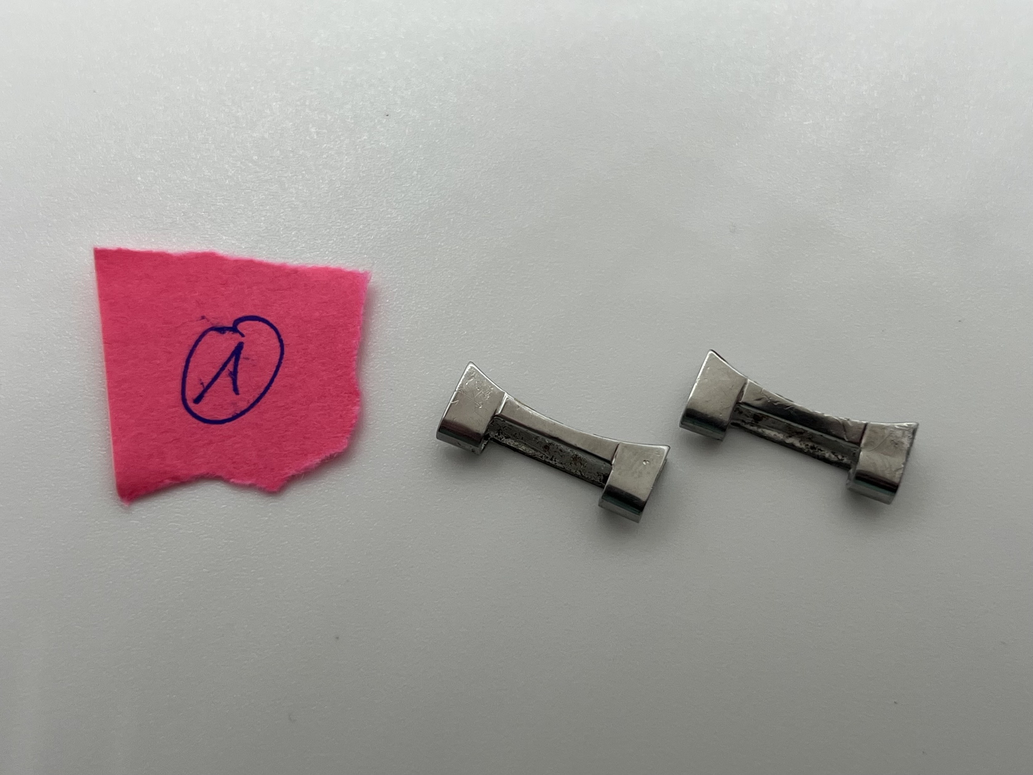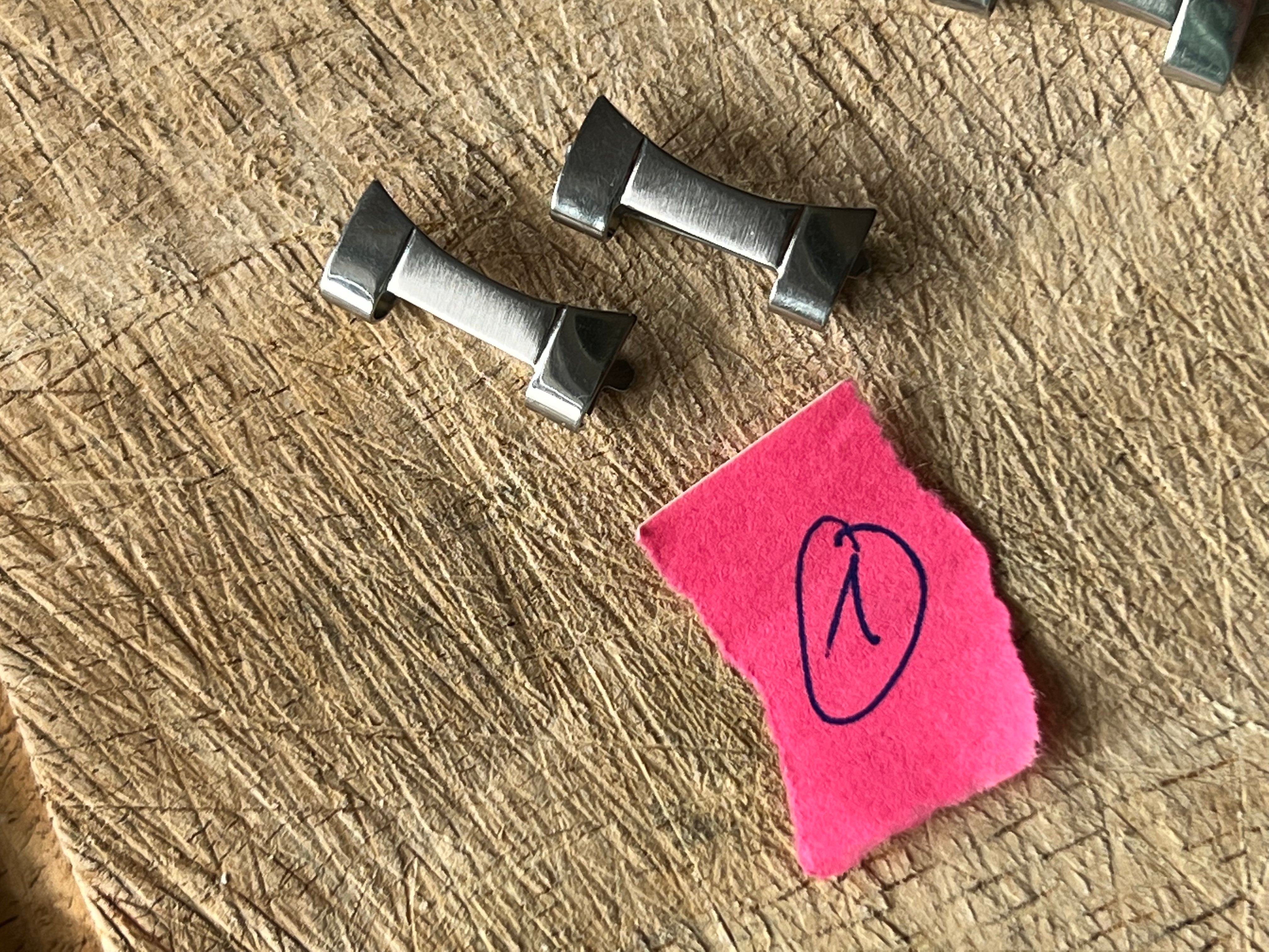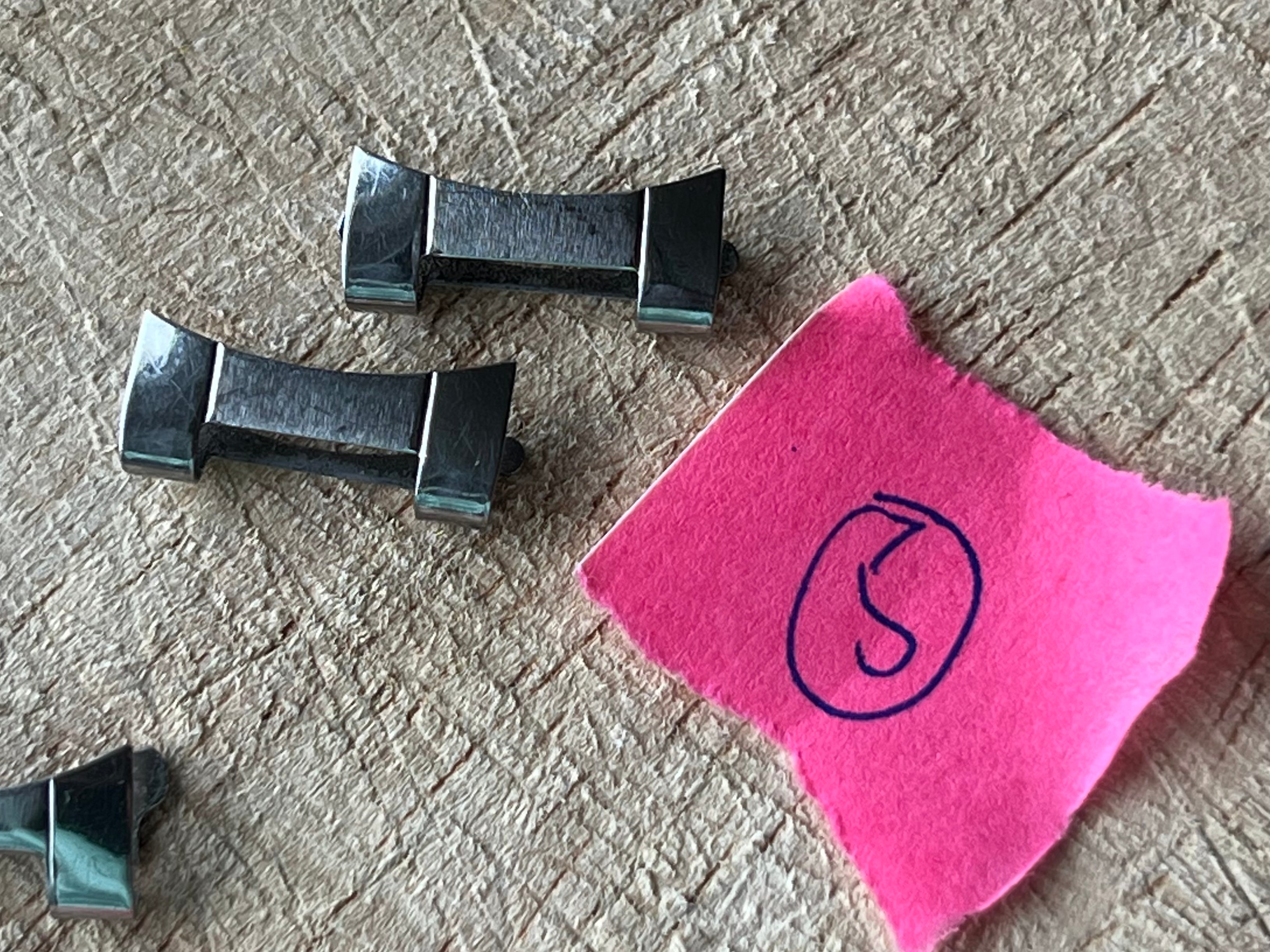 Produced in the 2nd quarter of 64, very nice condition. Clasp closes firmly, length of ~15.5cm. The original amount of 6+4 spring links. 2nd pictures shows maximum “bend” (=stretch). All flexi links work as they should, also shown in a picture. Brushing of the center links as a contrast to the outter ones intact, the expected scratches from >50 years, but nothing major.
