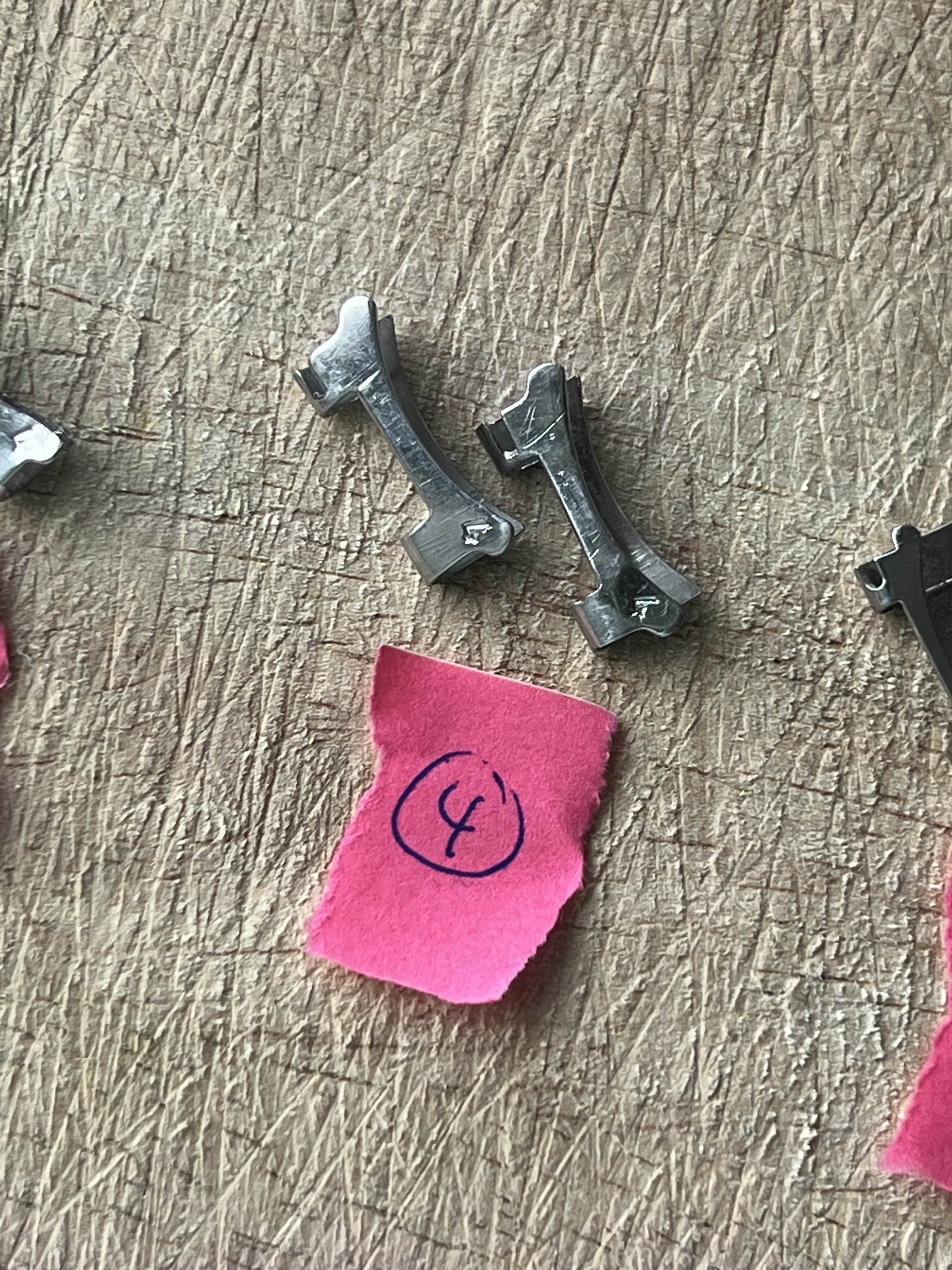 Used, slightly bent and with some more scratches, tested on a 2852 Constellation and a 2846 Seamaster case, both work fine. Fat version (compare the back side), one notch.