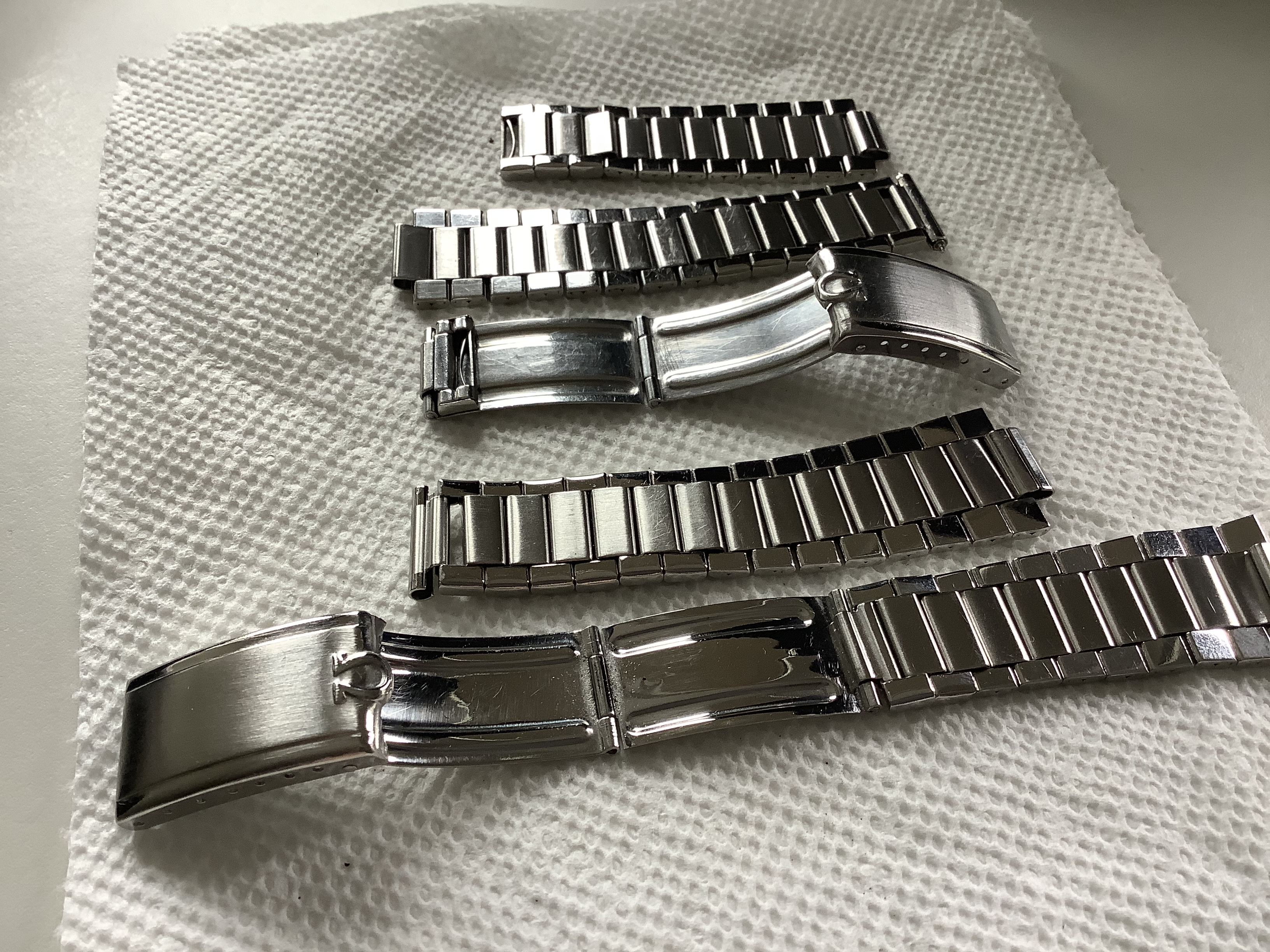 So, one could rightly theorize that the ends were polished down. Or, the larger measurements could be explained by someone retro-fitting the 7913 clasp to a 1039 bracelet body. But they all have their 8 fixed links, so it’s not that. I’ve seen some that have lost their last link, to make the end a bit smaller so it fits a smaller lug width better.