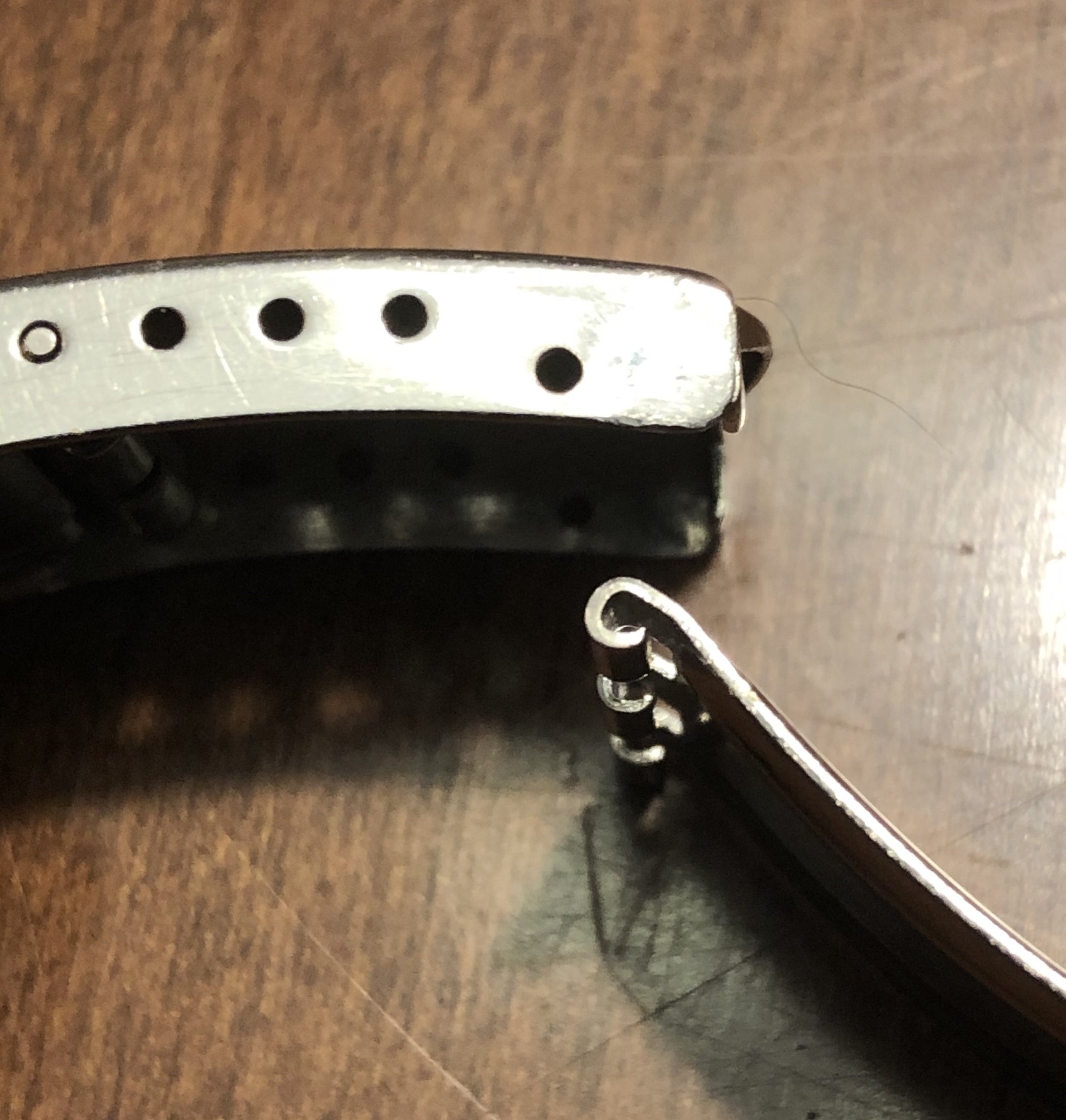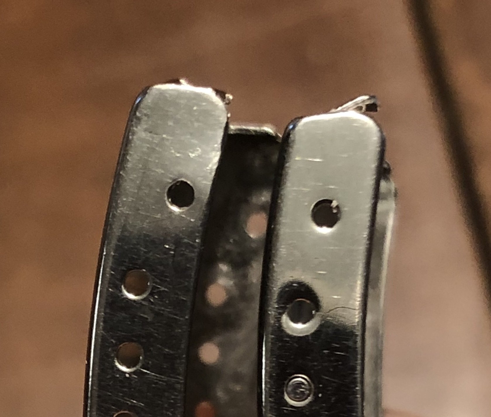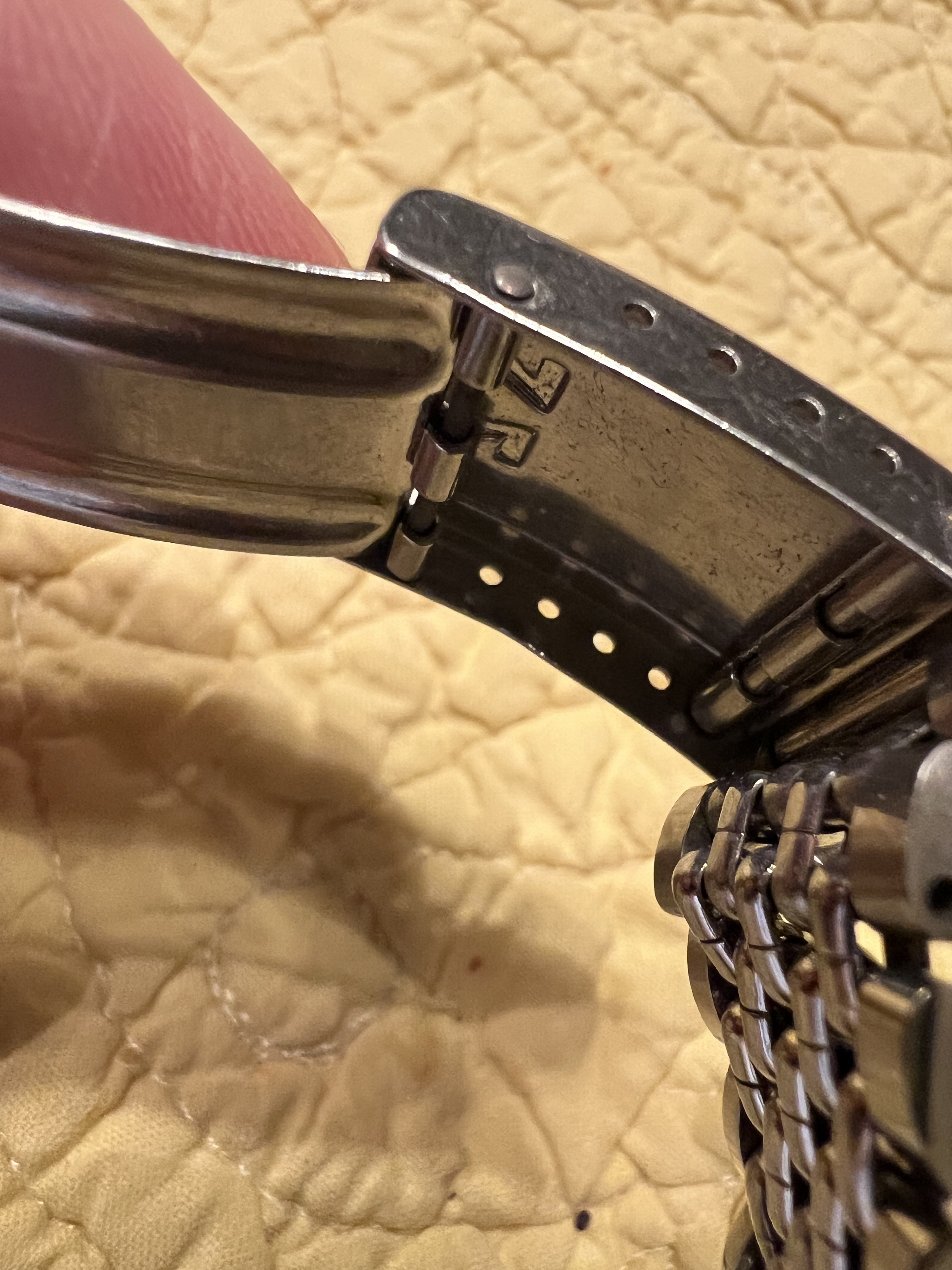 ·I recently received an 8220 that is missing the pin to attach the blade to the clasp. In my 1502 and 1036 bracelets, they are attached by a springbar, however, the loops at the end of the blade are too small to accommodate a springbar in the 8220. I am thinking that perhaps a press-fit pin is used, or maybe a rivet. The clasps are the same. Does anyone have an 8220 bracelet to check. Many thanks.