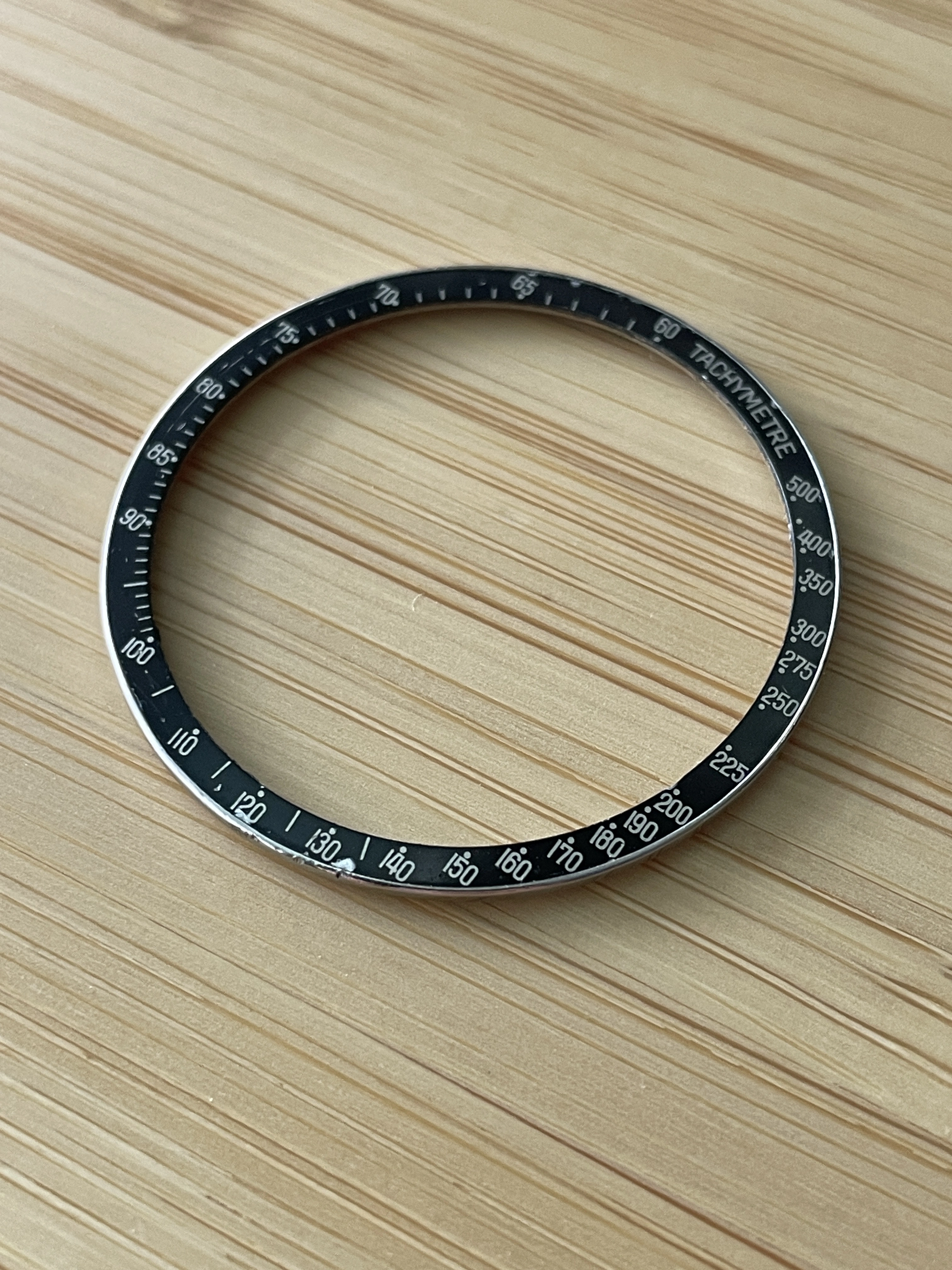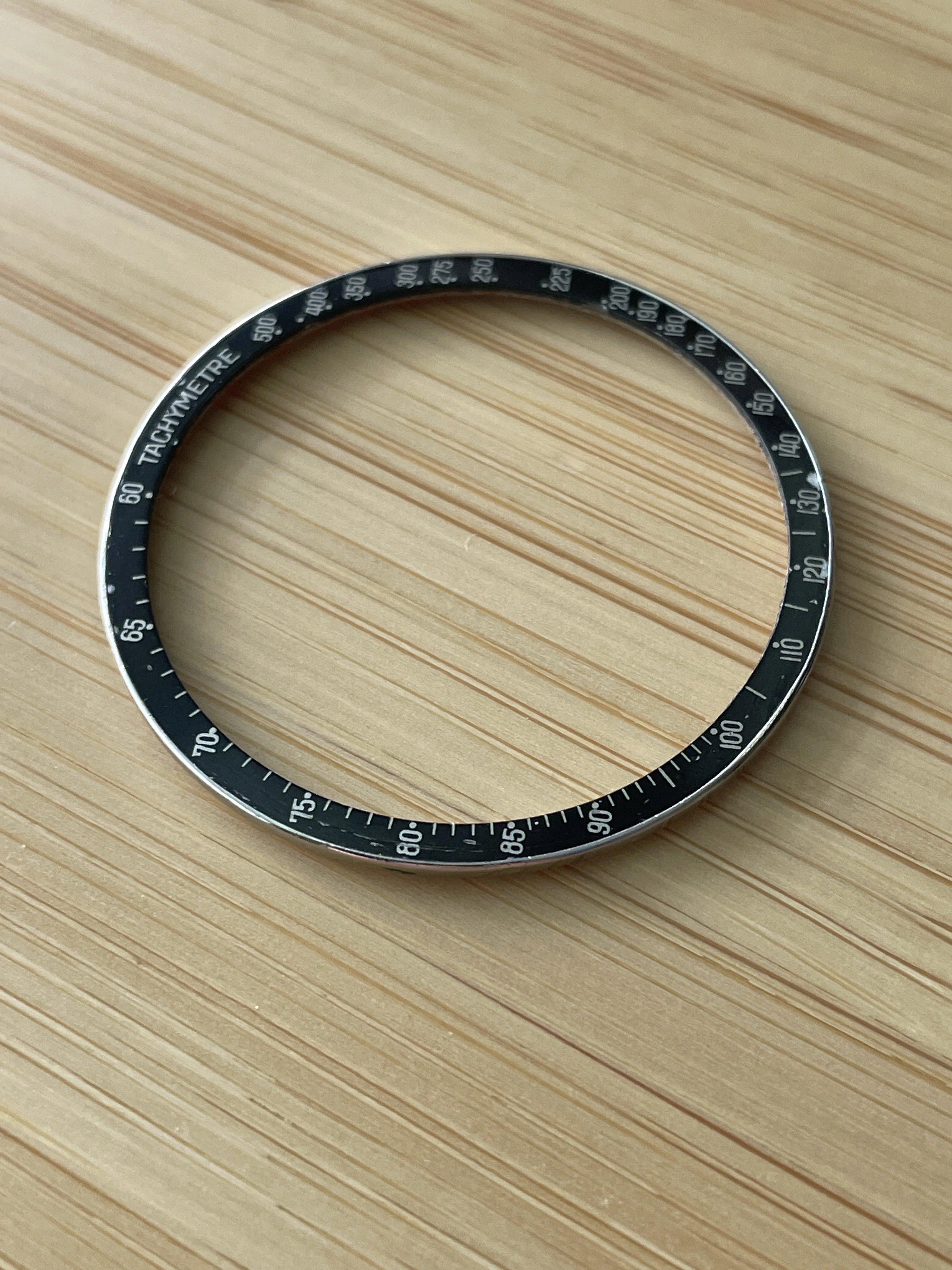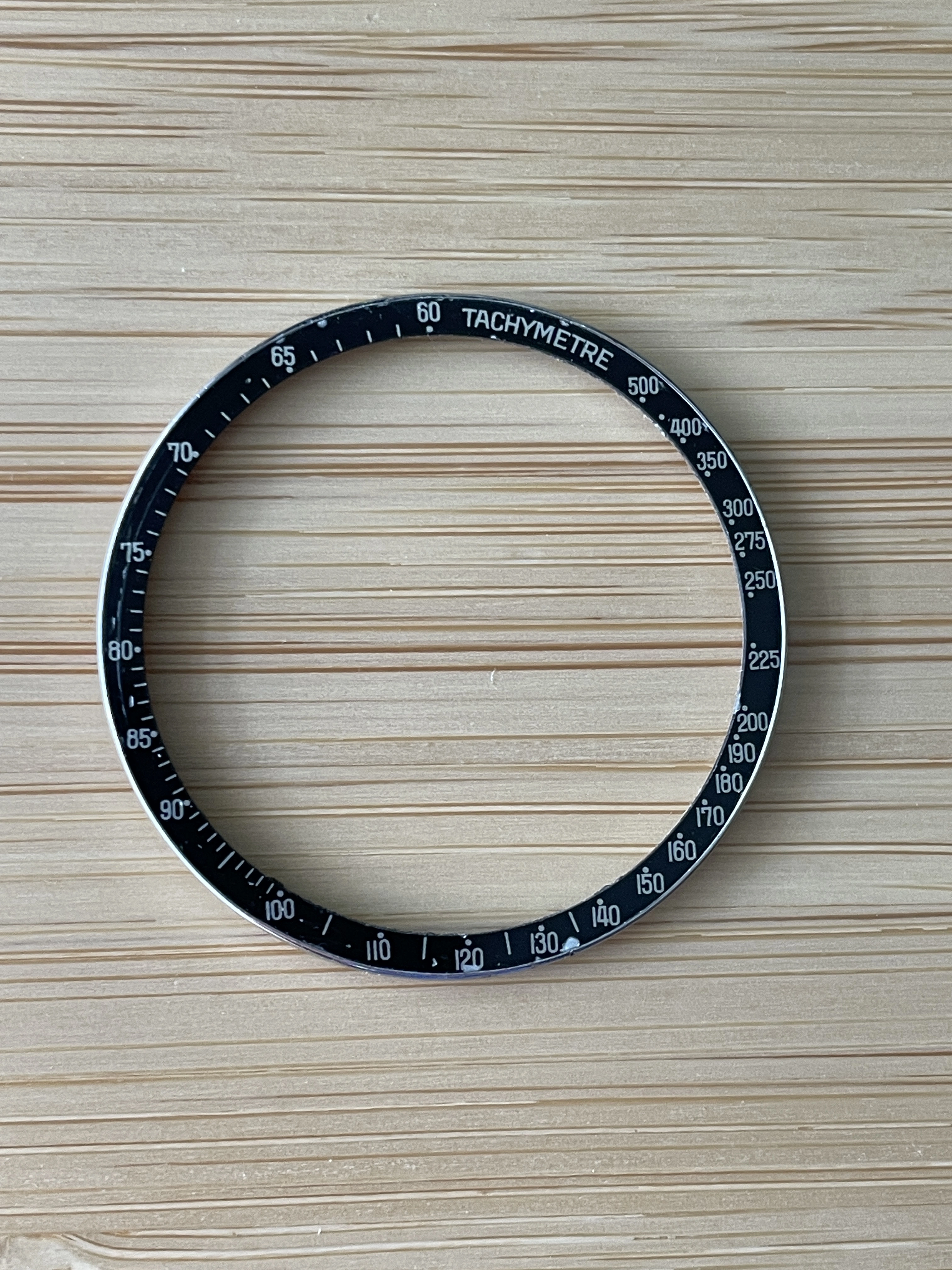 7. Sold - $350 - Speedmaster Professional 145.022-69/71/74/76/78 and later DNN "B2 - Dot Close to 70 Narrow C" Bezel. The bezel appears to be in good to fair condition with some scratches / flaking of the insert. Excluding the "120" marking all number markings are visible. Bezel doesn't appear to have any fading of the black aluminum color but in the sunlight the bezel does appear to lean towards a dark dark navy color which isn't uncommon for the patination of these bezels.