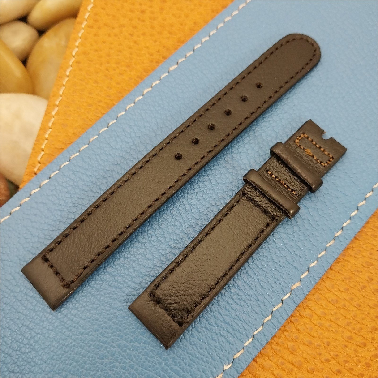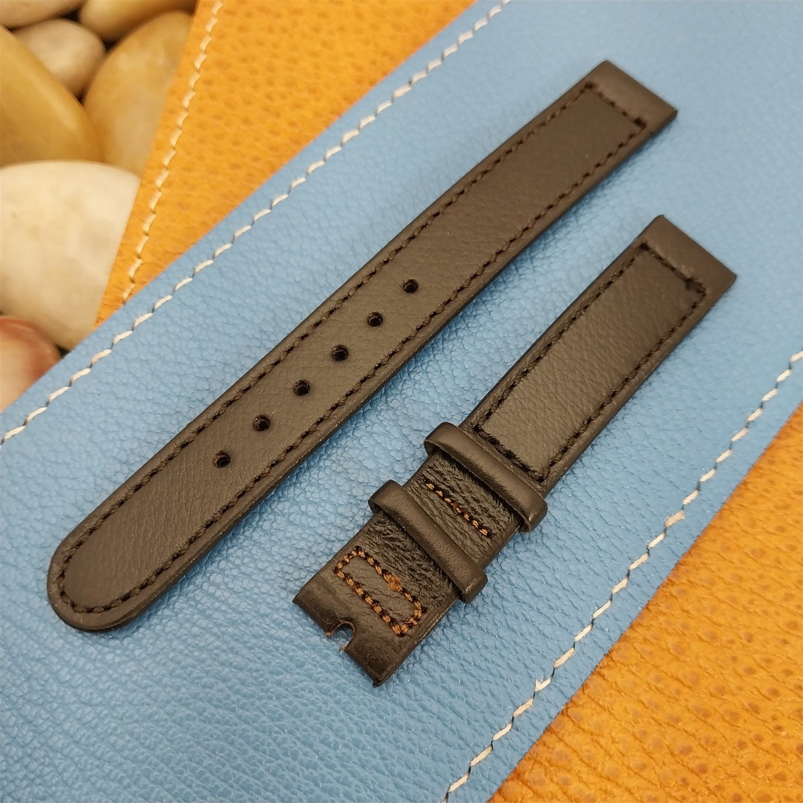 ·NOS unused 1950s old-stock Hamilton stitched black leather double-keeper watch strap.