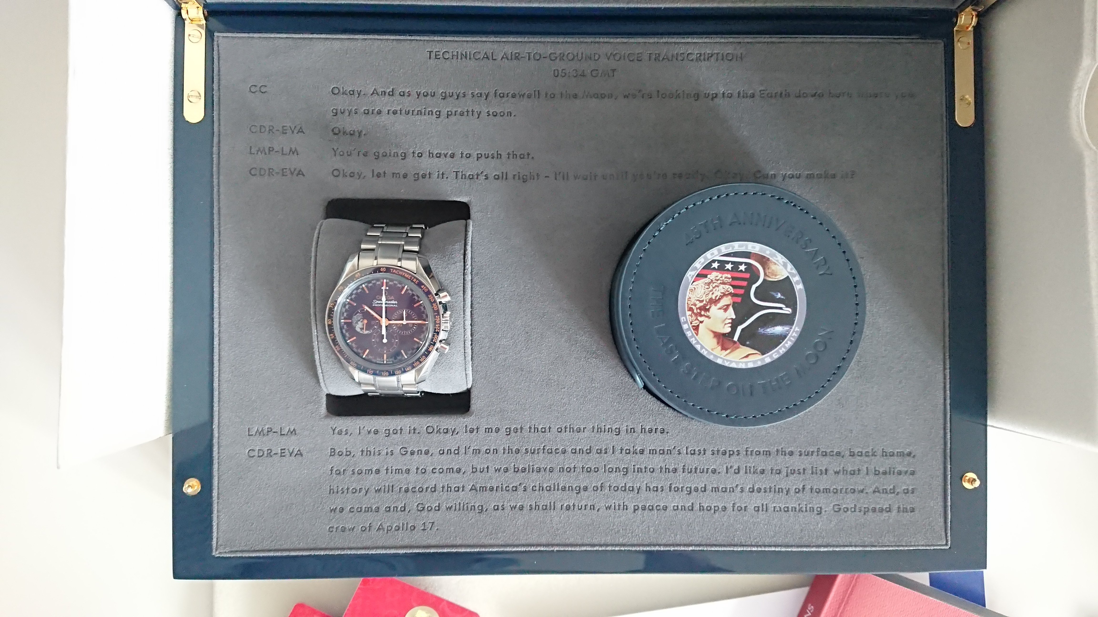 On the 9 o’clock sub dial is the Apollo 17 patch.
