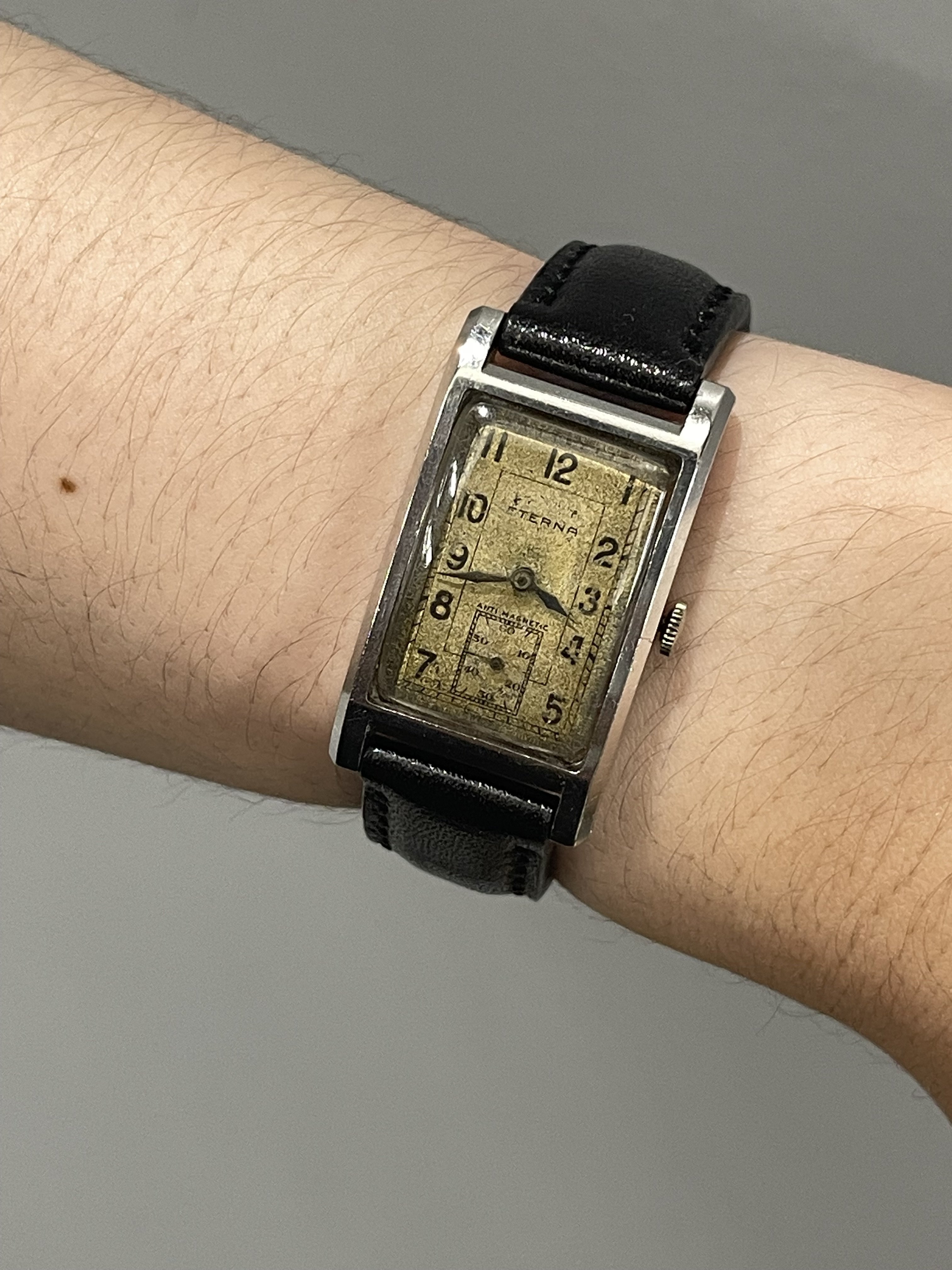 The case serial appears to indicate a 1932 production date, which would make this the oldest WW currently in my collection. Unfortunately, somebody attempted to sand off a personalized engraving and I can't quite read it. At 22.5x38.5mm, and taking a 16mm strap, it's a little smaller than the seller claimed.
