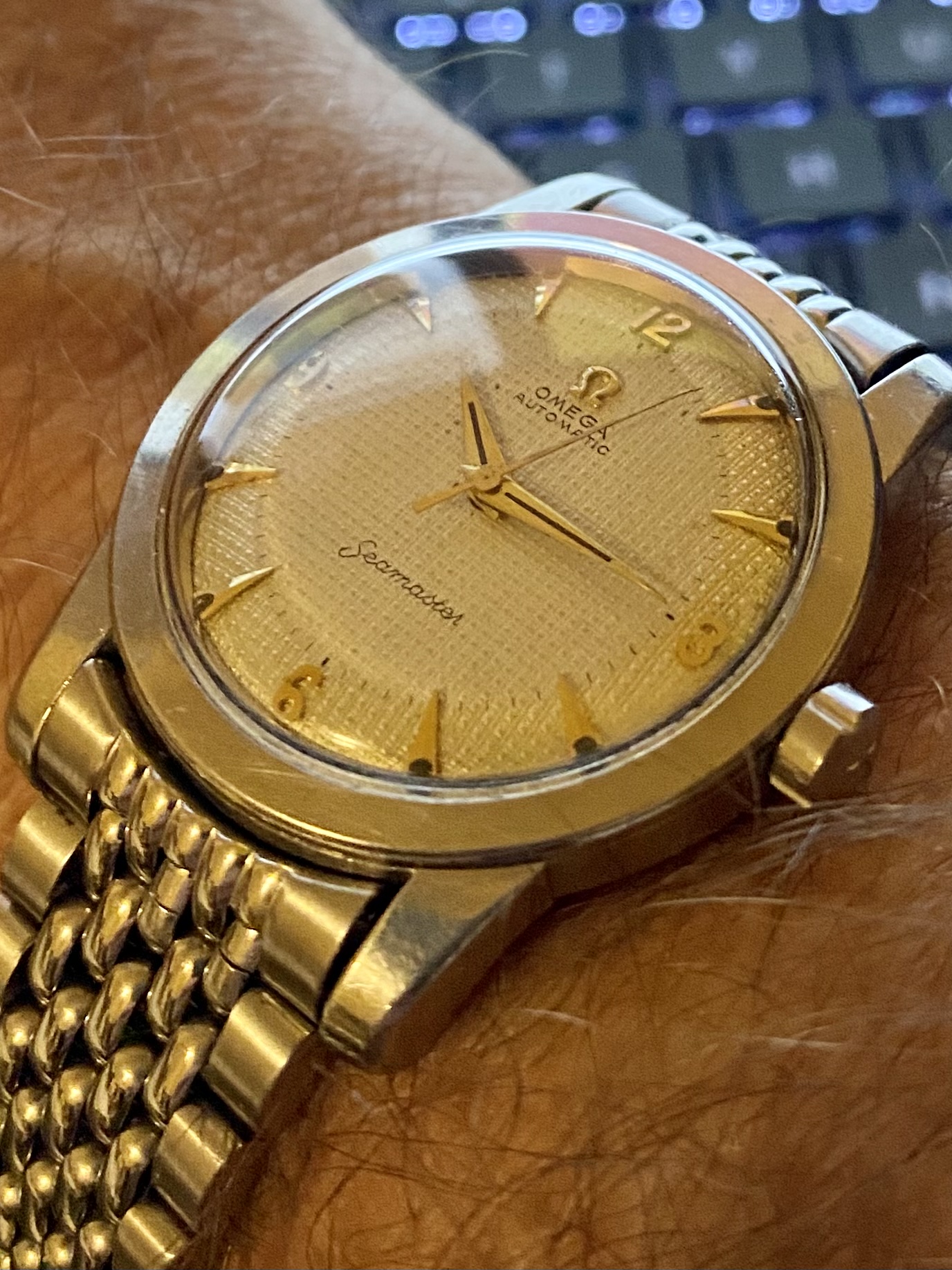 ·Although MtV didn’t sell me this lovely two tone hobnail dial Seamaster 2577, he did alert me to it and put me in touch with the owner who in turn sold it to me at a bargain basement price. Matt is truly among the elite members here and his knowledge of vintage Omega is second to none. He is generous with that knowledge and his time, always willing to provide advice, and is a kind and gracious person to boot. You can do business with him with absolute confidence. Thanks Matt!
