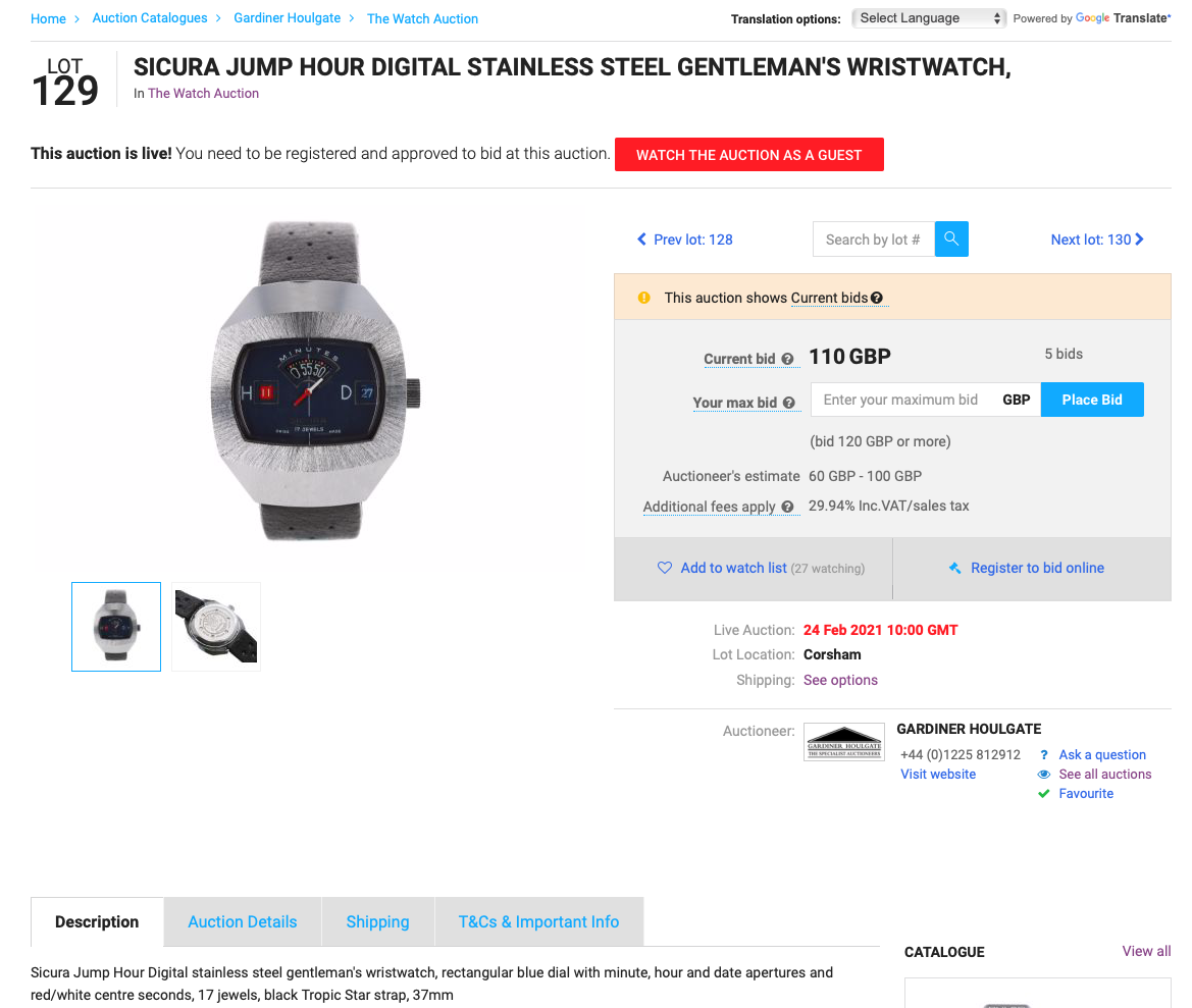 Trying to track down the particular model wasn't easy at first. I had a vague memory of the shape and colours but some of those watches look very similar to each other after nearly 50 years. Then one day I saw it and I knew that was the exact model I had been given all those years ago.The Sicura manual wind jump-hour. I put it on my want list. Actually there were plenty around but asking prices are ridiculously high for a fairly ordinary 17 jewel Baumgartner. Why? Because several years after these watches came out the Sicura people rescued Breitling and, as if by magic, old Securas became imbued with the quality of the Breitling name.