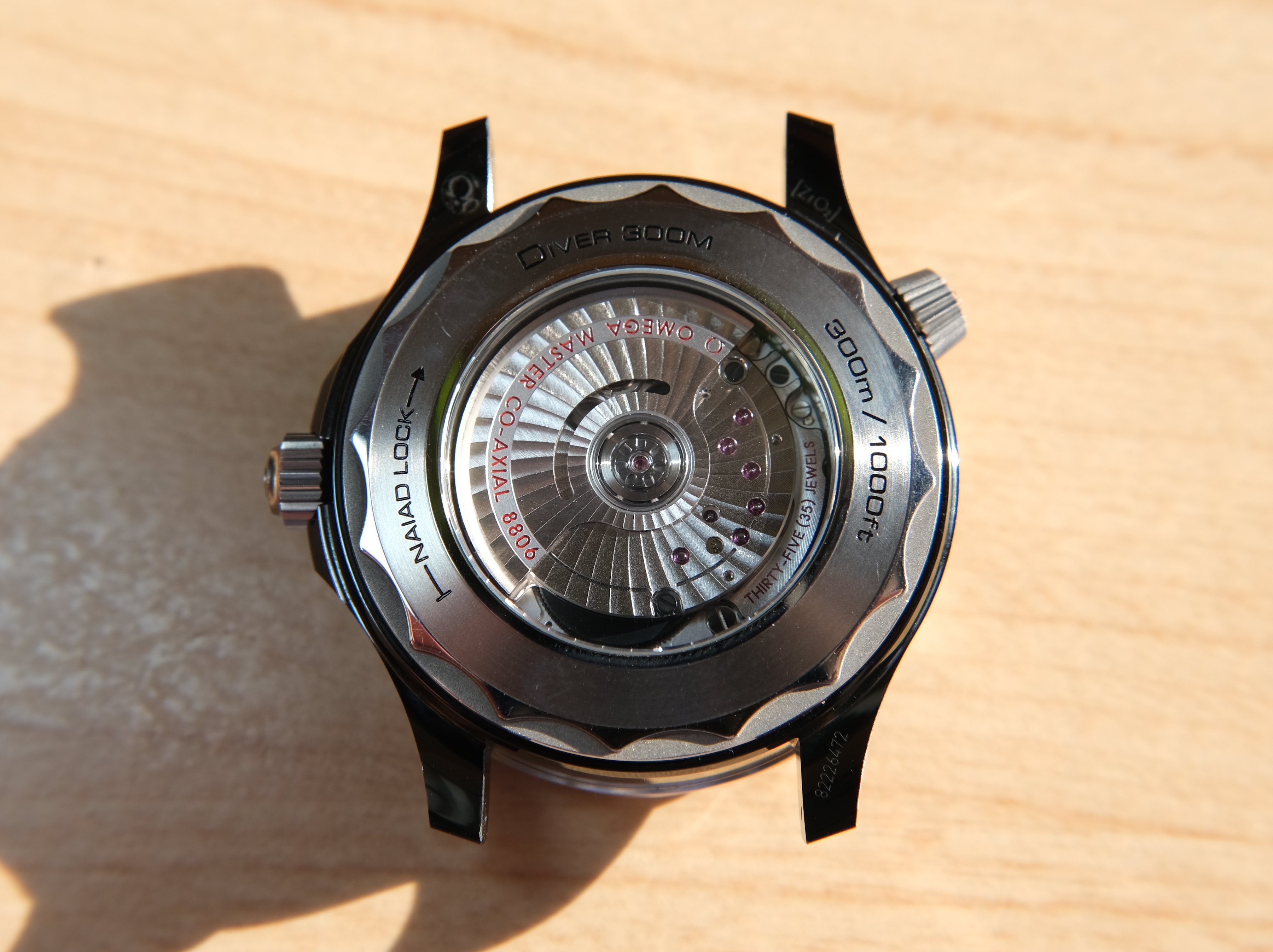 Omega made up a problem and then tried to solved it when they started using the Naiad Lock system on their casebacks. In theory, this system should ensure that the text on the caseback is always aligned with the rest of the case when installed properly. On my particular example of this Seamaster, this is not the case. After doing a bit of searching, this seems to be a rather common problem with this model. See this thread of another example. The watch used for this WatchBox review also had a misaligned caseback.