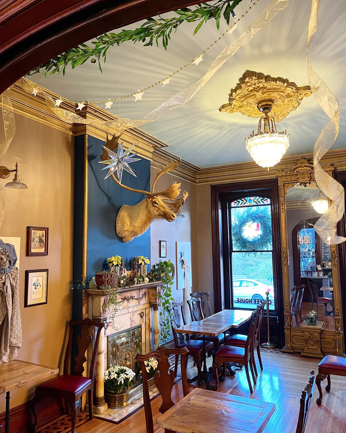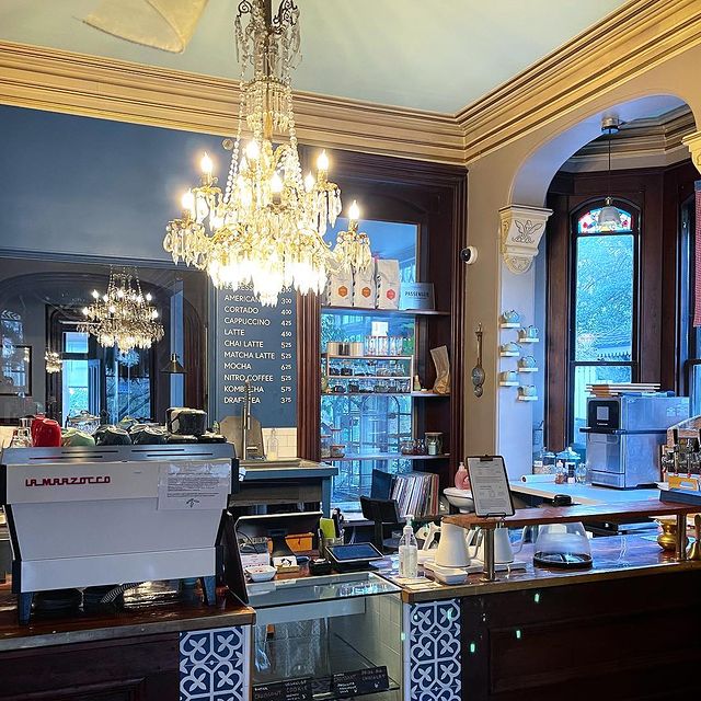 Originally built in 1862, what started out as a luxurious home has been repurposed numerous times including a funeral home, a movie set, a piano concert hall and - in its most recent incarnation - a coffee house. The Victorian architecture is still discerned and the building has continued to maintain its original charm complete with parquet floors and cast metal fixtures (many of which have survived in excellent condition.)