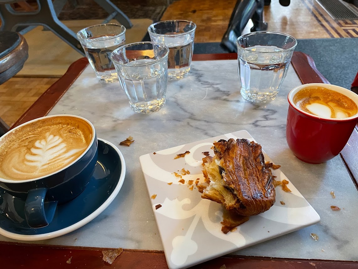 While the atmosphere is extremely welcoming, the menu on the other hand is all business. There are no sizes. No offerings of artificially flavored syrups to go along with whipped cream toppings or any other extraneous ingredients. Just plain old fashioned espresso and steamed milk concoctions and that's the way I like it (oh and they offer pour overs to but I haven't ventured that far yet).