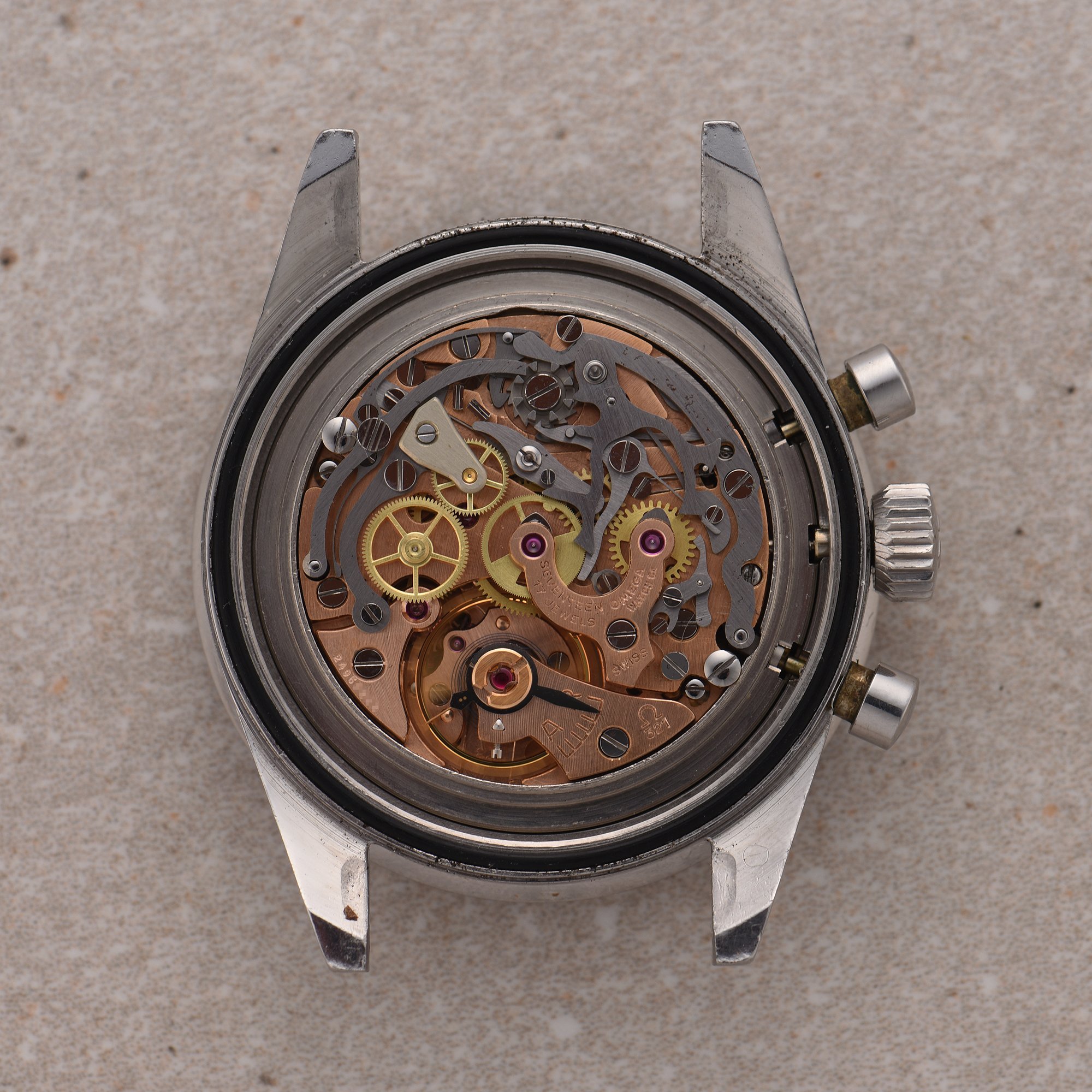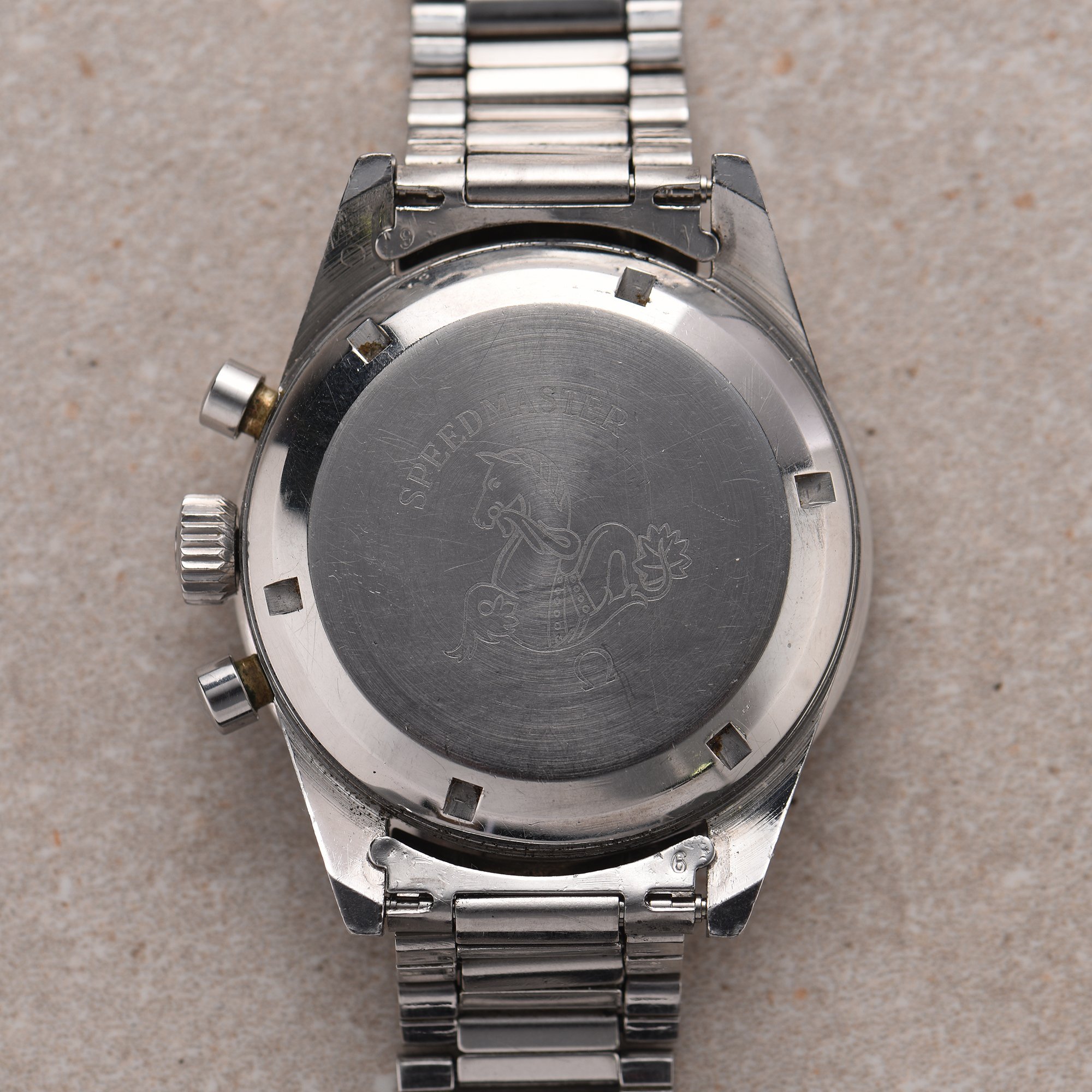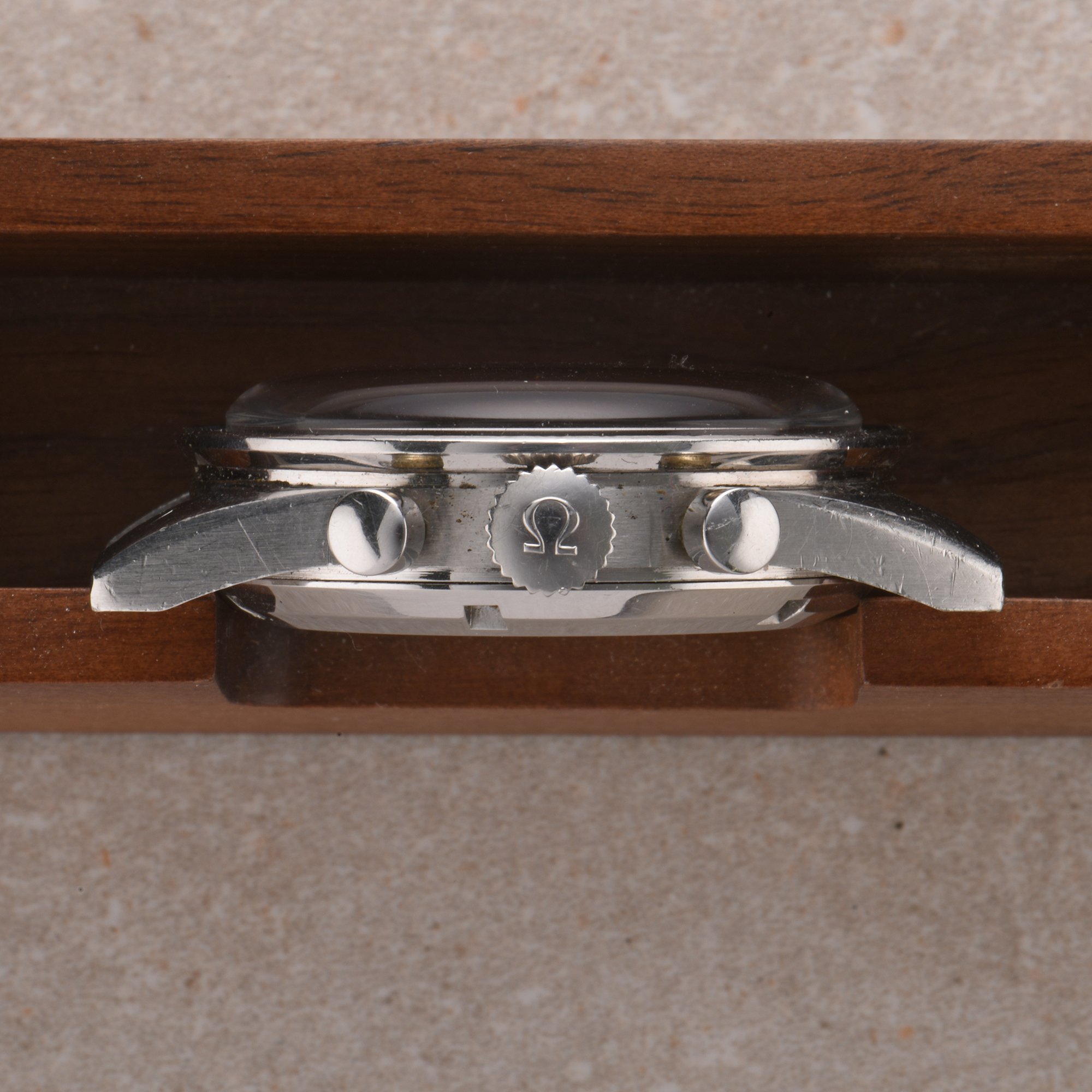 Crown & pushers: Original "Flat-foot" crown. Original pushers.