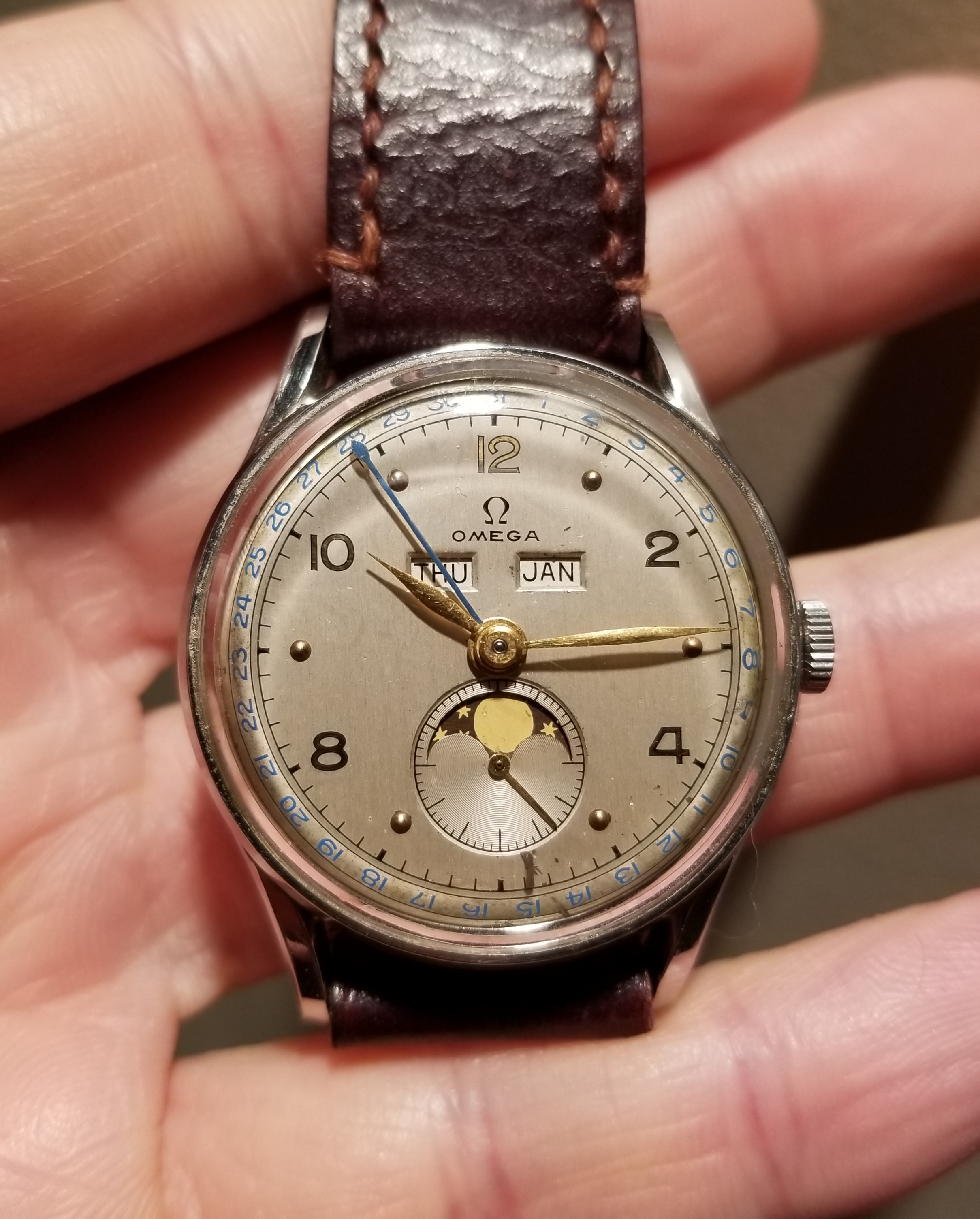 A few months ago I purchased this early 2471/1 with 27 DLPC movement. It was working nicely except for the quickset moonphase, which was sticky. It is now back from the watchmaker so I wanted to share it here.