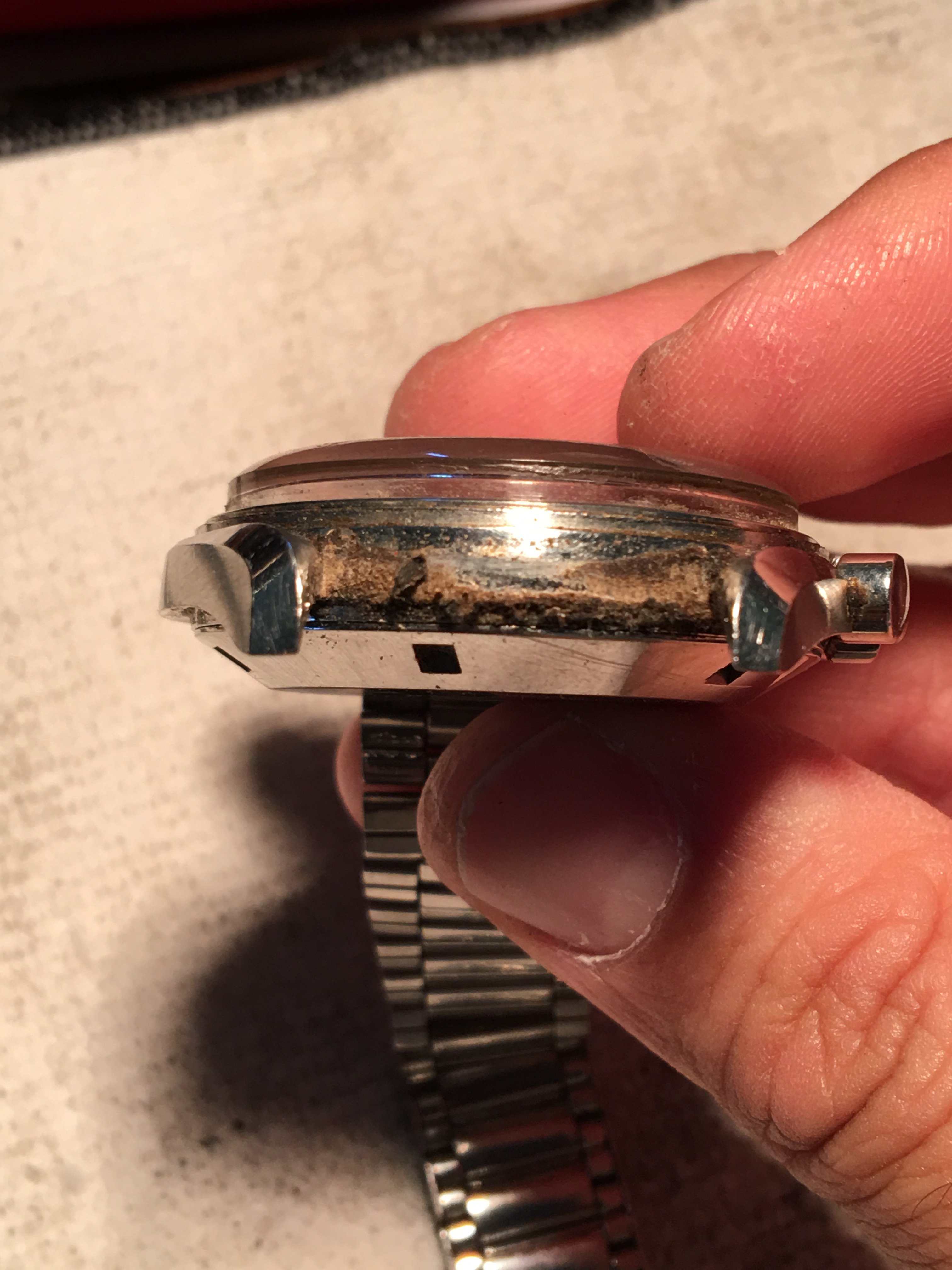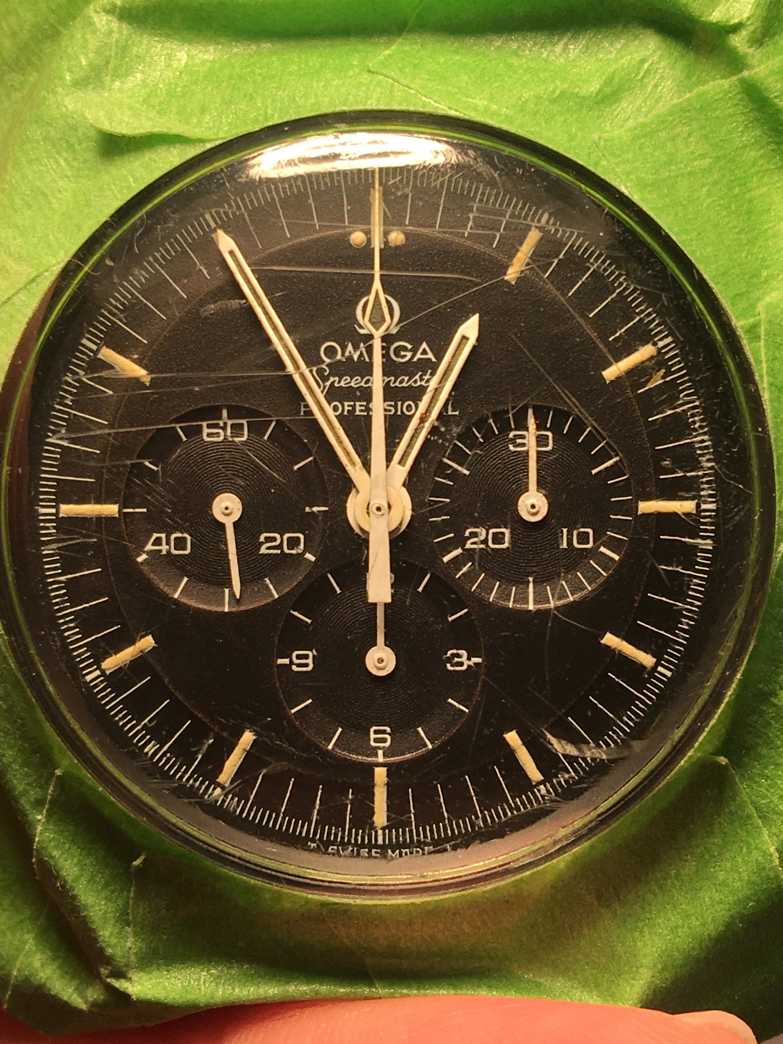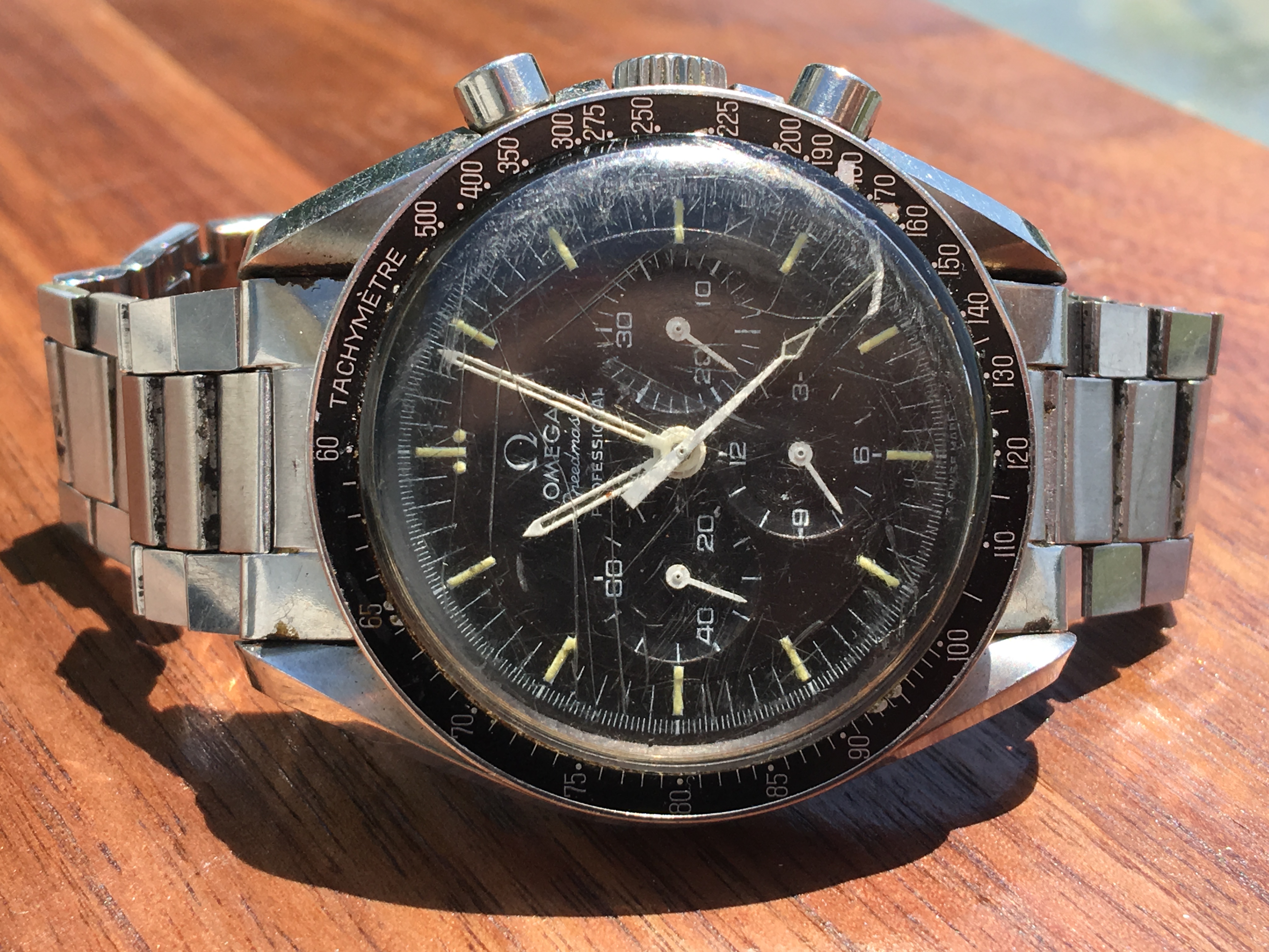 Just came back from some Vacation to this one, came from Vegas and I'd say this is probably the dirtiest I've found a speedie. Starting to clean it up today, and hopefully find some brown under that scratched up hesalite!