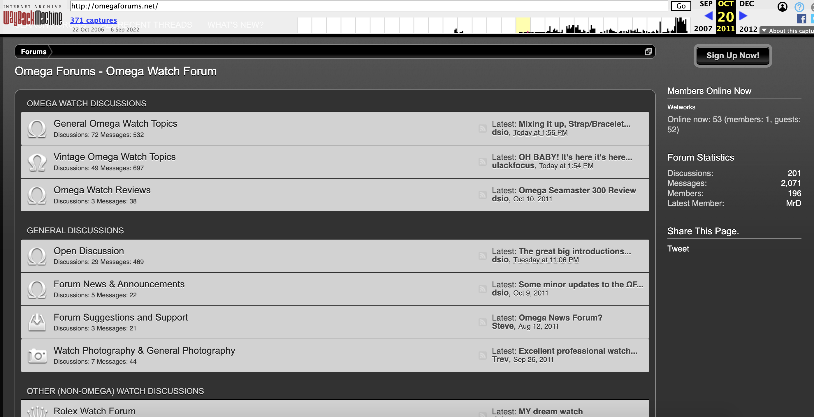 路I'm nearing 9 years on OmegaForums, which is longer than I've been on any forum. It got me thinking of my "early days". So I went to the Wayback Machine and found this site to be relatively well archived.