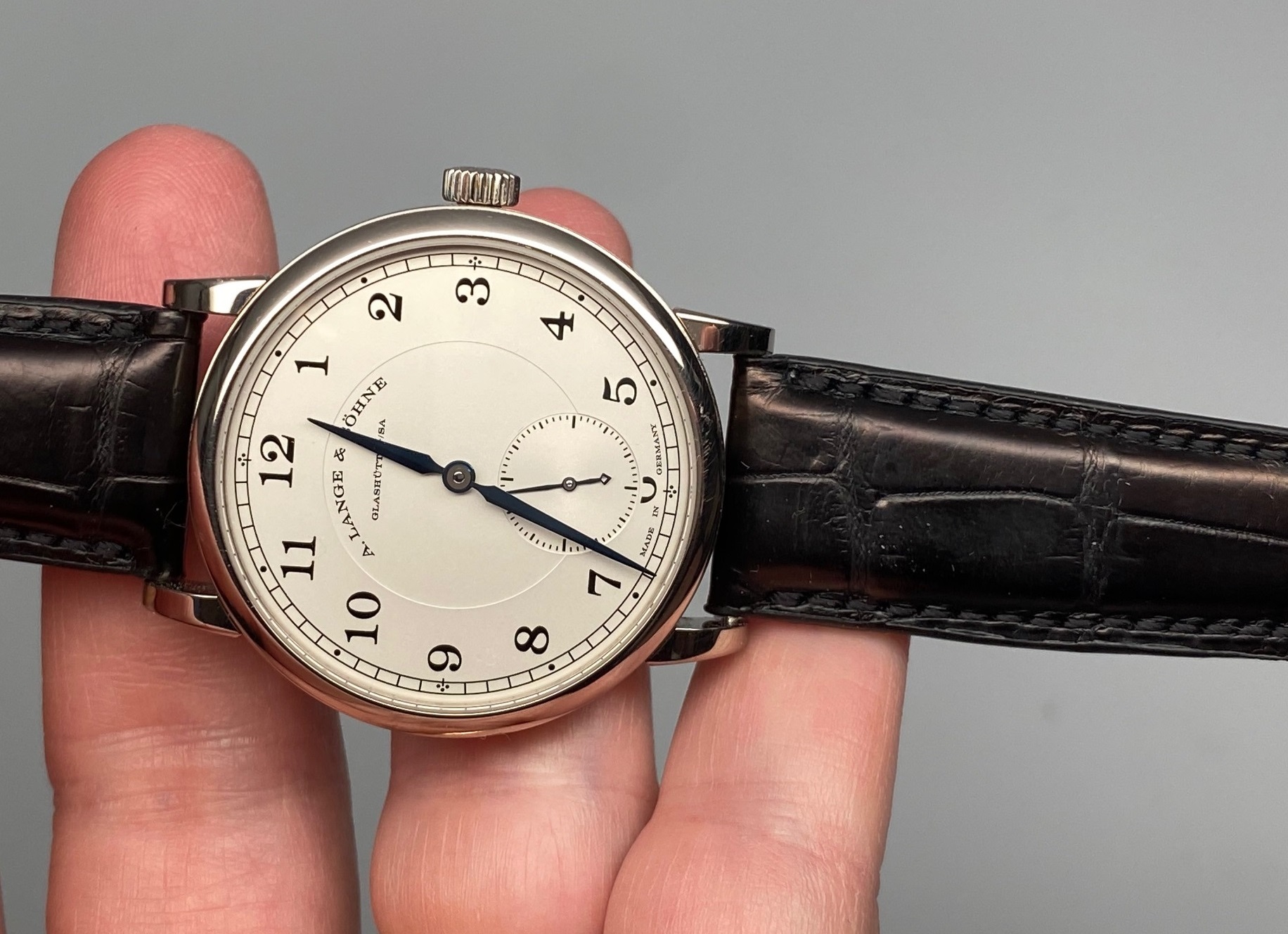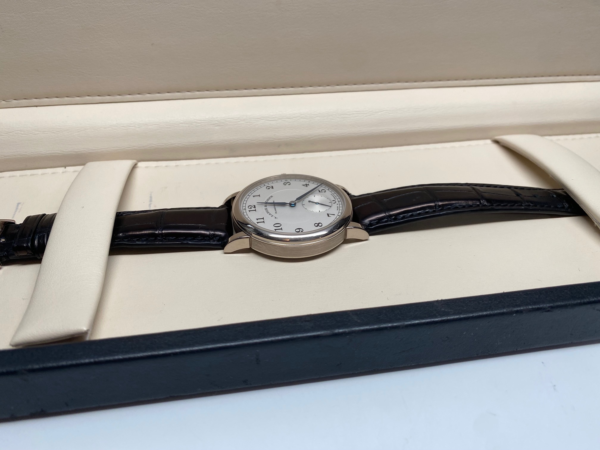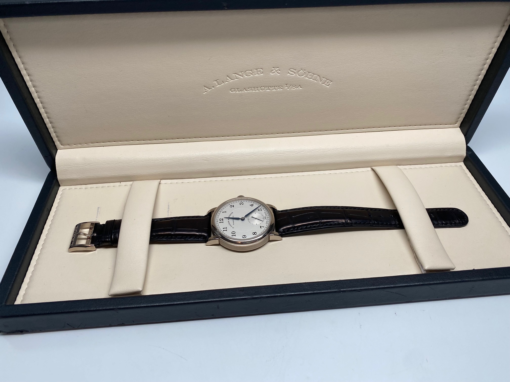 Current retail price is $27,300.00+tax. A. Lange is really starting to get the respect it deserves in the secondary market and prices are moving up fast. This is also not surprising as A. Lange & Sohne only produces around 5000 pieces a year!