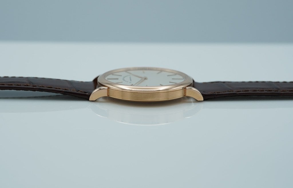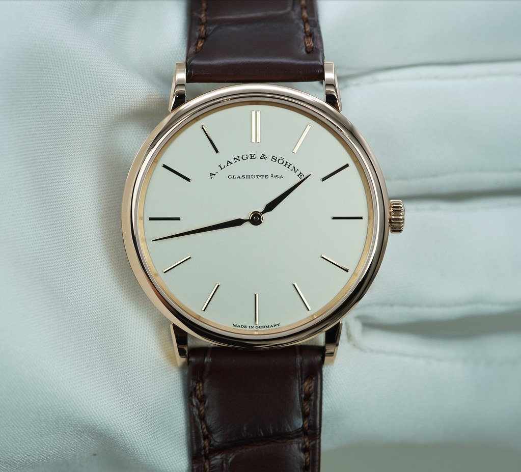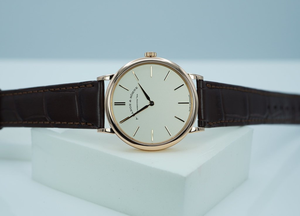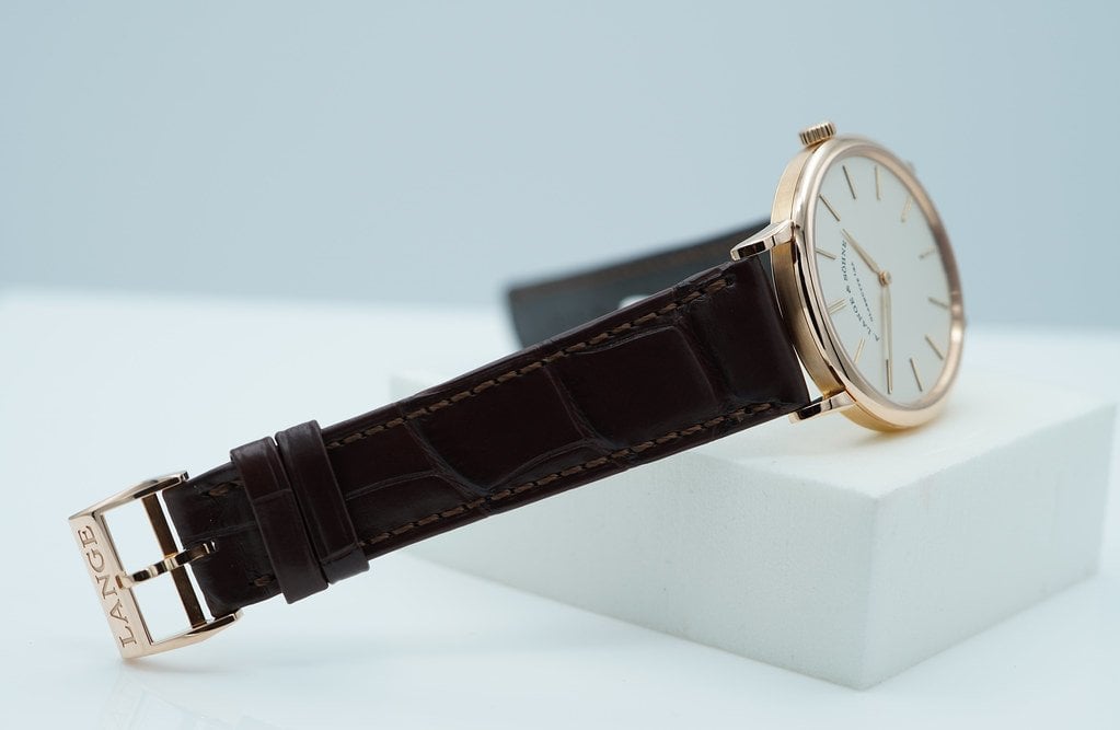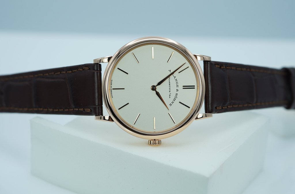 An Excellent Condition & Beautiful 2021 37mm A. Lange & Sohne Saxonia Thin 18K Rose Gold with Silver Dial, and Manual Winding Movement with 72 Hours Power Reserve. It’s on Lange Dark Brown Alligator Strap with 18K Rose Gold Pin Buckle. Purchased from A. Lange & Sohne USA Authorized Dealer in 01.2021. Watch Running Perfect with Non Issues. Complete Set