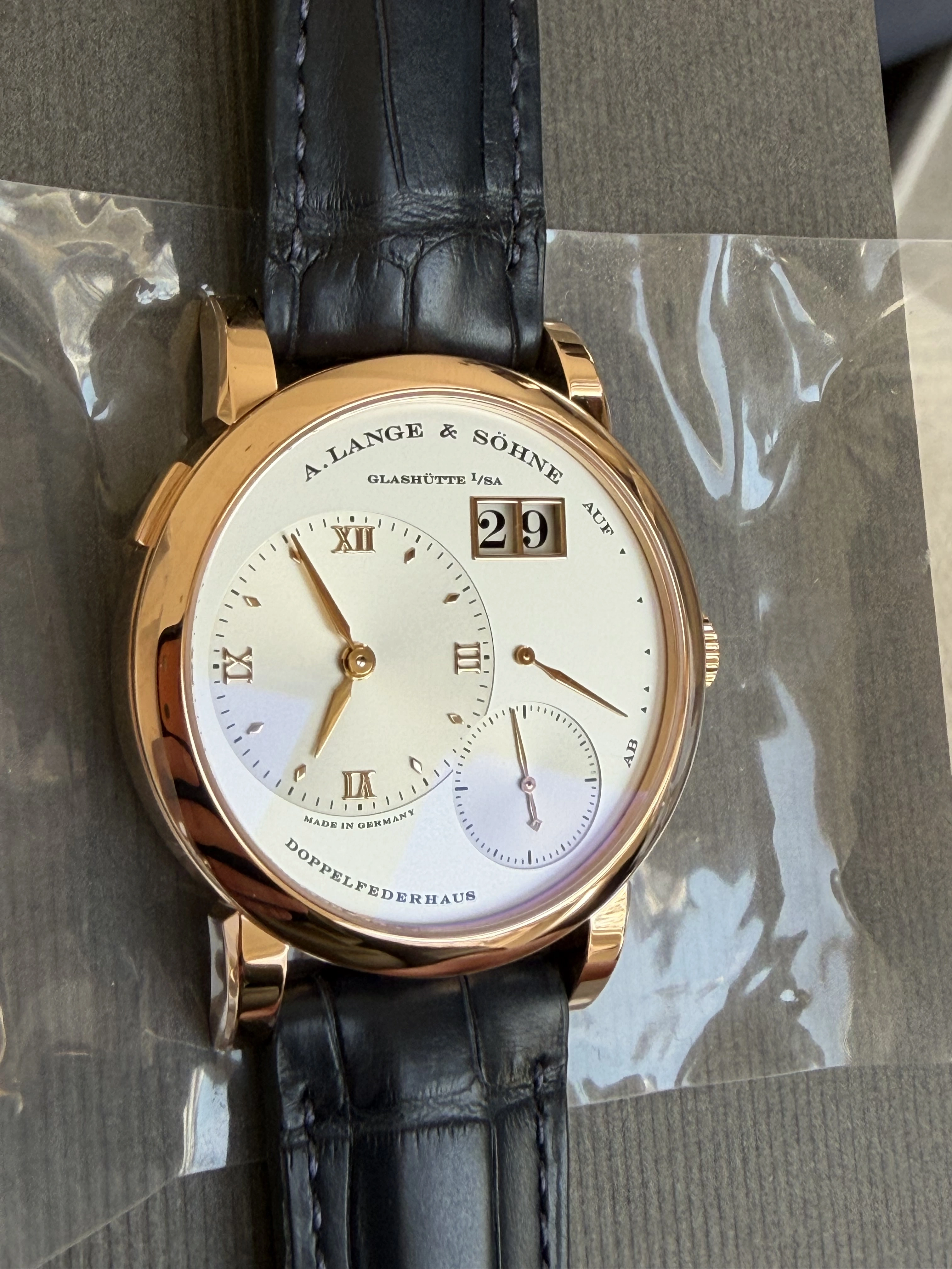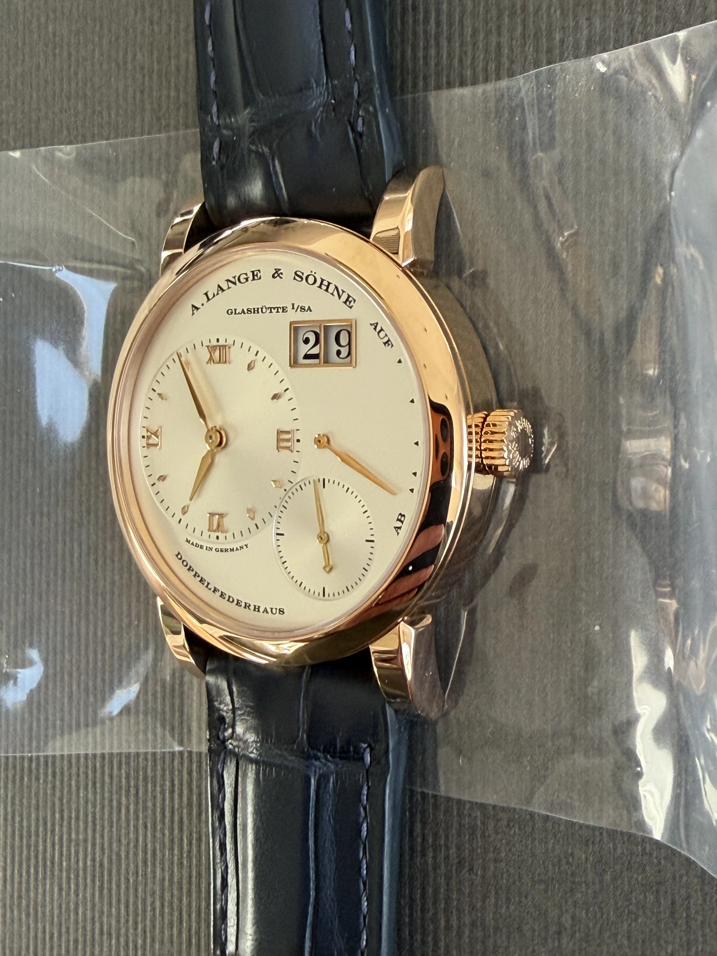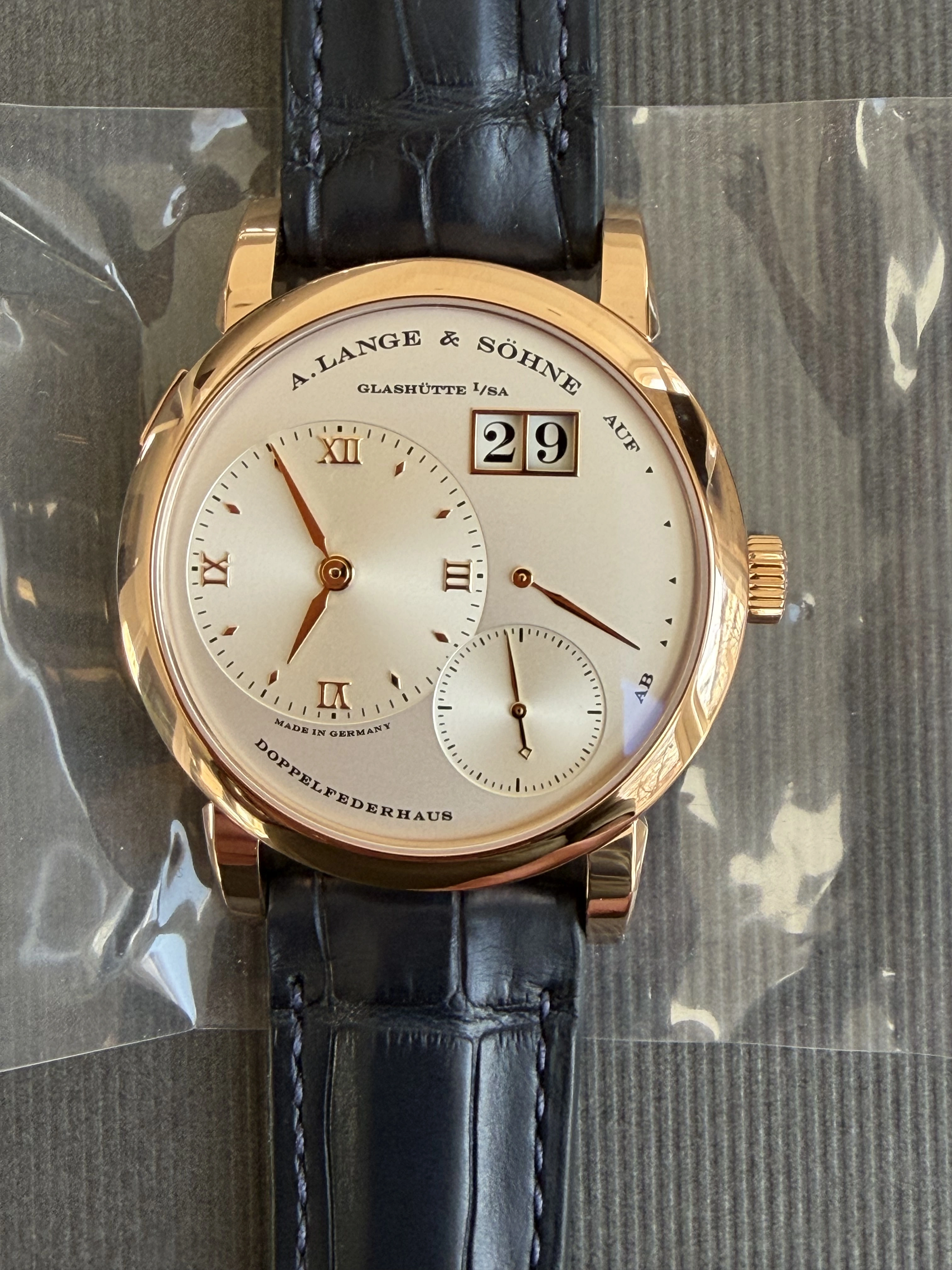 ·Up for sale is a Lange 1 in Rose Gold, Ref. 101.032, 1-owner watch purchased in October of 2014. It was sent to Lange for ordinary course service in 2025 and hasn’t been worn since. Caliber L901.0. The protective plastic Lange affixed at service was only removed to take these photos, the watch is in gorgeous condition.