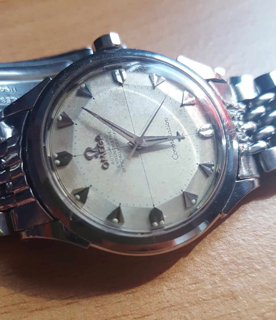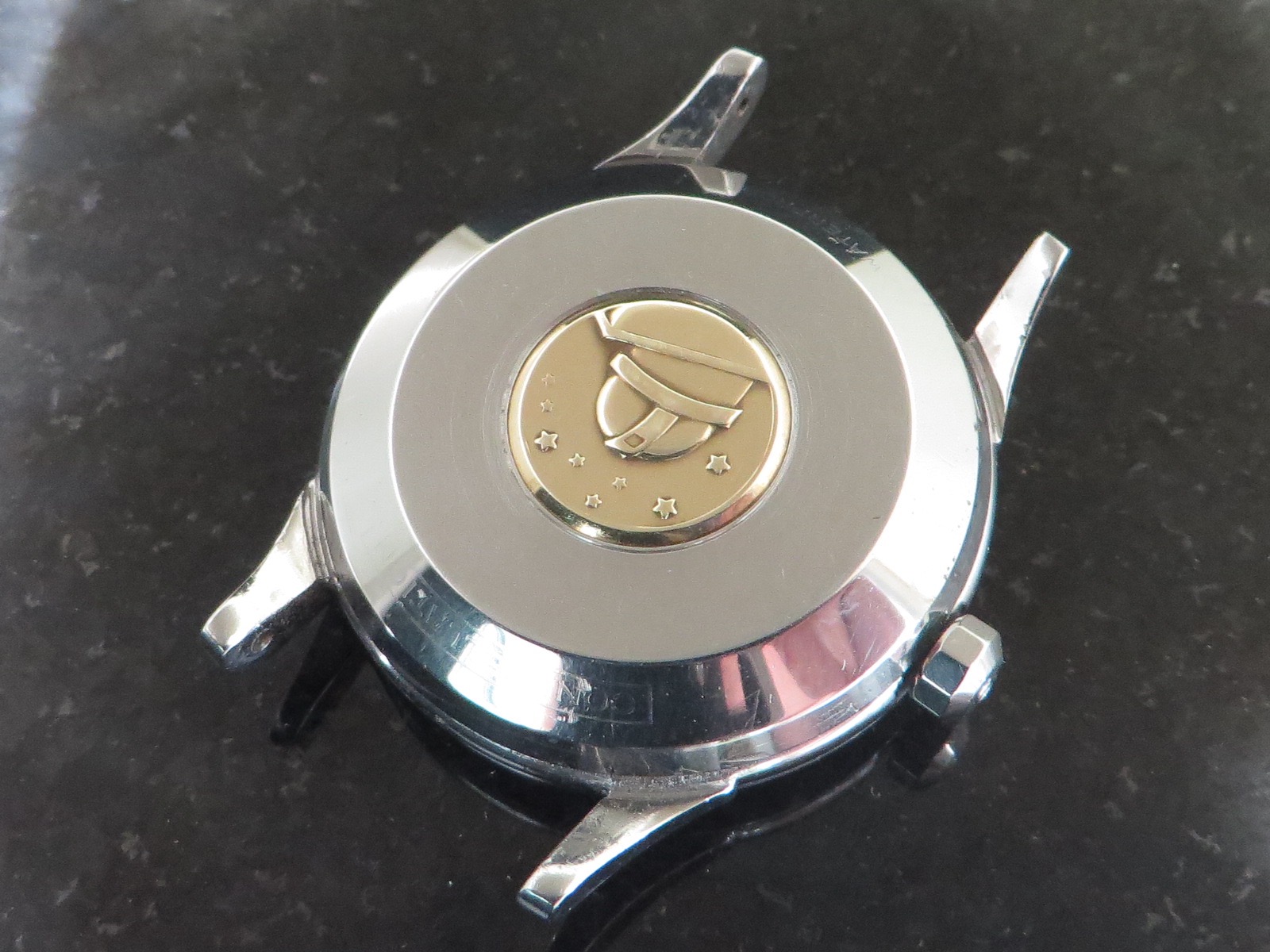 Medallion: It looks different from all other medallions I've seen on fifties Constellation. If I were to make a guess, it could have been cut from a (much) later Constellation caseback (possibly a ladies version?) and placed in the recess where the original was... This is purely speculation!