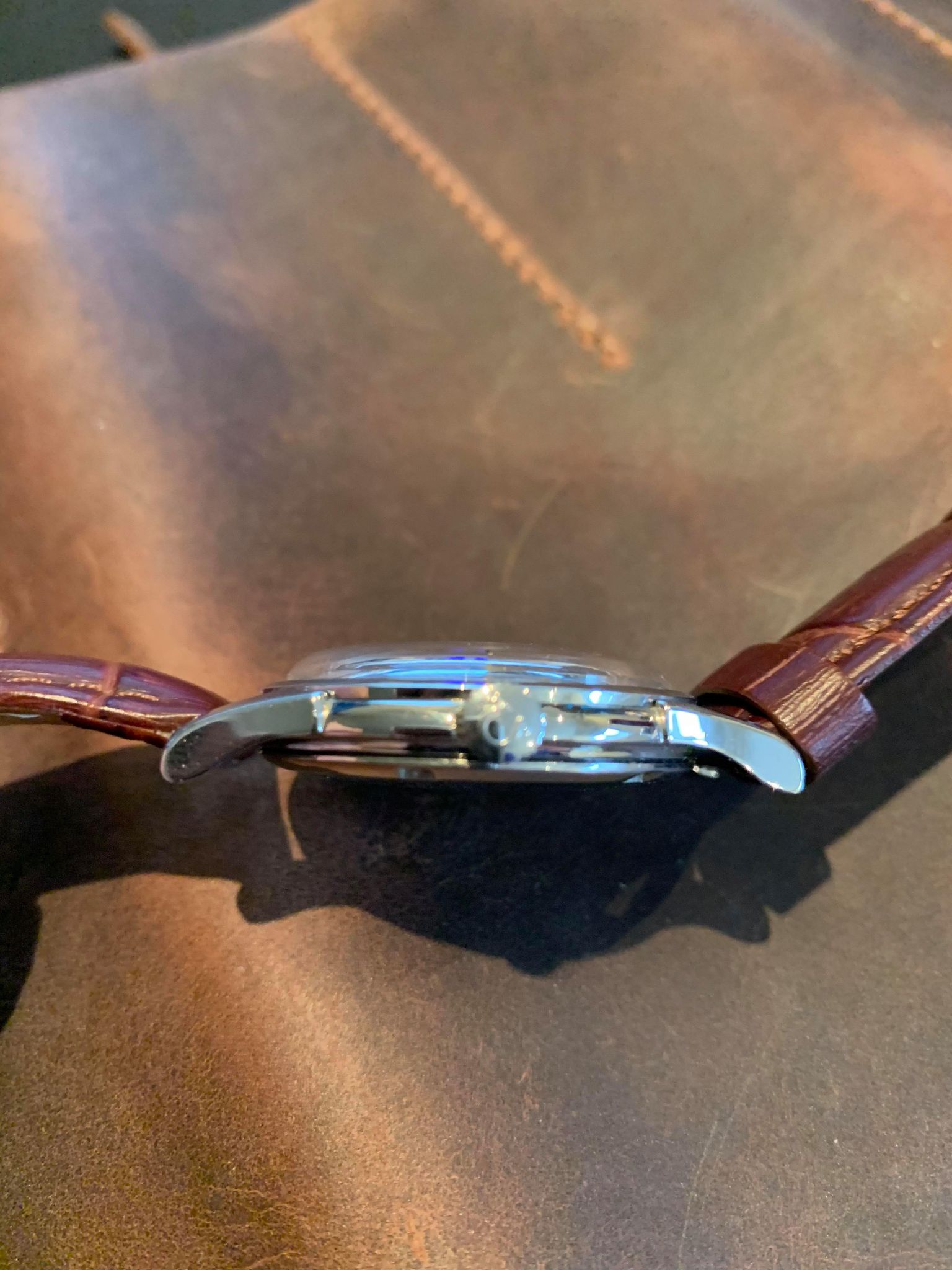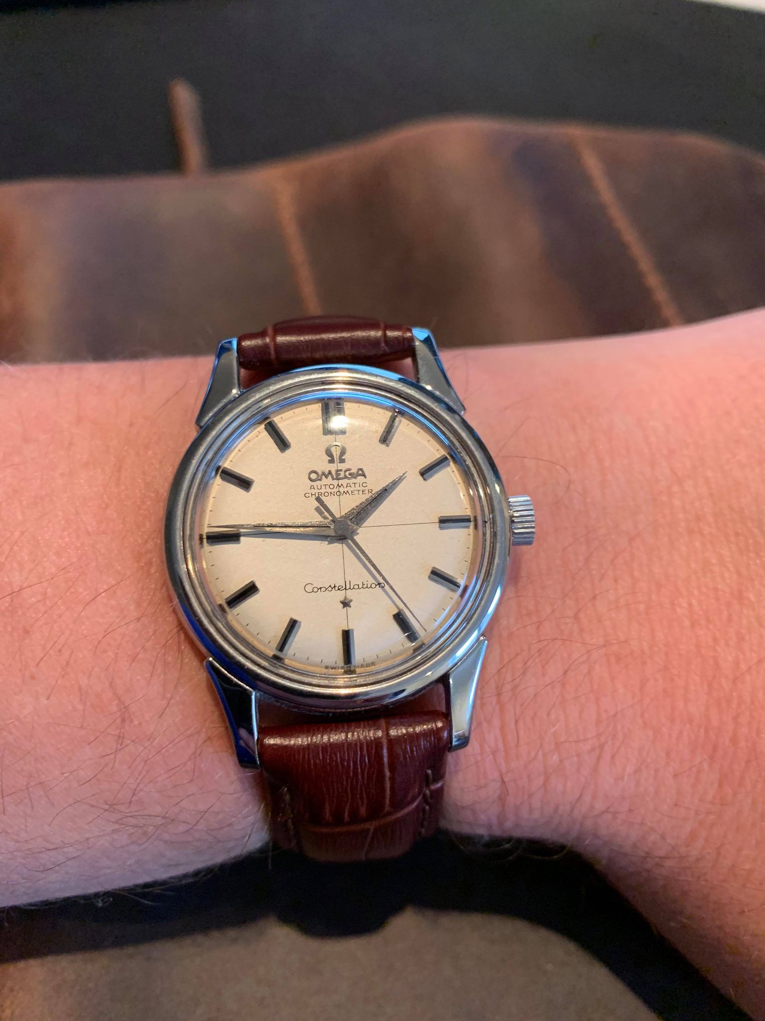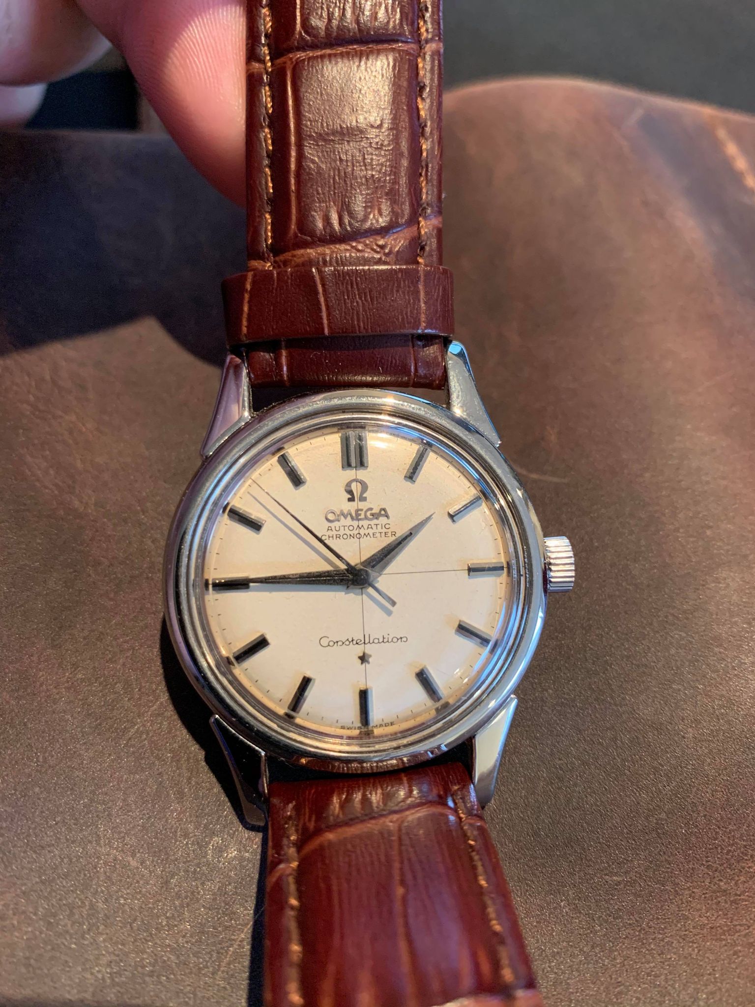 I am updating my home insurance policy and will be adding my watches to the rider. My question is what is the rough value I should be putting on this guy? The dial is just lovely, but I know the crown is a replacement (obviously) and the previous owner unfortunately gave it a polish. I dont have any shots w the caseback off, but I am hoping some folks here might be able to narrow the rough year down by the applied metal and the cross hatch.