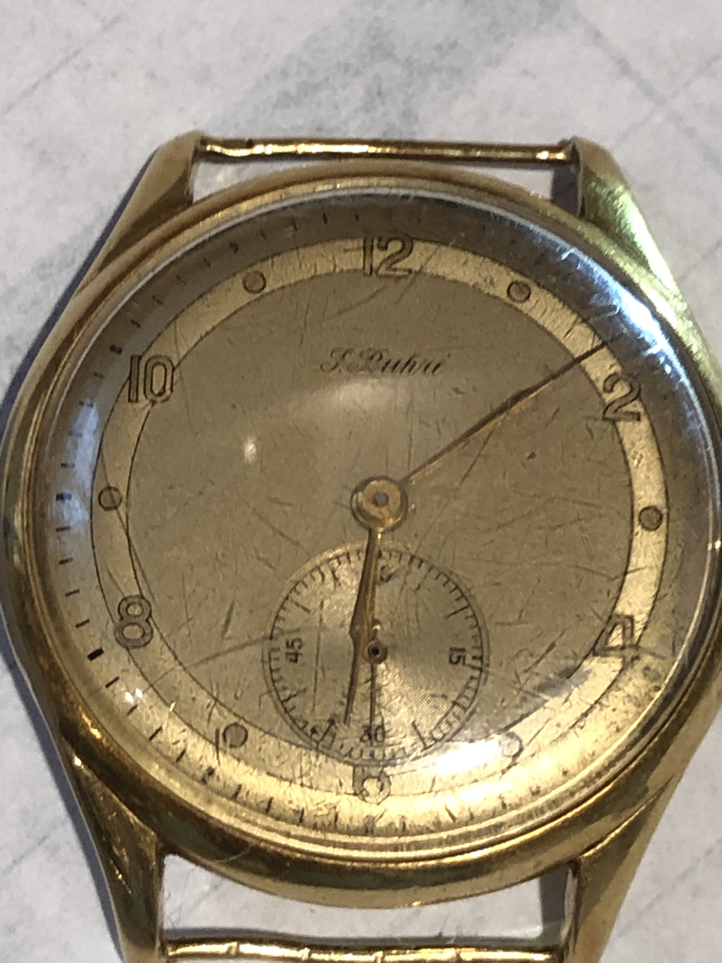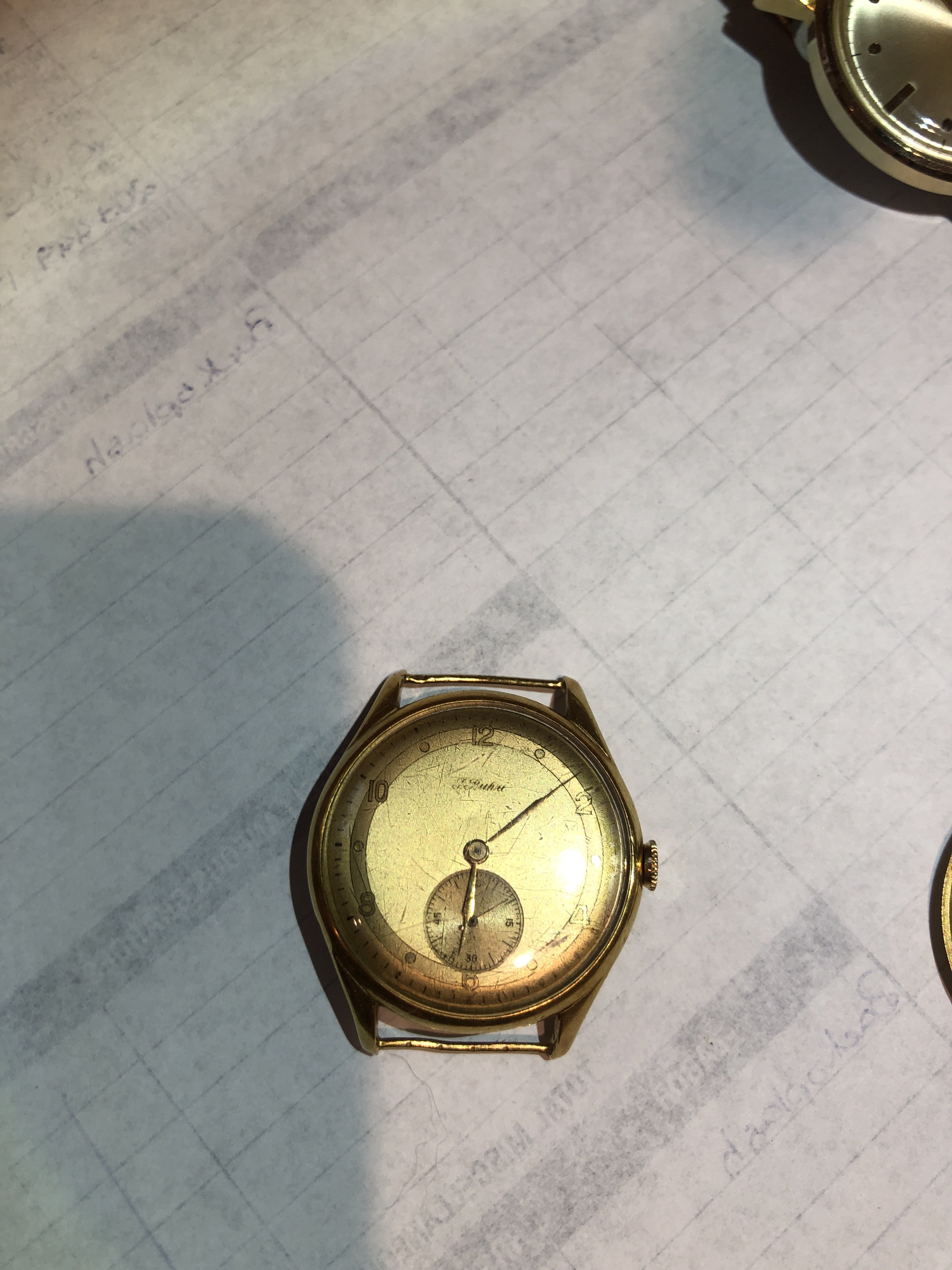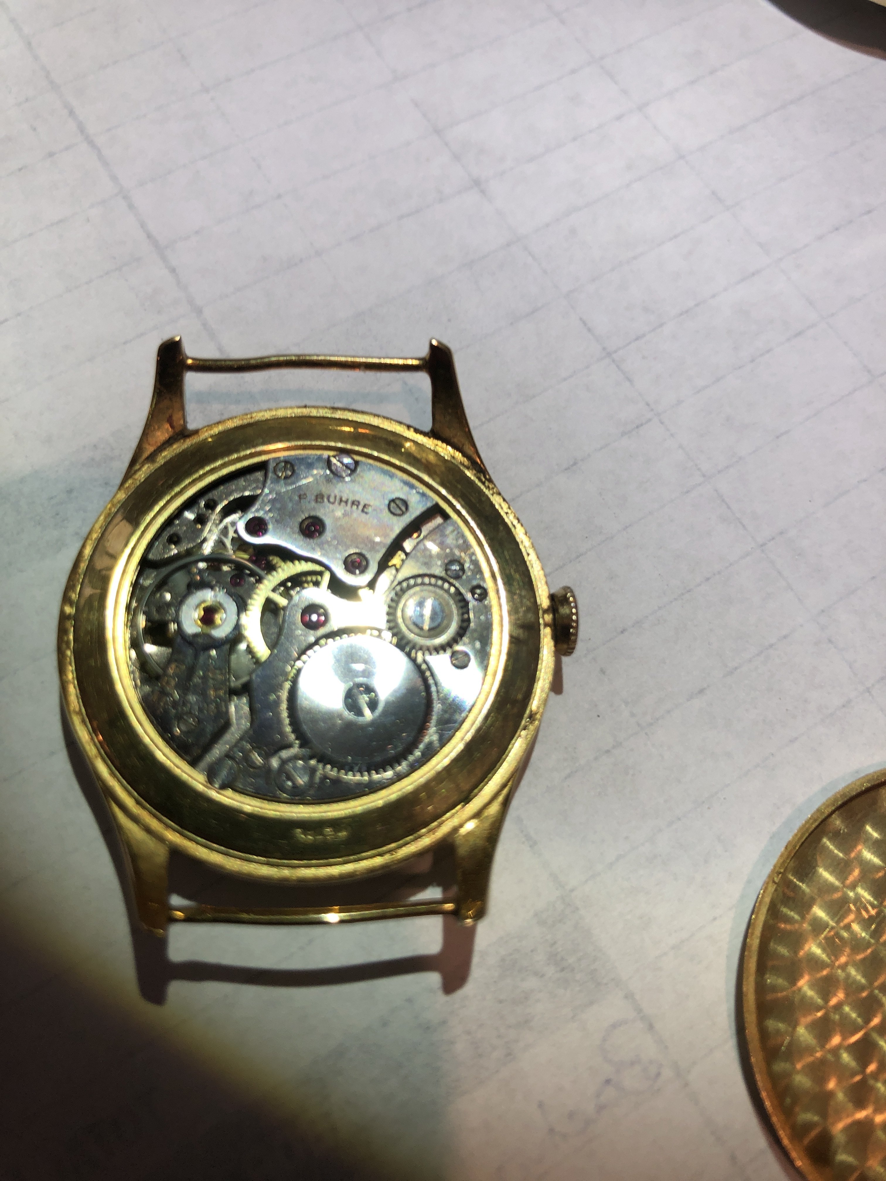 ·Well I stopped by this little junk stop I’ve gotten a couple watches from, the dude remembered me and took out a box of mostly junk watches for me to look through. Being that he took the time to do that for me plus bantering with him for a while I felt compelled to purchase something just to stay in good terms. So I picked up a timex electric, just because, and this older watch which I really liked the dial and the sub seconds. I spent a whopping 15 bucks for the pair. The back of the case on the older watch got damaged by a shameful plastic NATO someone dared attach to it. So I get home and open the case find an 18k hallmark and it’s made by P Buhré. Apparently a one time prestigious brand which I never heard of. Anyone know much about these?