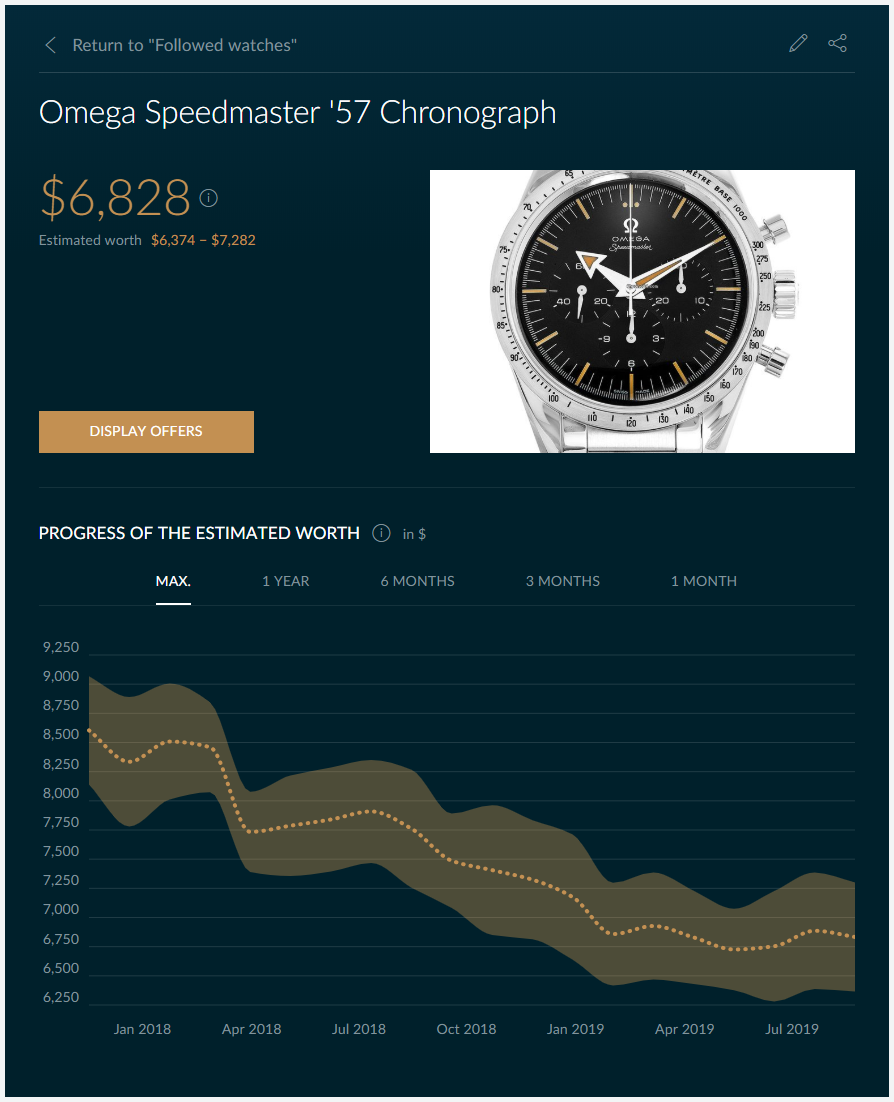 Chrono24 has a feature that lets you track watch prices over time which I find helpful. Here is the watch: