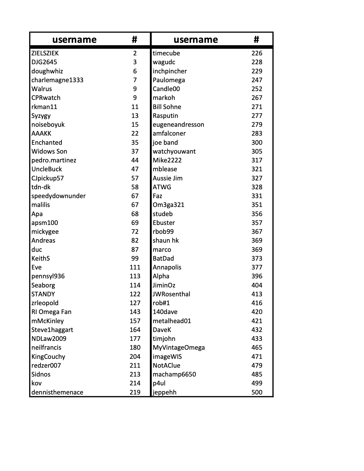 Posts 614 Likes 836 timecube ·May 3, 2020 KeithS This is great! 99 for me please. And in case people are looking for an open number, here is the list as it stands right now. Also, @raitosan is #1
