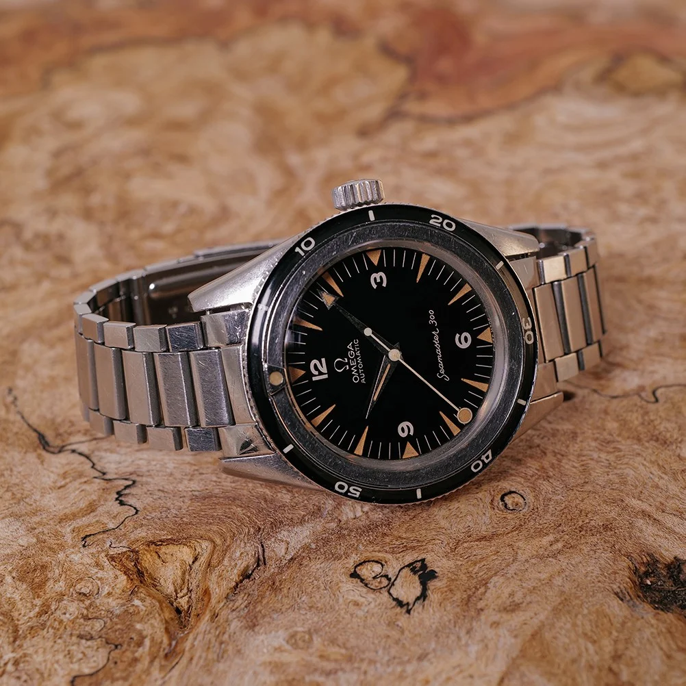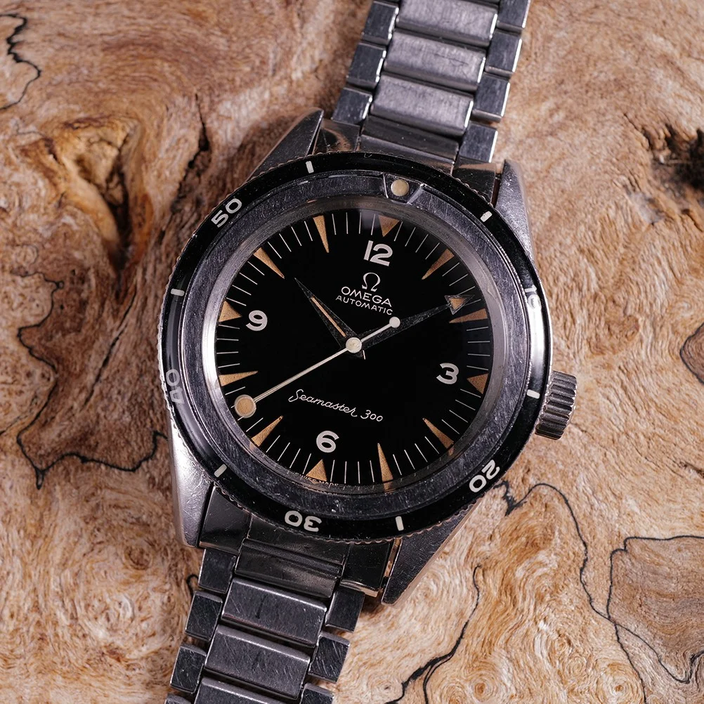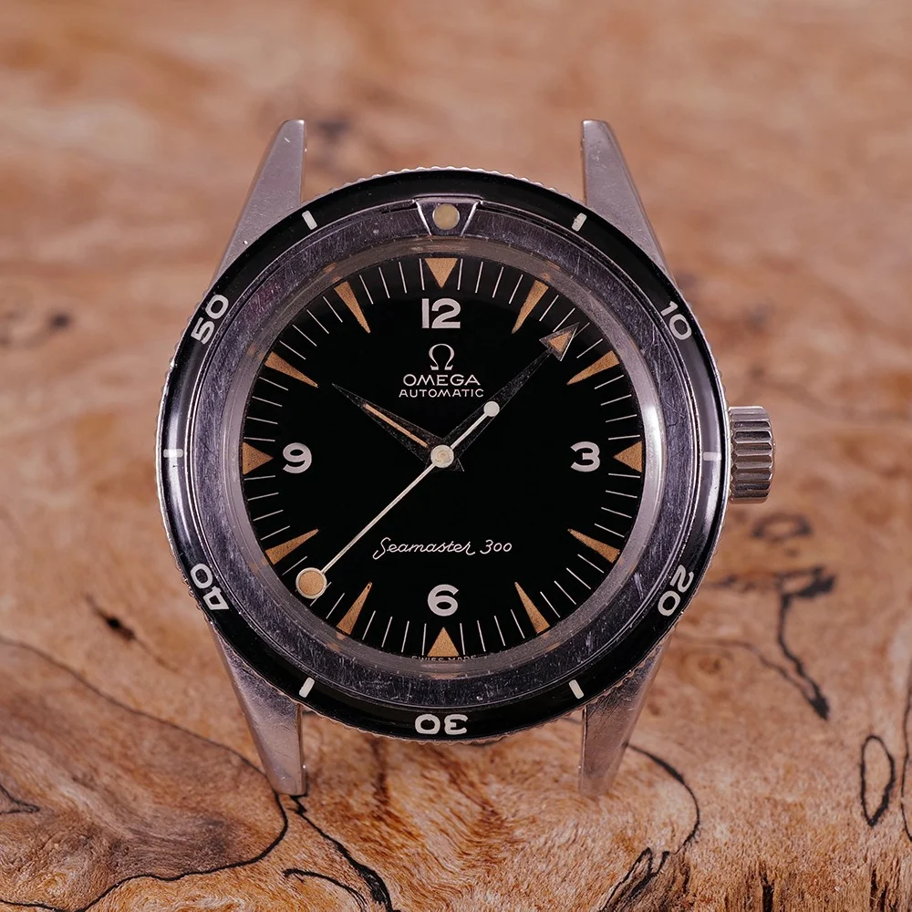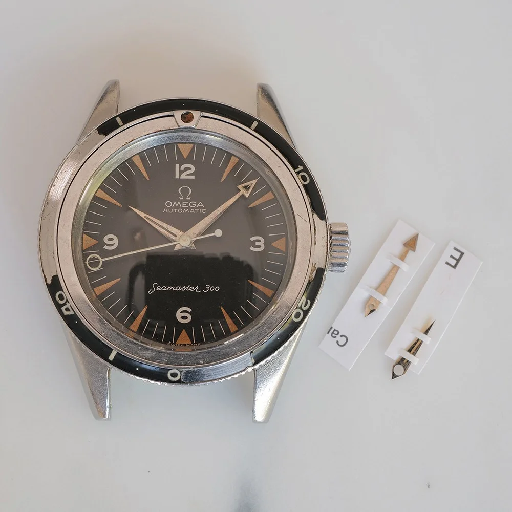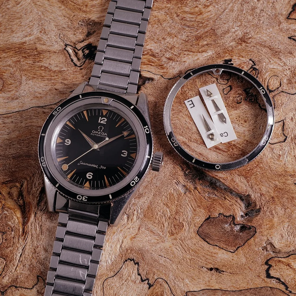 Notes: This beautiful Seamaster 300 came to me with a damaged original bezel, relumed hands, and a Lollipop hand with missing lume. This CK2913-7 was tastefully restored with only the best, hard to find (and expensive) 100% original and correct parts (bezel & hands). This is a rare opportunity to own a beautiful vintage CK2913-7 "Lollipop" Seamaster 300 with original period unrestored bezel. Stunning patina. Recently serviced and ready to be worn and enjoyed! The original bezel & hands will be included with the watch.
