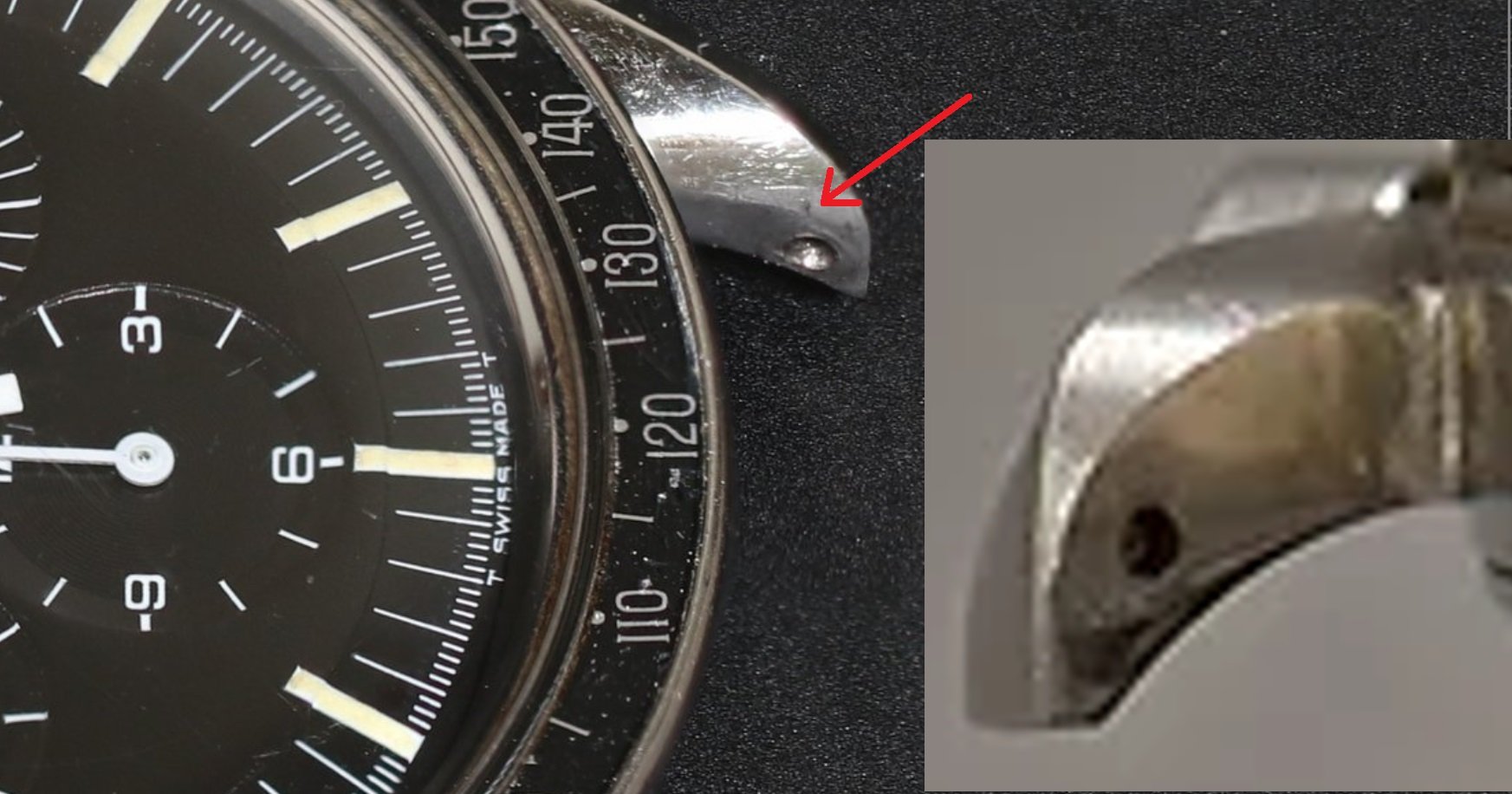 When I refer to the inner lug, I am referring to the area pdxleaf highlighted above. I would expect to see a clear delineation between where the brushed surface of the upper lug transitions into the inside wall of the lug (where the spring bar hole is). In the image below, the red arrow shows where one would expect to see that clean delineating line (some examples I've seen are not that sharp/clean, but the line is is usually visible on a watch that hasn't been overly messed with). I've included an image on the right (credit to @ndgal and his excellent study on Speedmaster case variants) that clearly shows the "line" I am referring to. If you don't see that line at all, you know the watch has been (over) polished.
