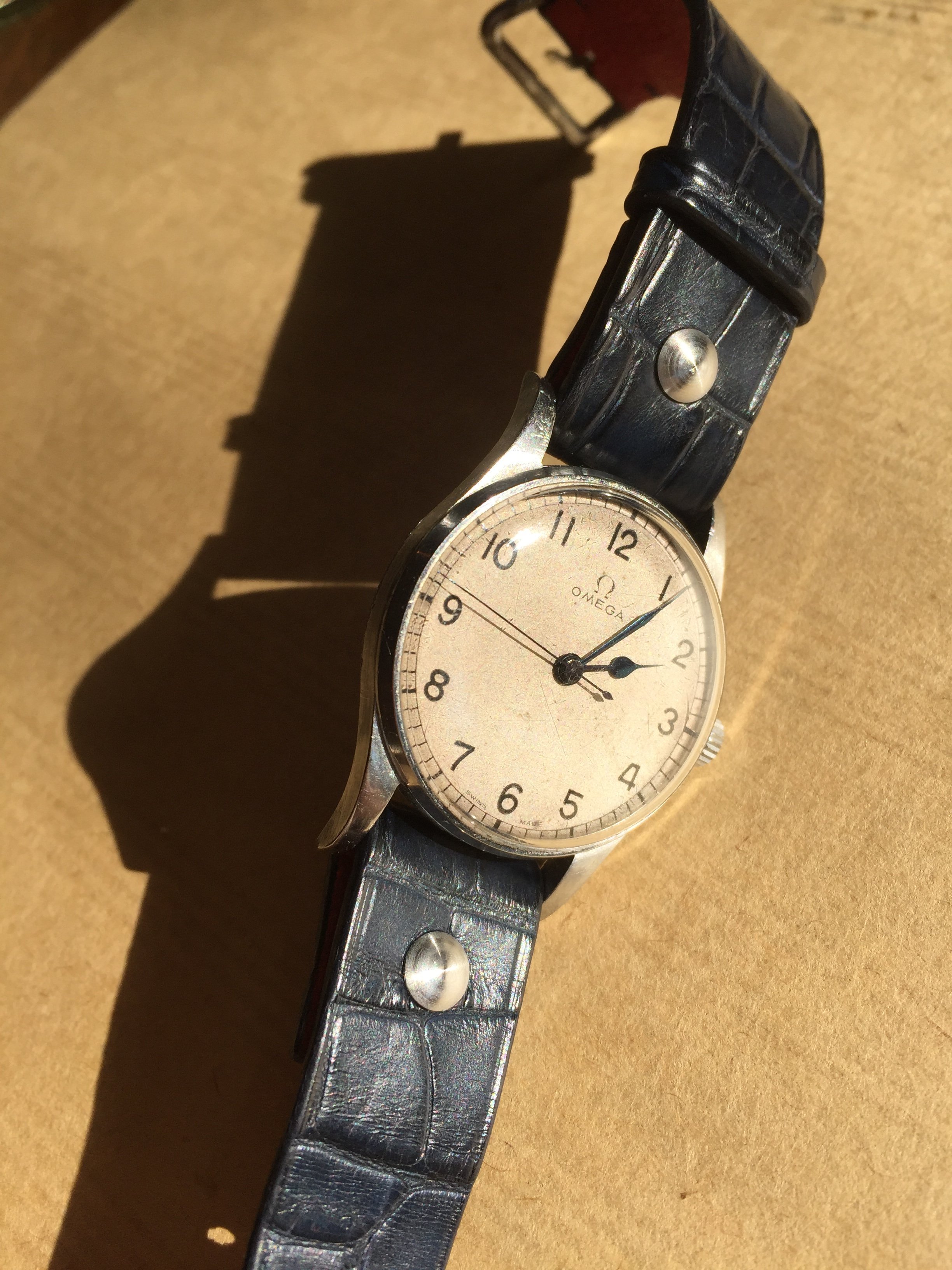 Jean Rousseau does beautiful and used to be reasonably priced croc straps all things considered, I must admit I’m a big fan— below see my navy matte croc strap on a 1942 Royal Air Force issued watch.