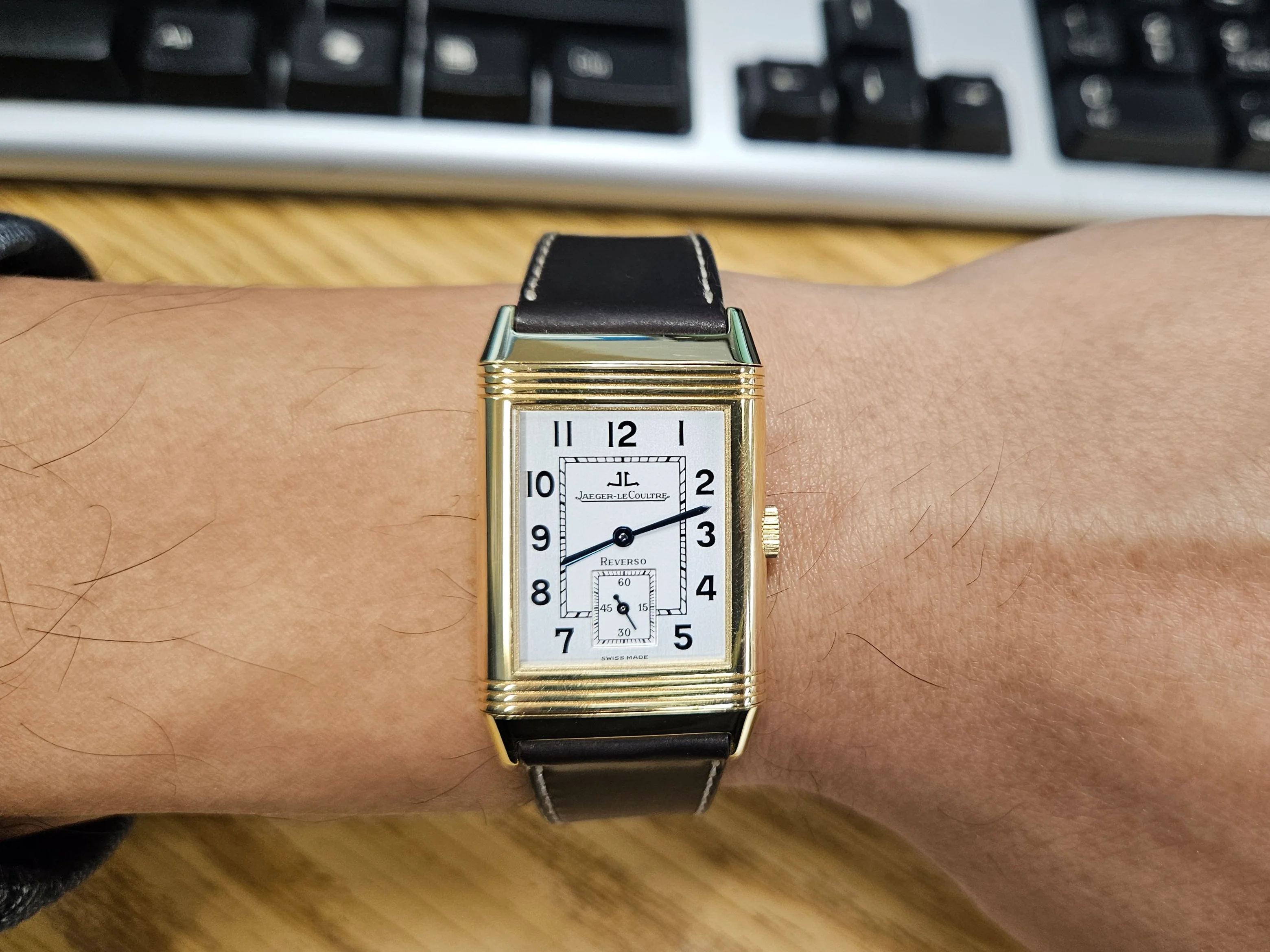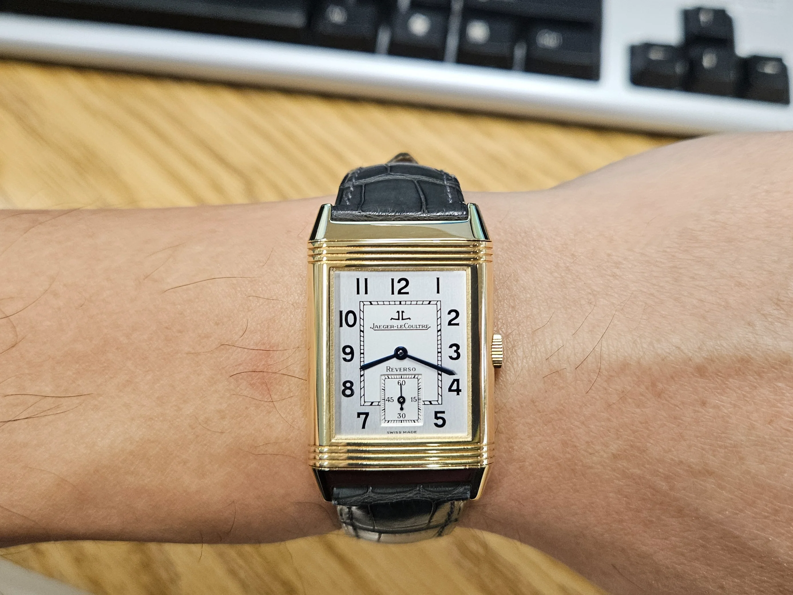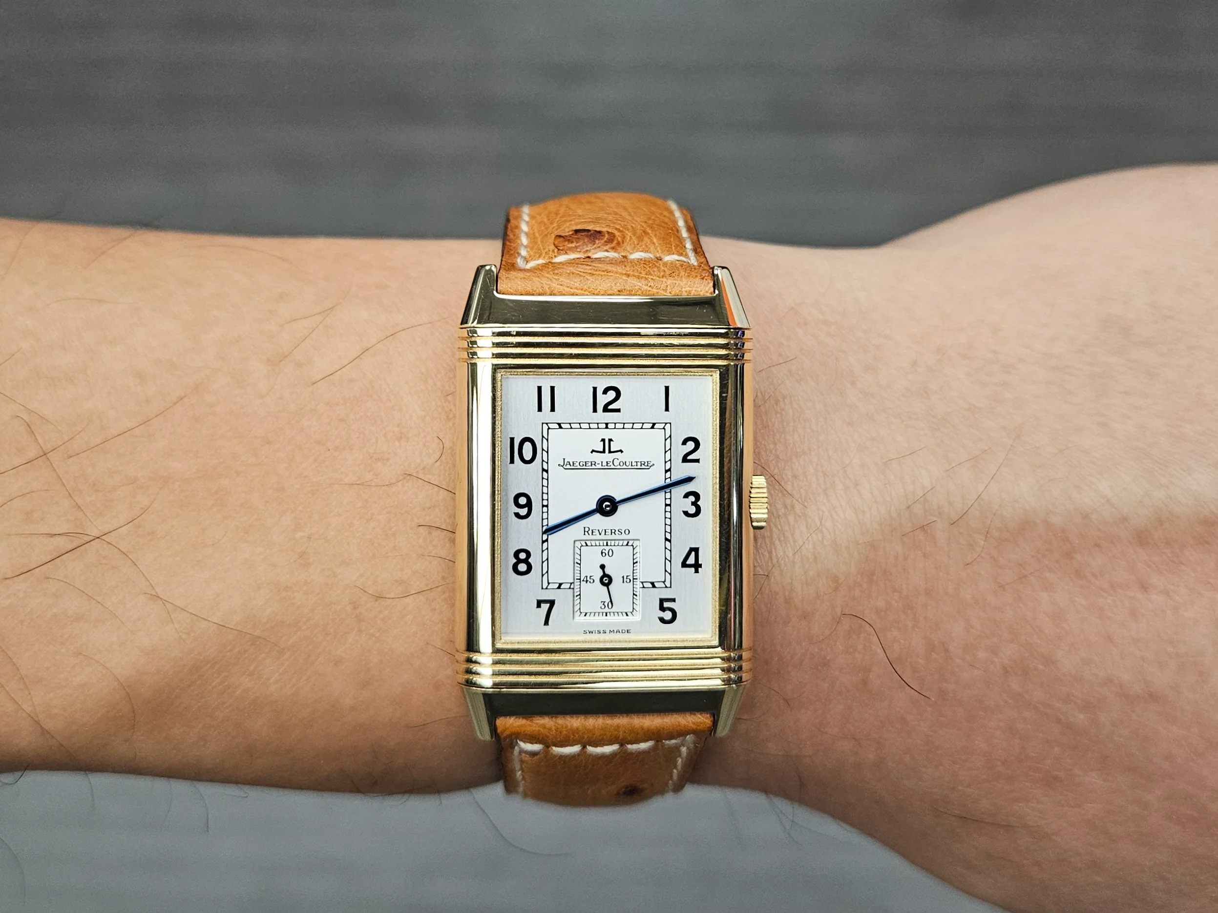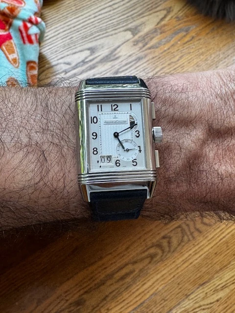 Bringing up this thread again cause I need OF opinions. Grey crocodile on "dress" watch to dress it down for more everyday wear, or did it dress it up? Had in on a brown cordovan strap before. Disliked the original JLC tan ostrich. Reversos ARE strap monsters.