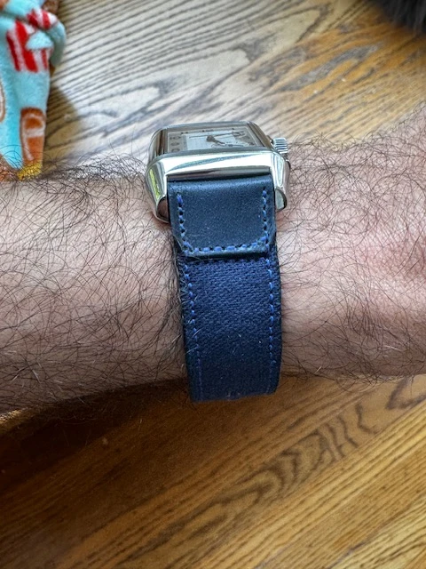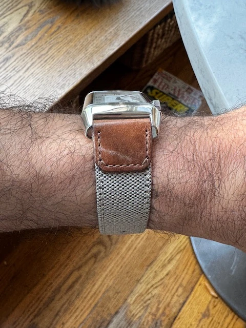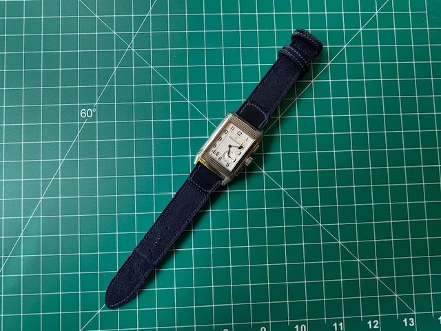 If @bradurani were still around, he would be losing it on this one. This is a pretentious, snobby, old fashioned watch collectors nightmare. You can't dress down a Reverso, it is way to beautiful to wear canvas. 🙂
