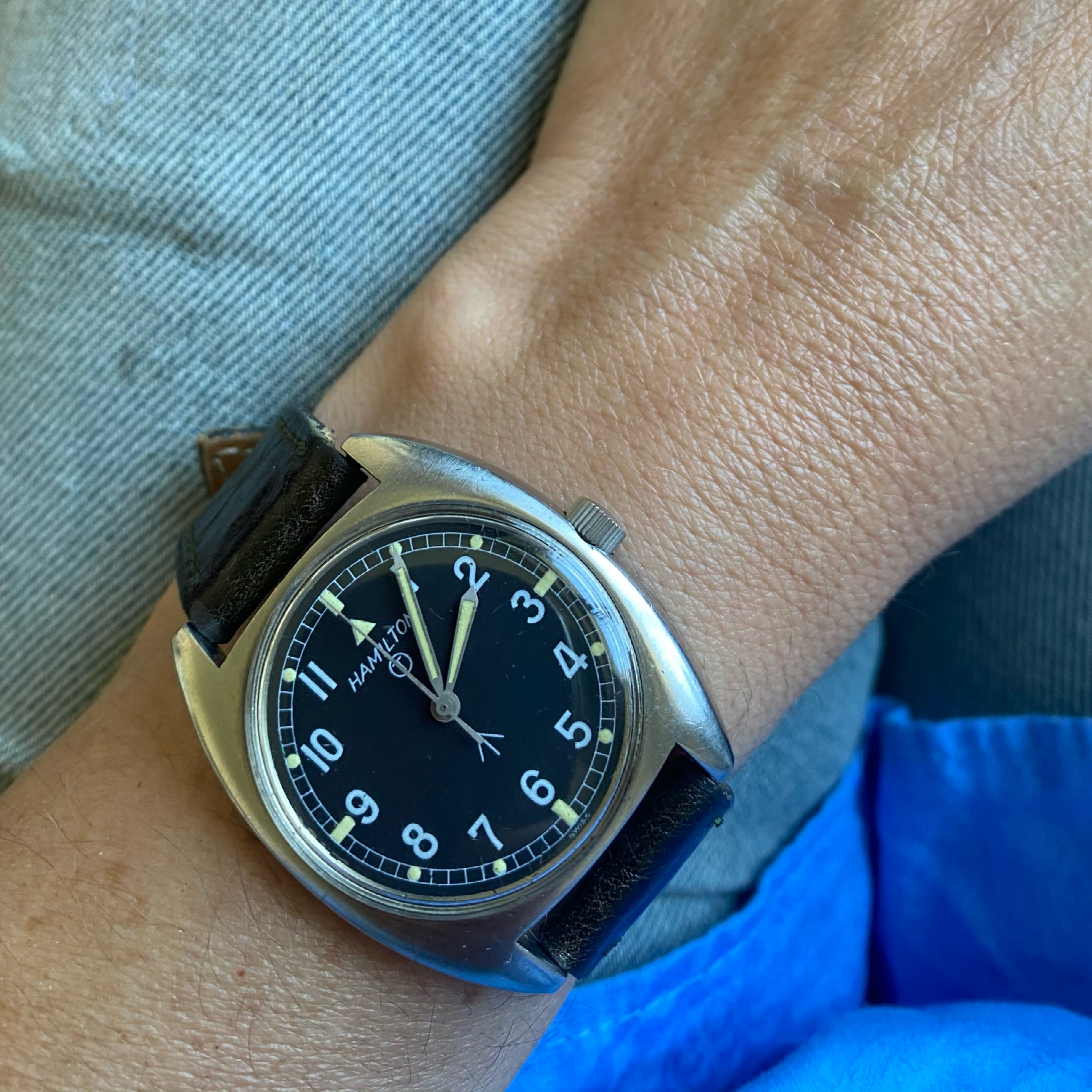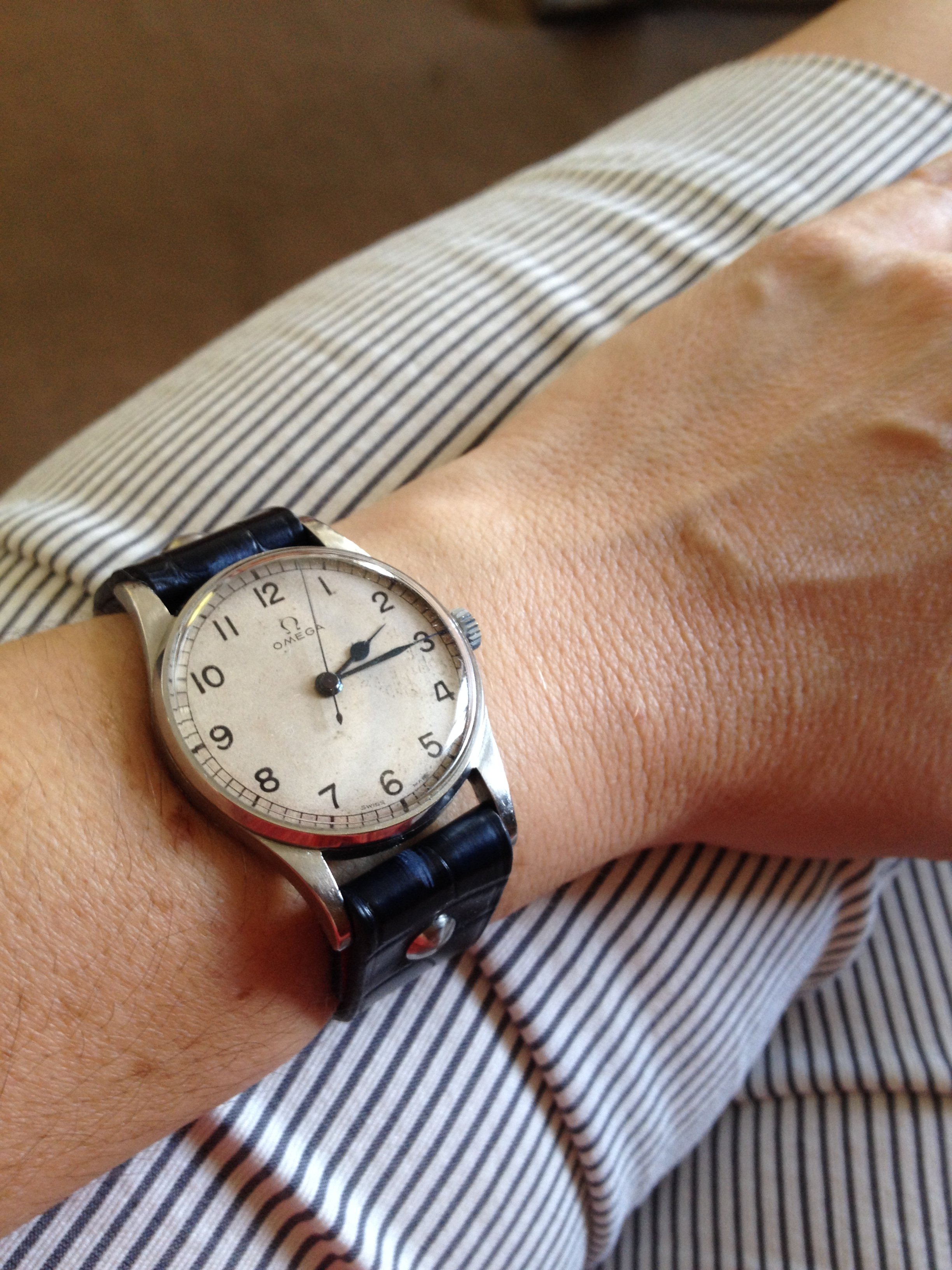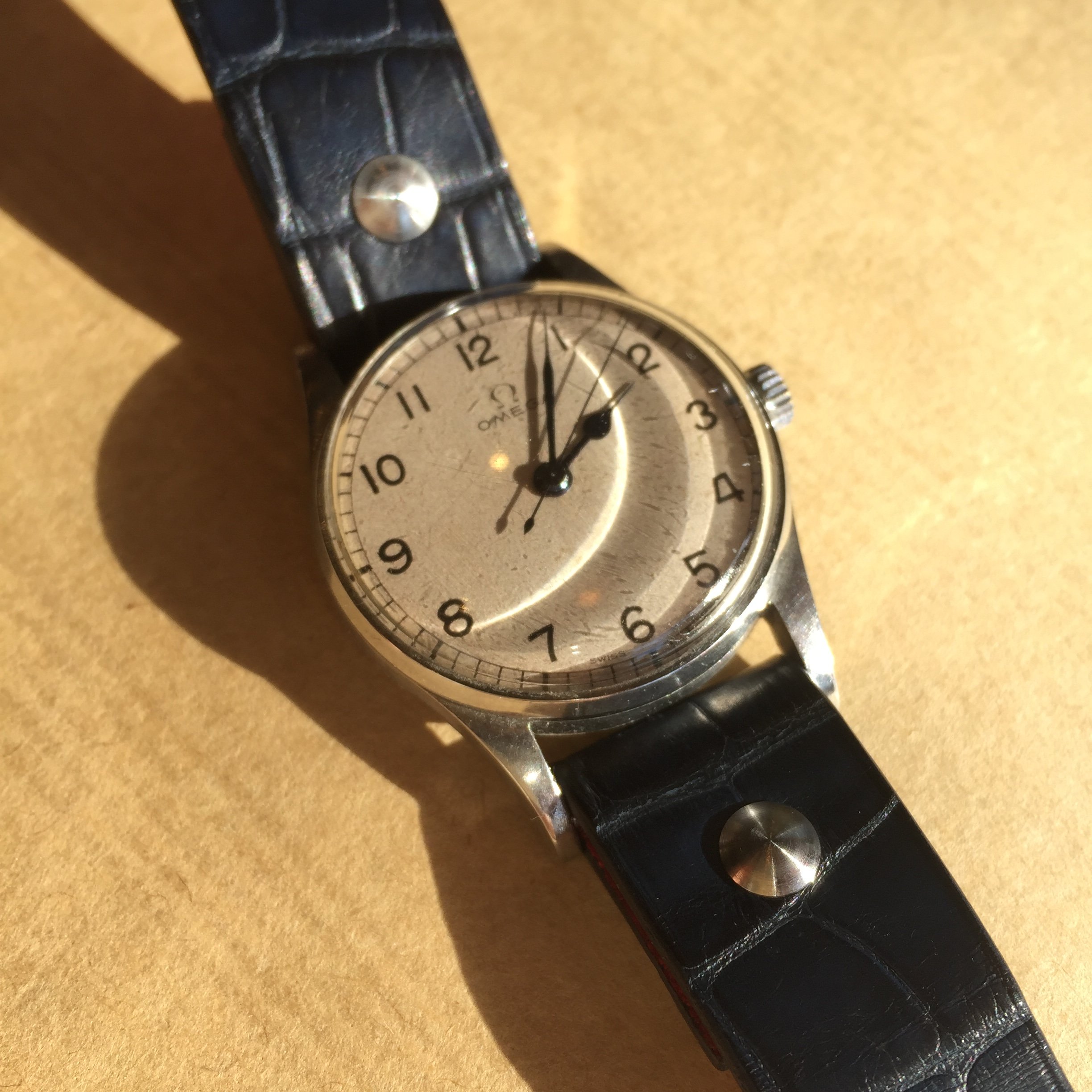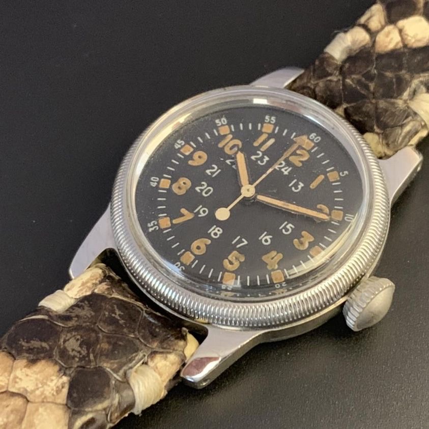 - bona fide military watches also on reptile straps- the Royal Air Force issued watch from 1942 on matte blue alligator, and the Korean war era Waltham A17 on python— two more reptiles bit the dust;