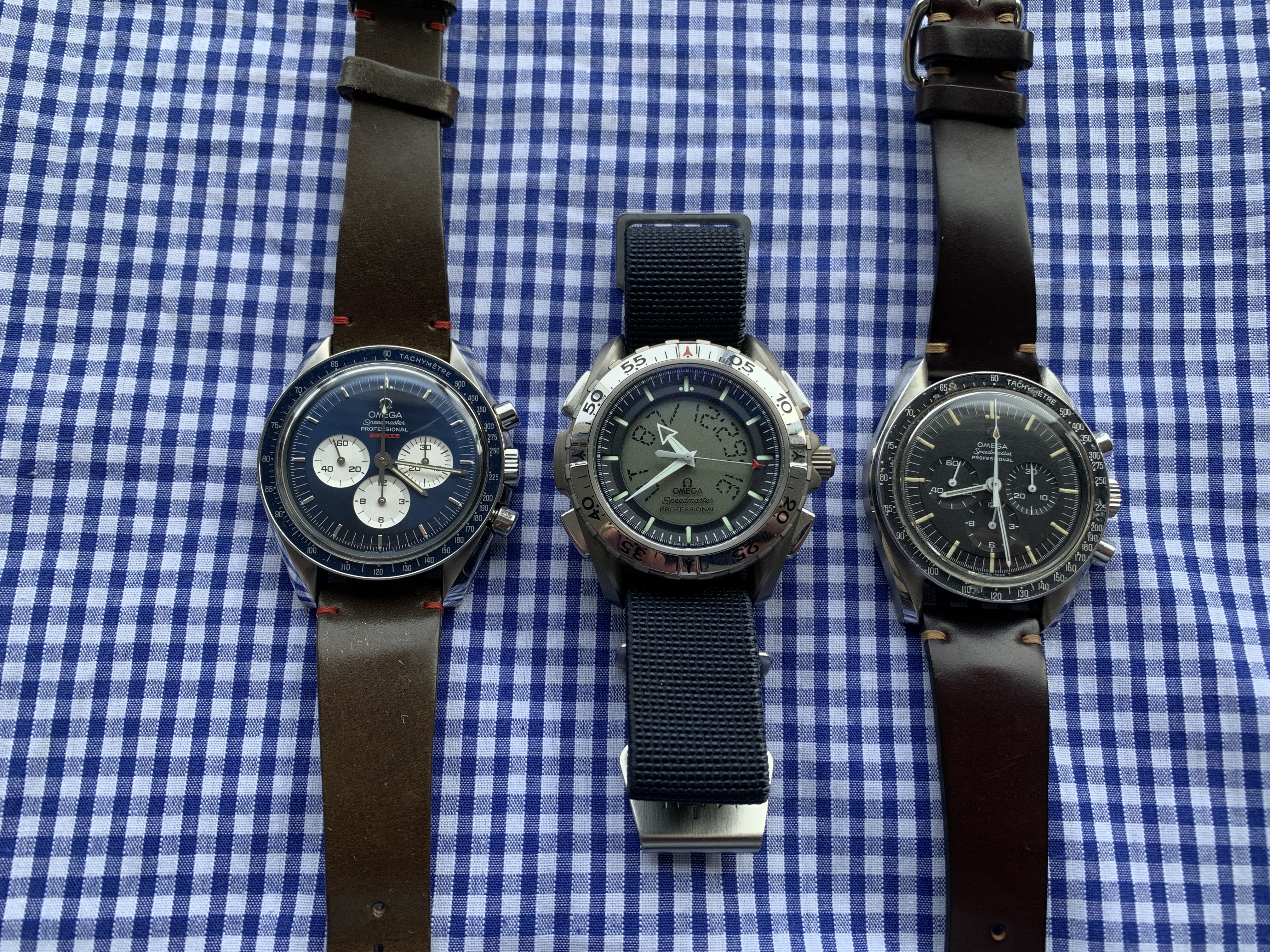 That panda pairing is inspired! Triple bonus points for matching the shape of the perforations to the subdials (also just plain great watch). The diver should be on rubber, however. The Seamaster is a tough one, because while it's definitely not a dress watch, it's a stretch to call it a sports watch. I guess peccary works, but I don't like the shade. Also, is it straight cut? It should be tapered
