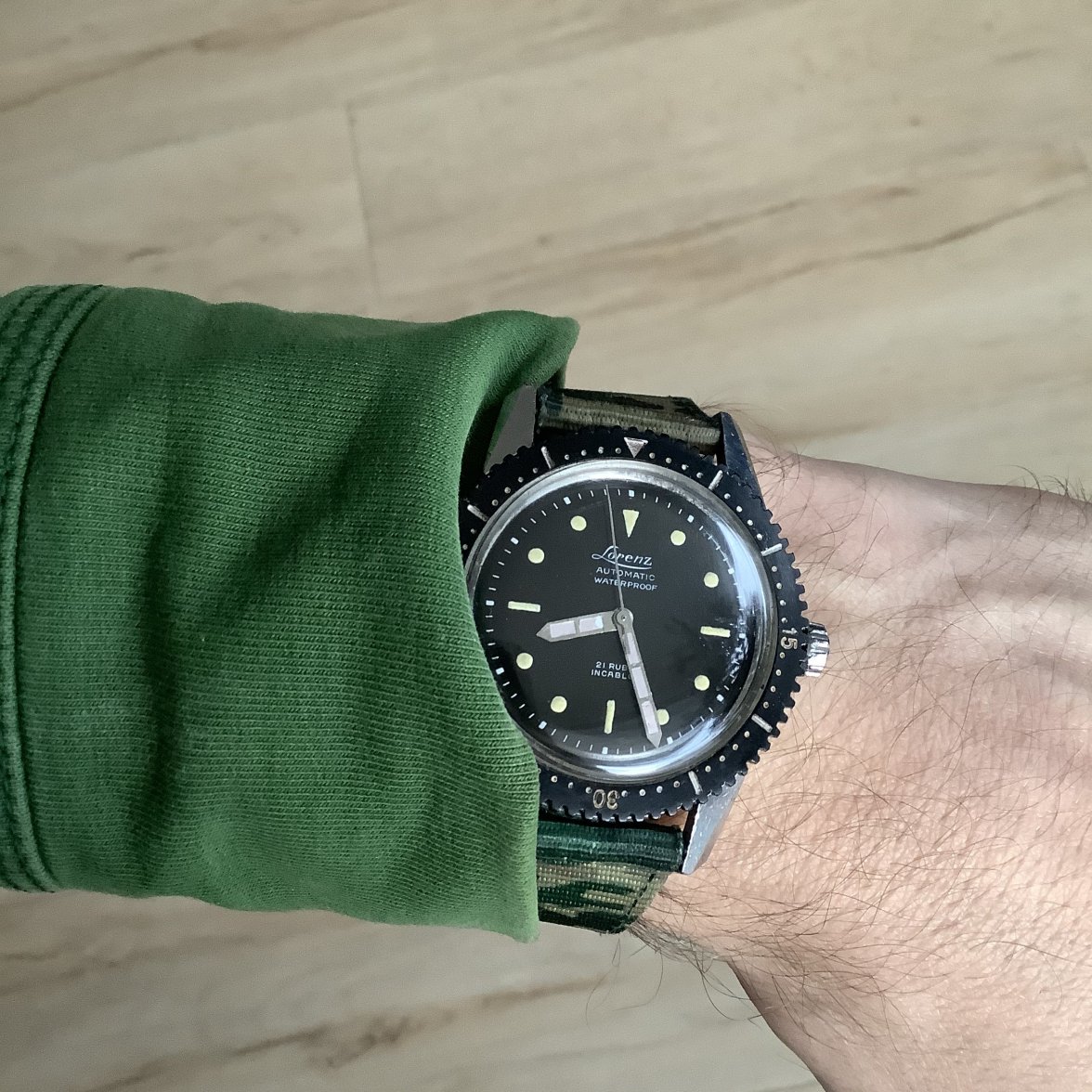 Not my watch or photo (my regular civilian one is still a work in progress), but these absolutely should be worn on velcro.