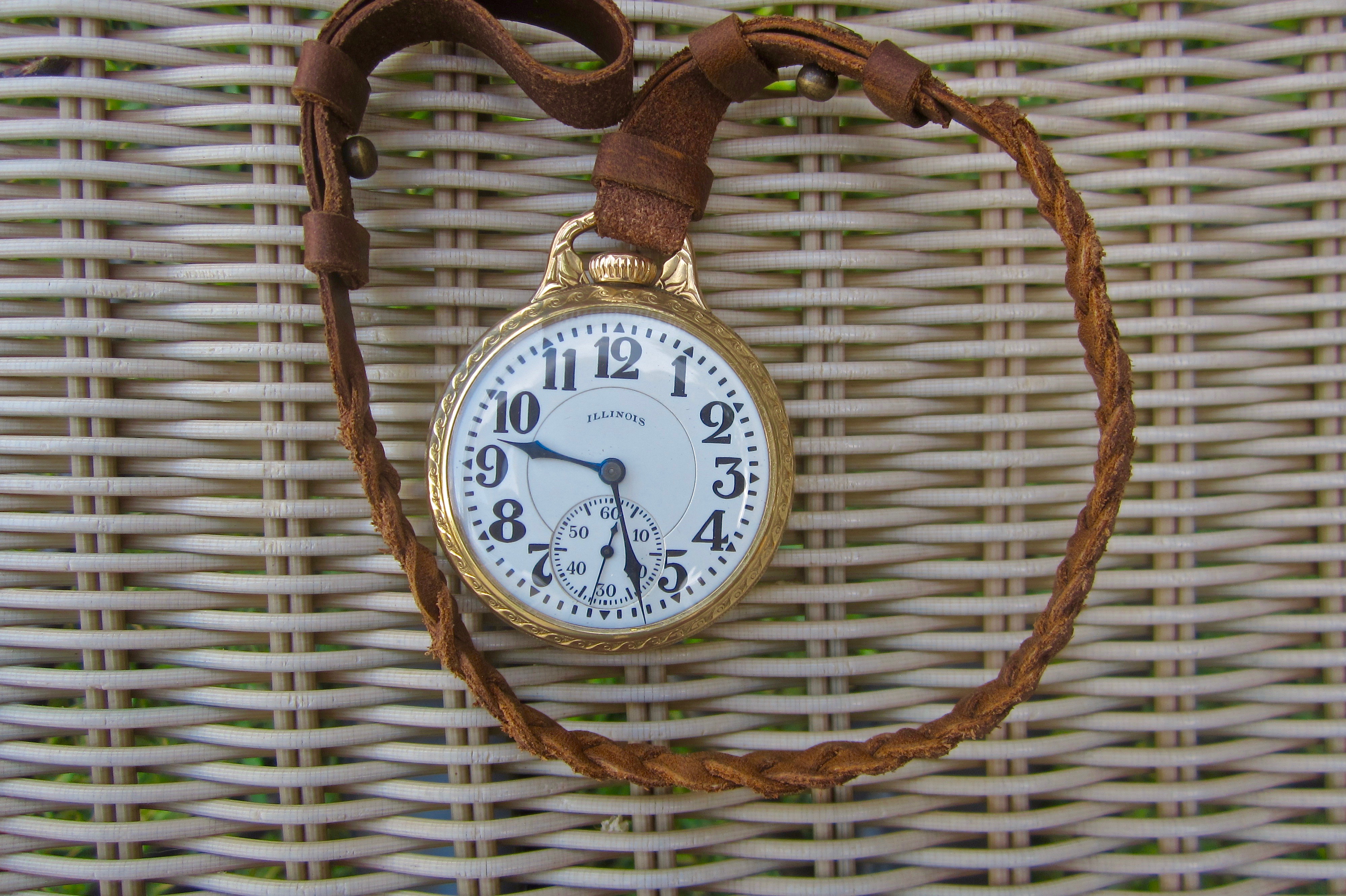 1926 gold filled Illinois Sangamo Special with brown DaveK Mystery Braid lanyard.