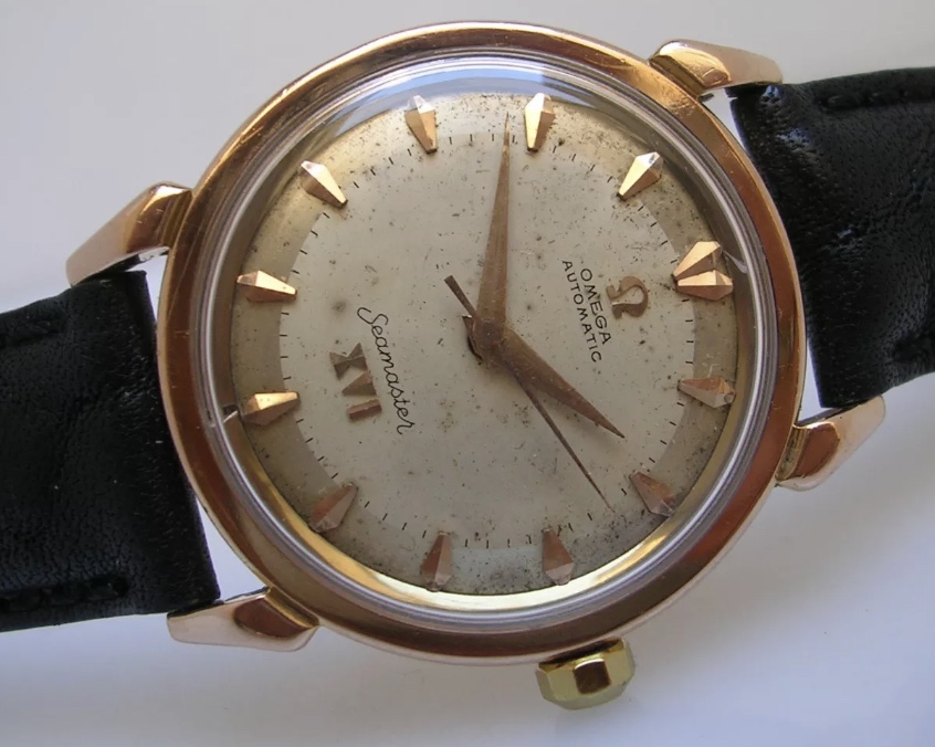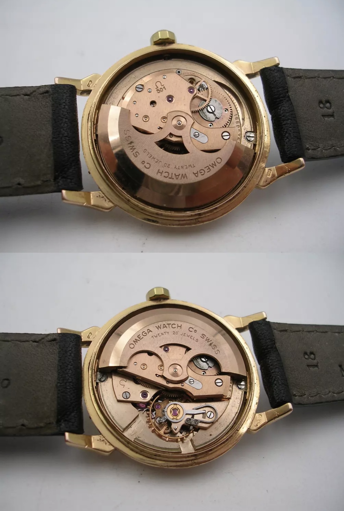 Note the dial on all examples, with printed omega script as opposed to attached logo and two tone dial finish, this again is the same as the antiqorum watch and the watch-garage example.