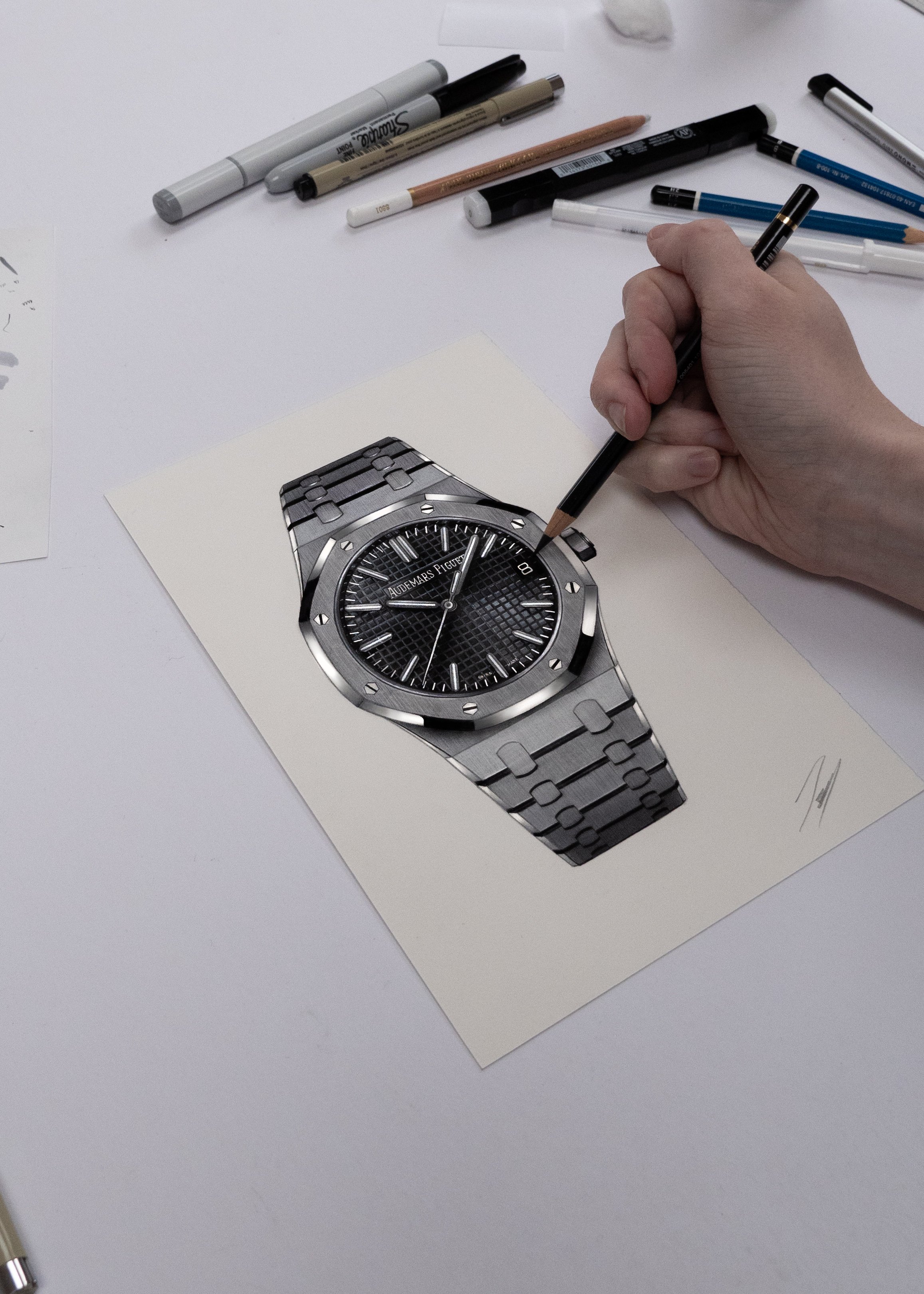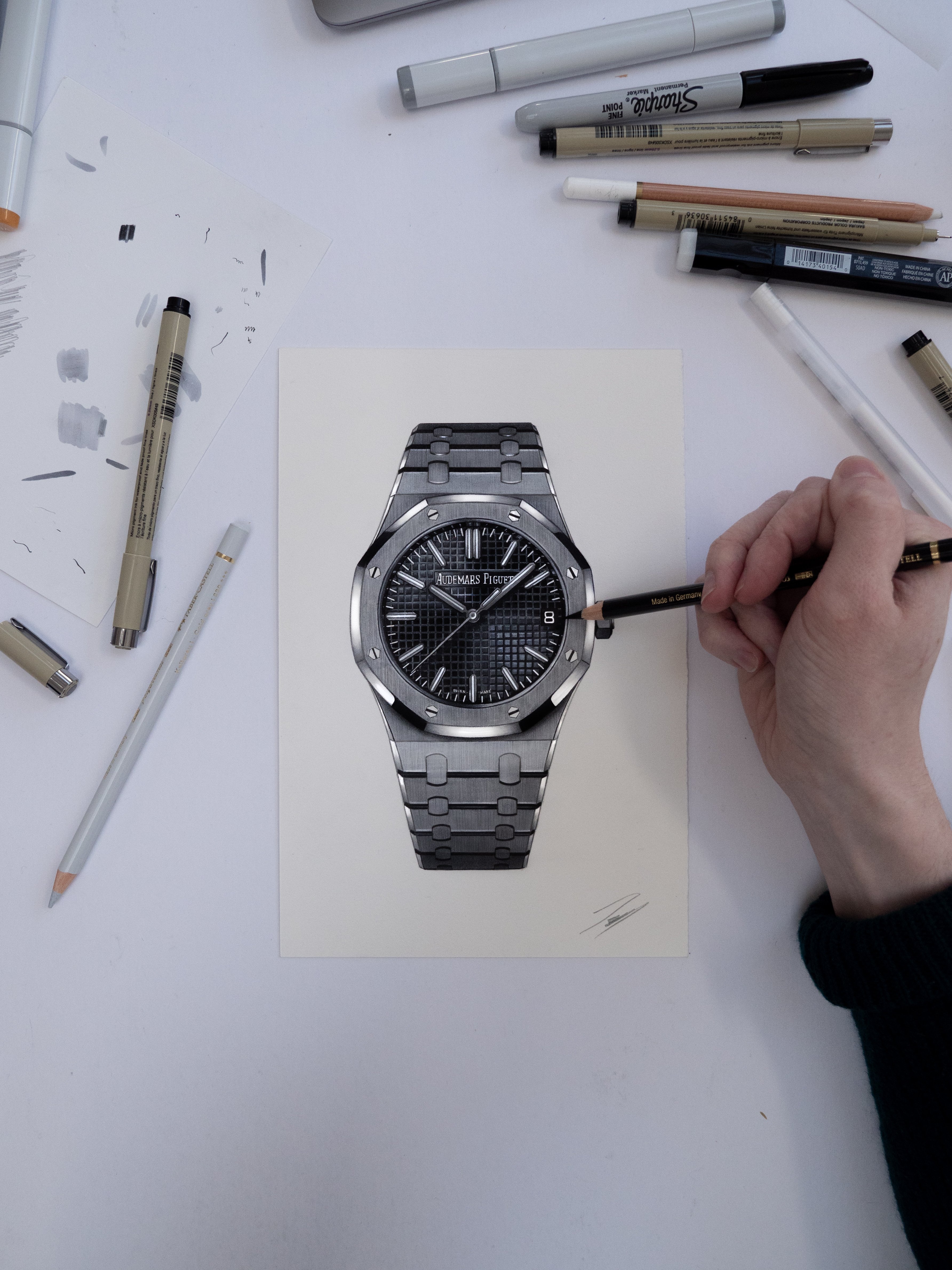 ·A recently completed illustration of the AP RO 15510ST! Genuinely really fun to draw, dial was a tad challenging but enjoyable. Definitely interested in drawing more AP's maybe an open work or something would be fun.