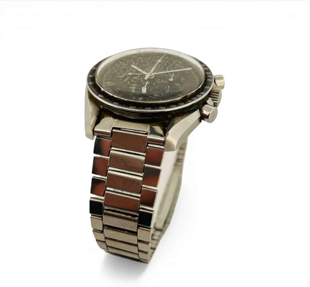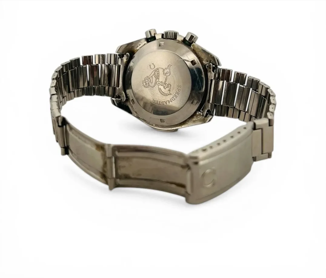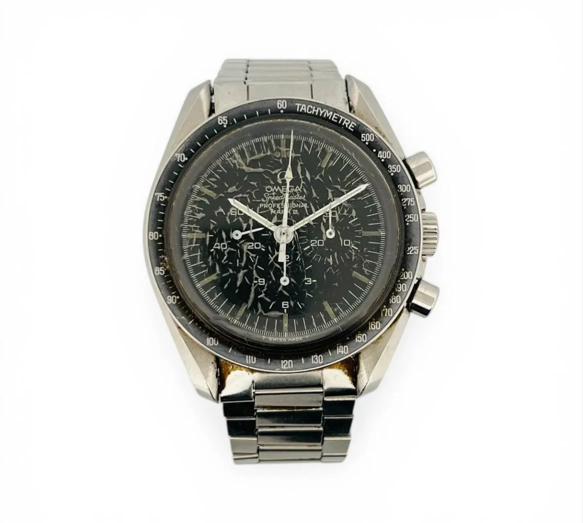 This dial should not be found on this reference since it normally equips the Omega Speedmaster "Mark II" under reference 145.014. It may have been fitted to this watch by its distributor for a reason unknown to us.