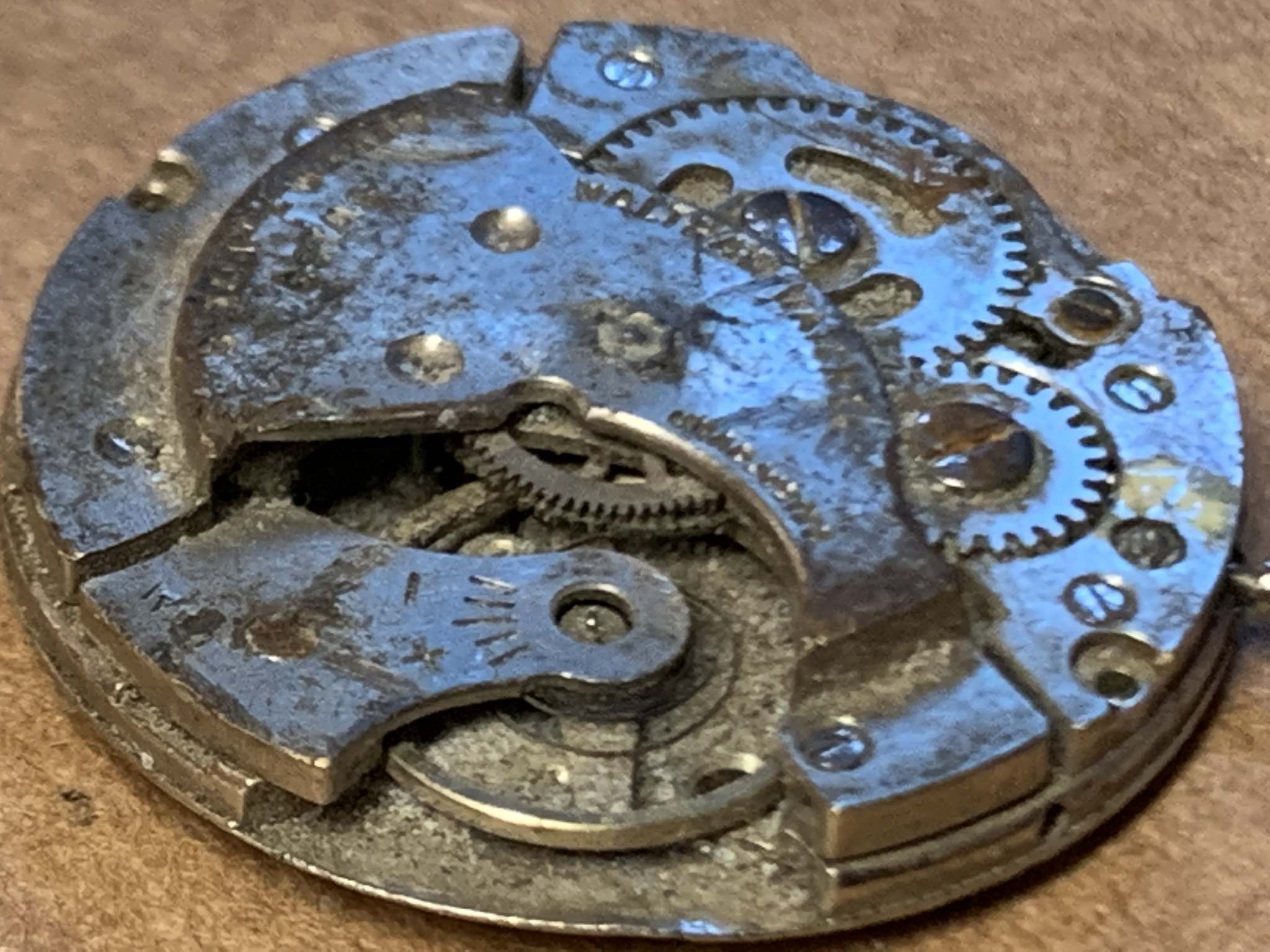 The other watch is a bit more interesting. Also with Waltham marking on the bridge someone crushed it. Literally