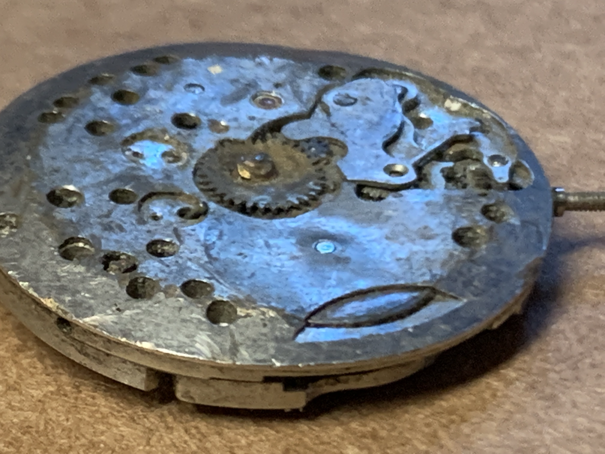 I like how the whole motion works have been flattened. There must have been some force to press things together like that.