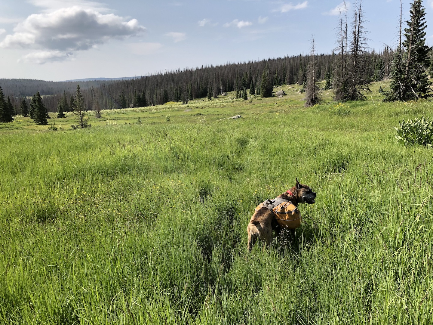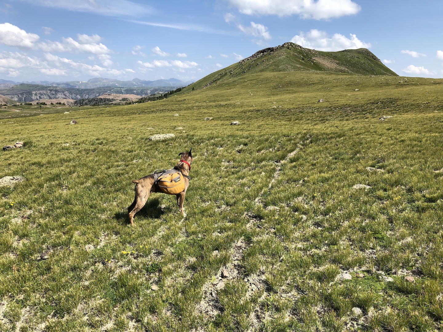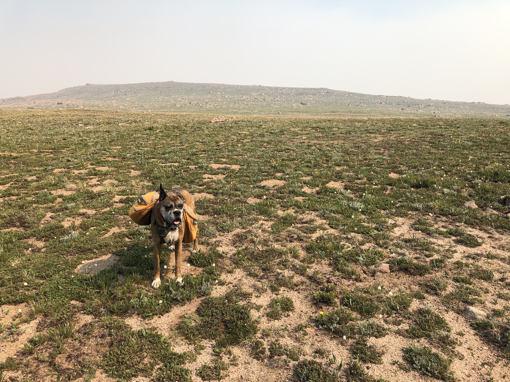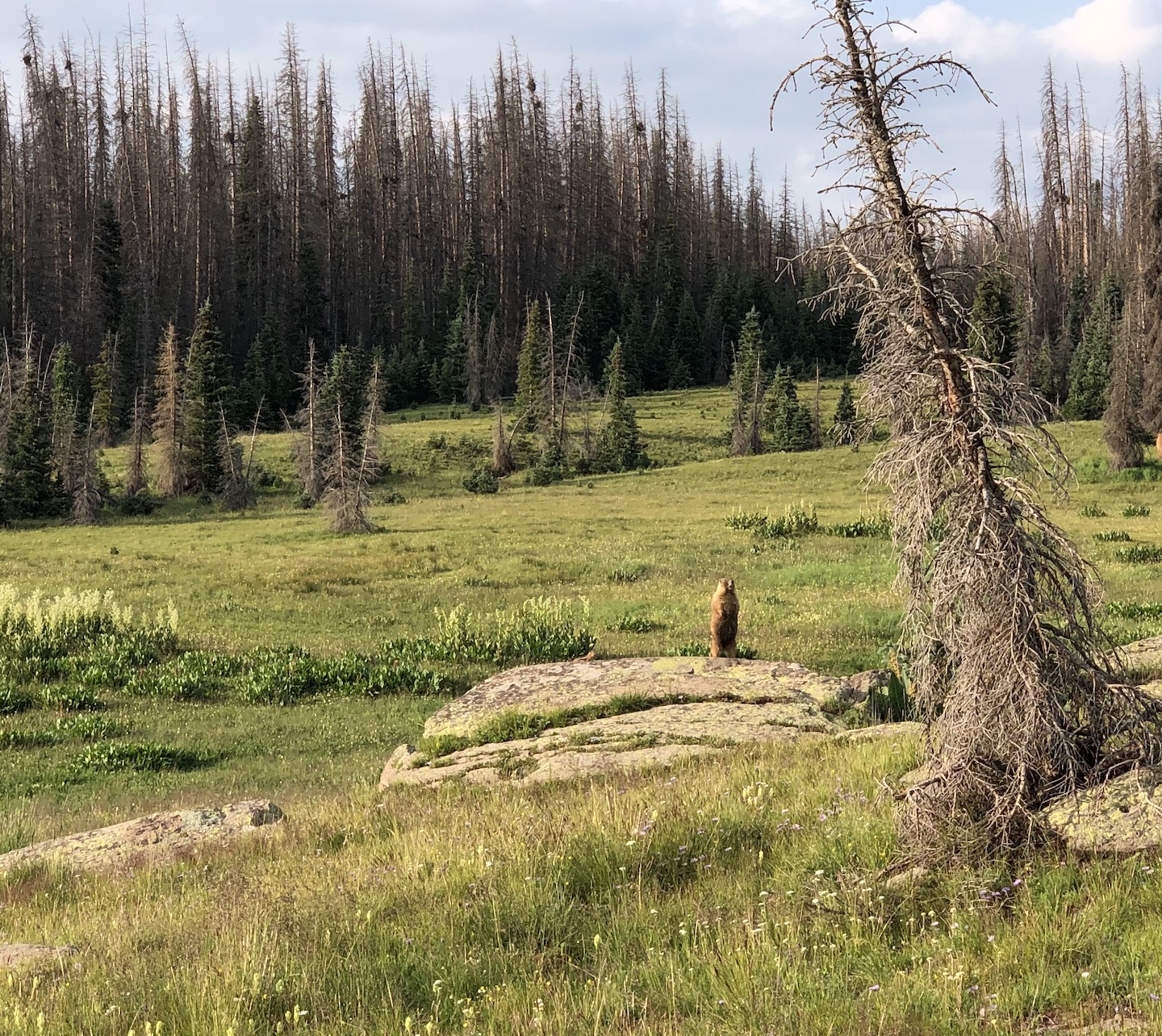 Lots of wildlife near this campsite. Coyotes and elk kept us up all night, and then this marmot was just toying with Zelda all morning.
