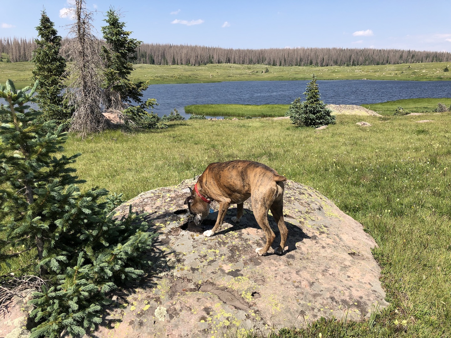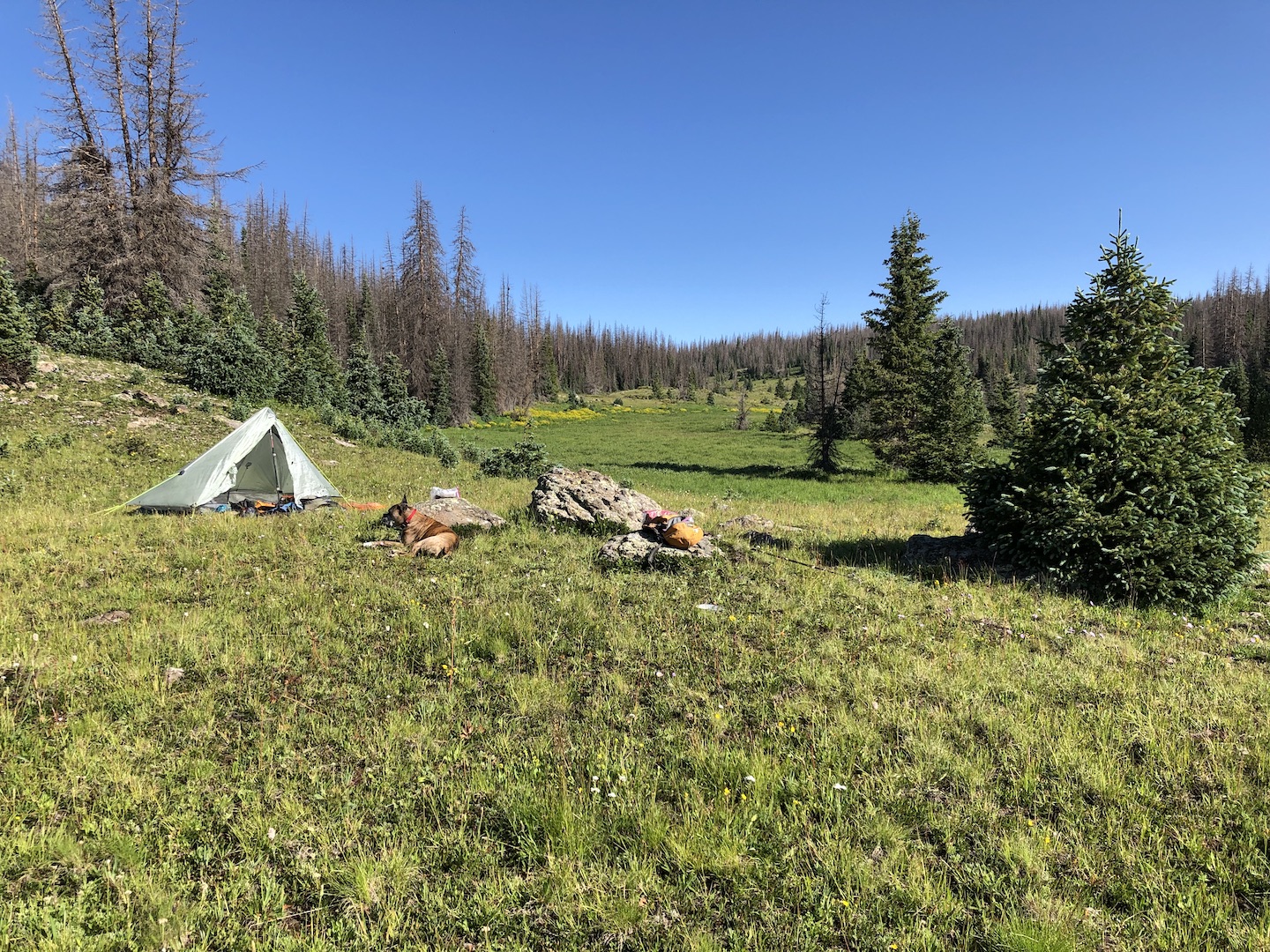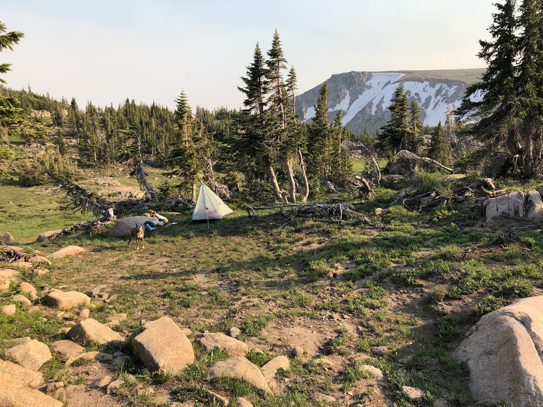 Lots of wildlife near this campsite. Coyotes and elk kept us up all night, and then this marmot was just toying with Zelda all morning.