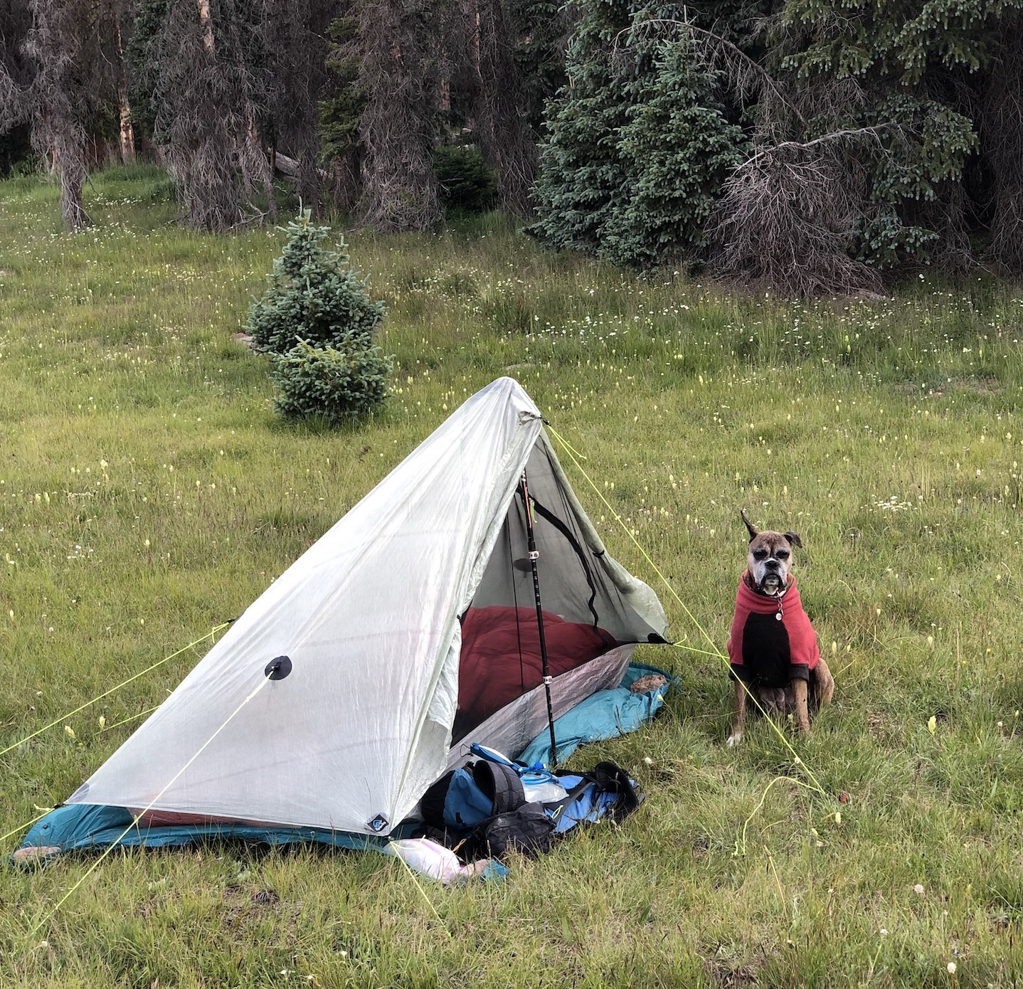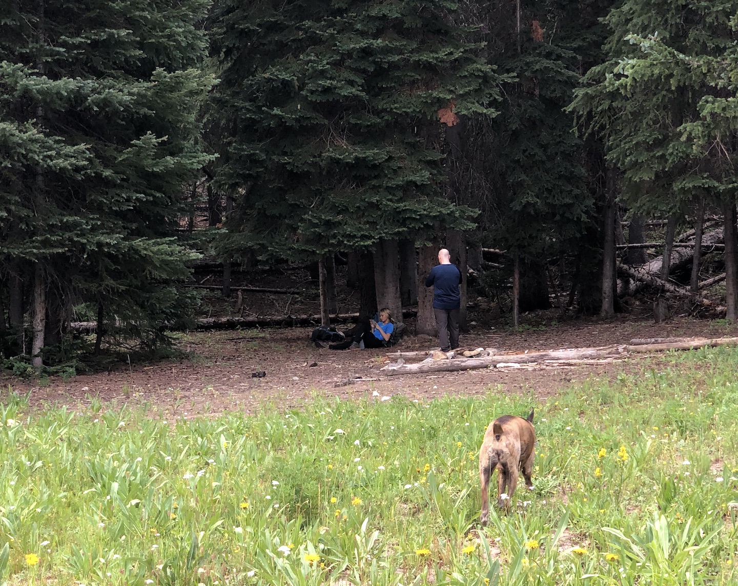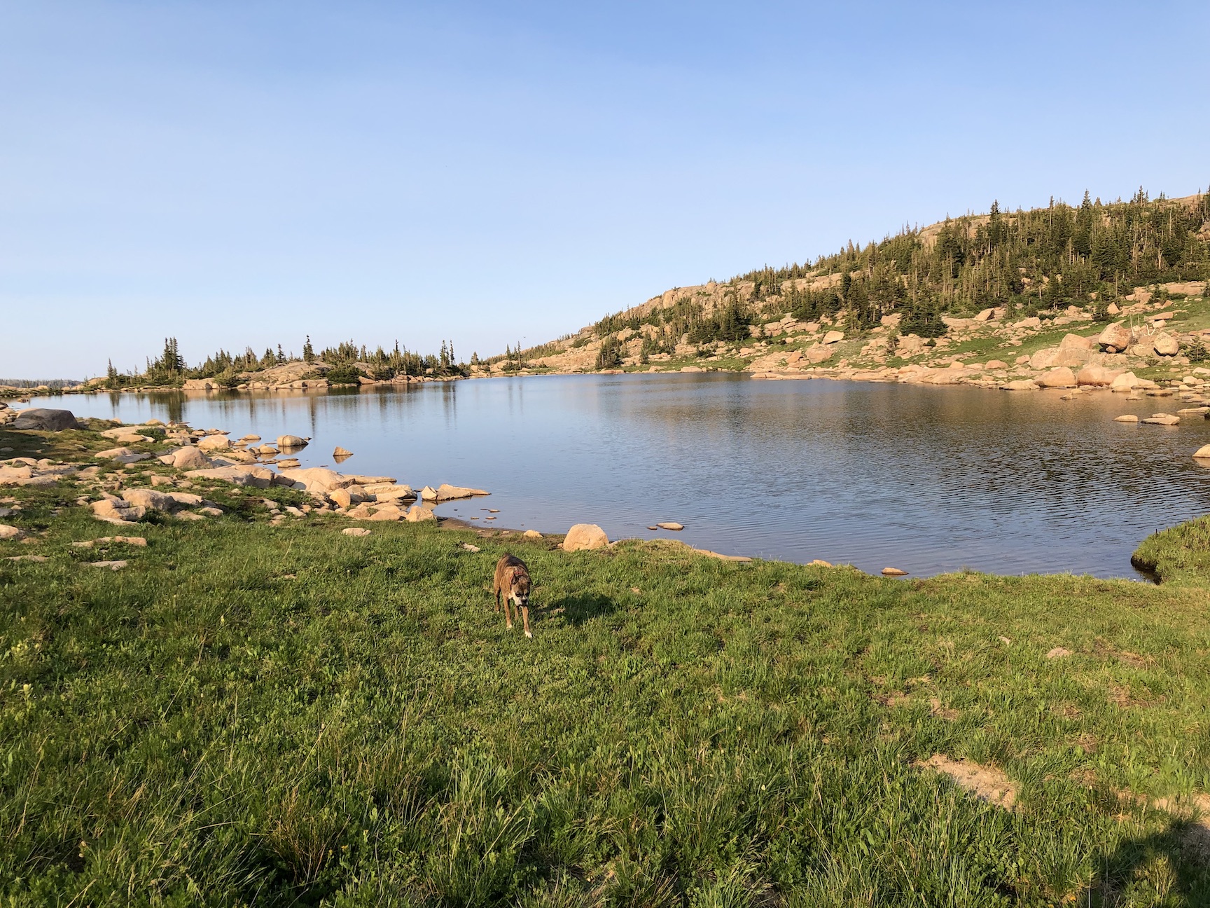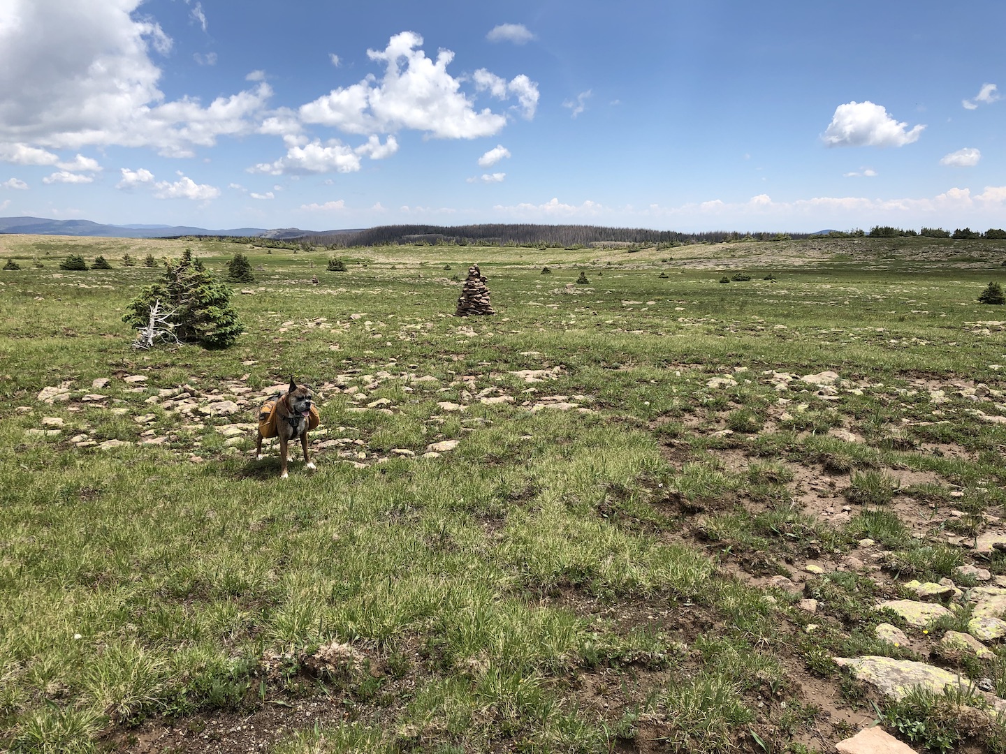 Lots of wildlife near this campsite. Coyotes and elk kept us up all night, and then this marmot was just toying with Zelda all morning.