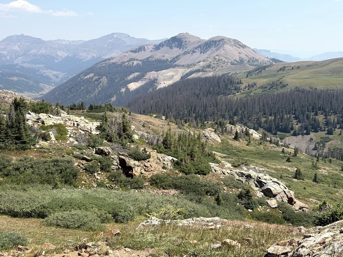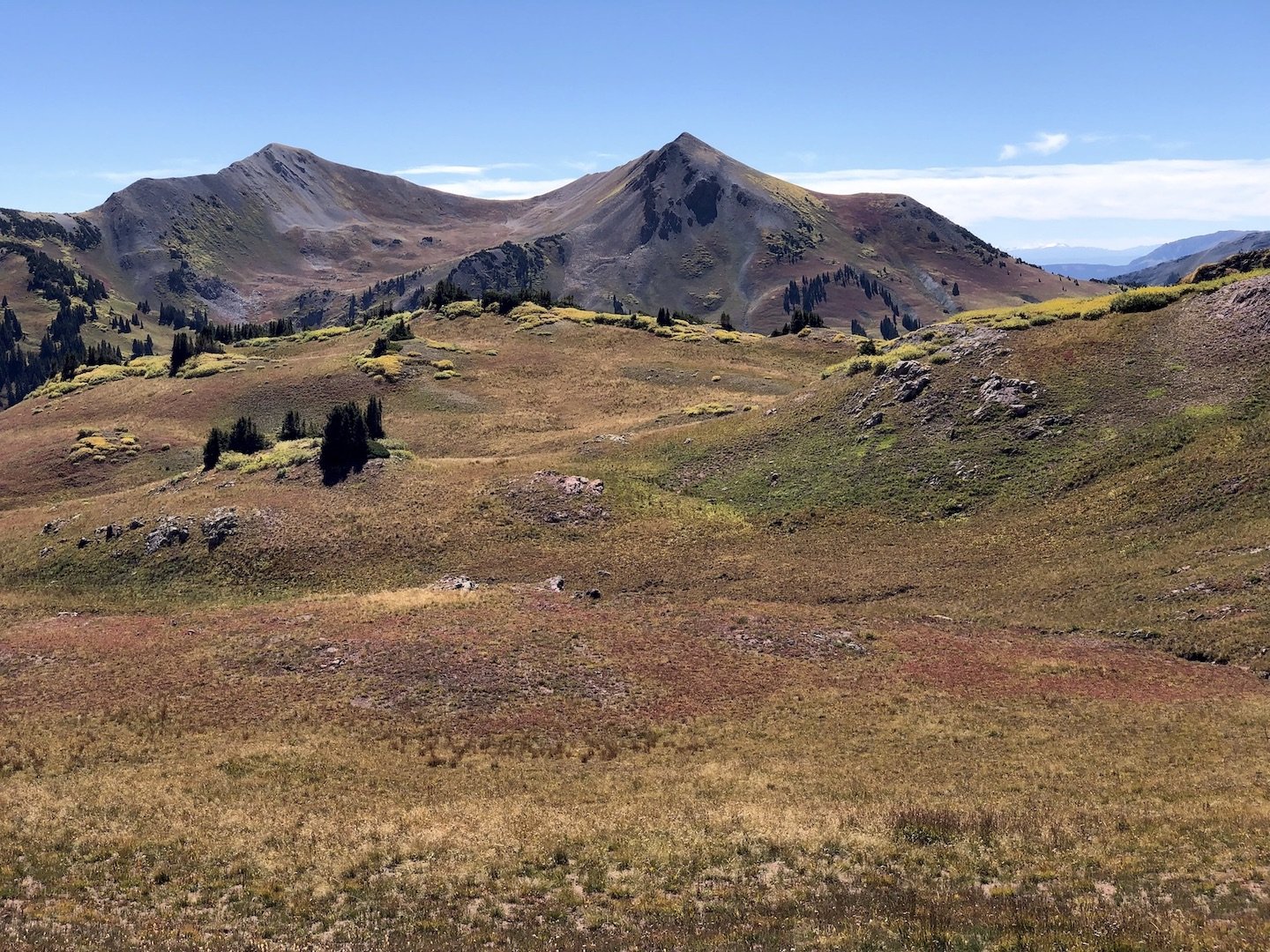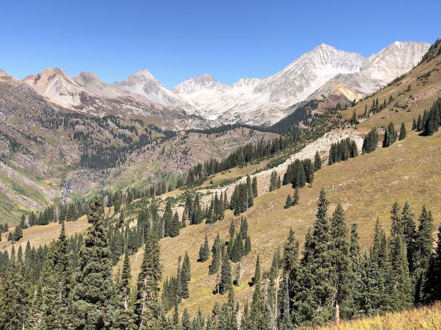 From there, we could look down into the next basin, where we would spend most of the afternoon. The large mountain in the center is Snowmass.